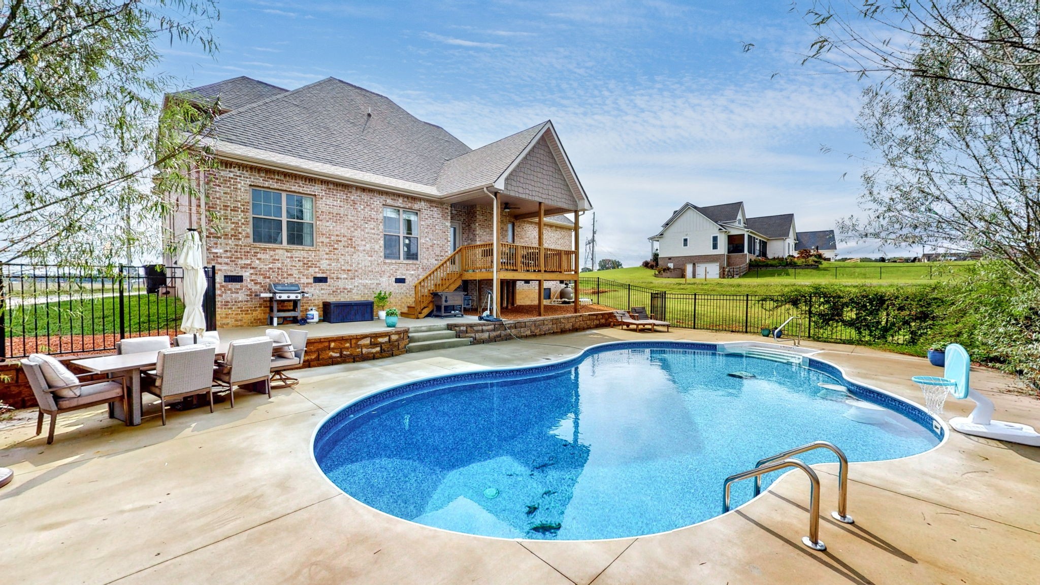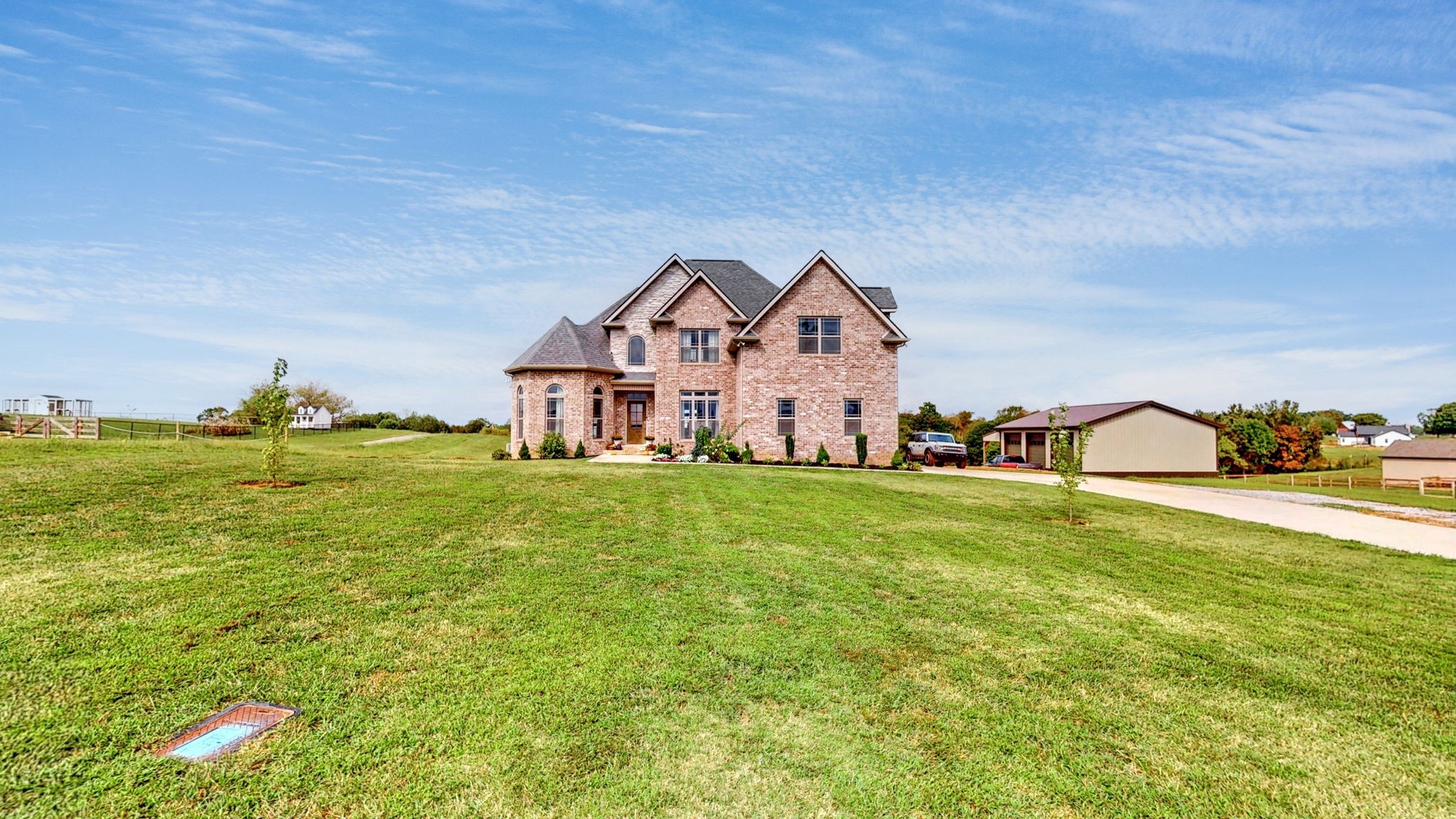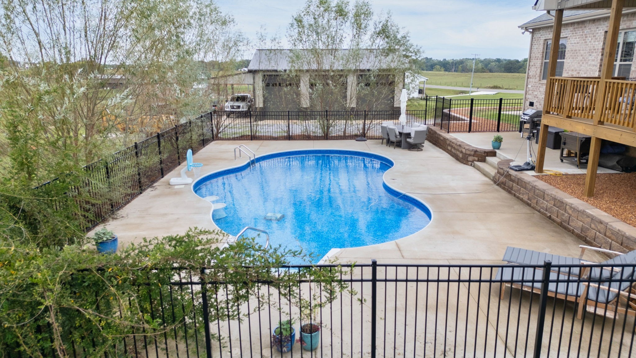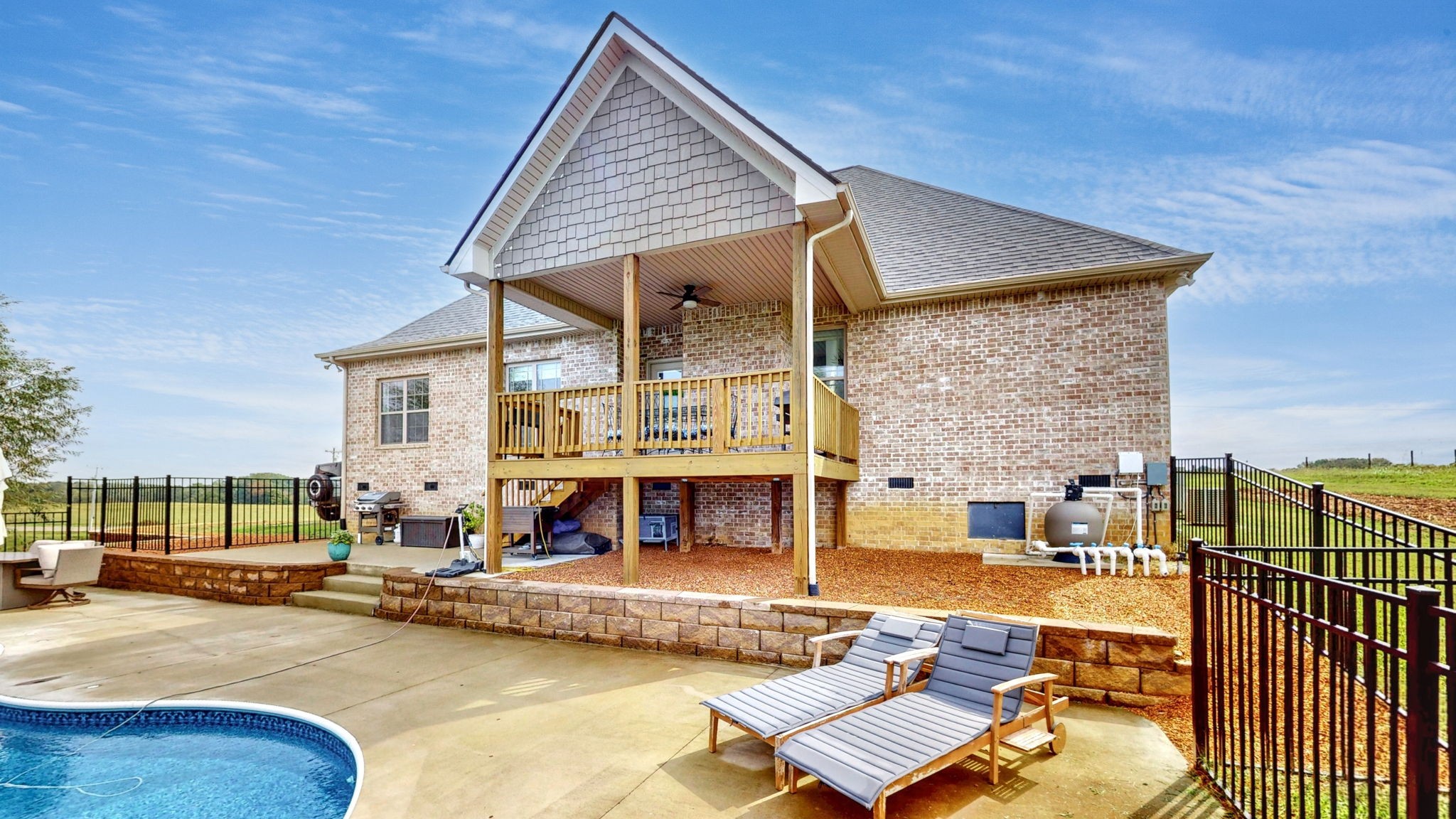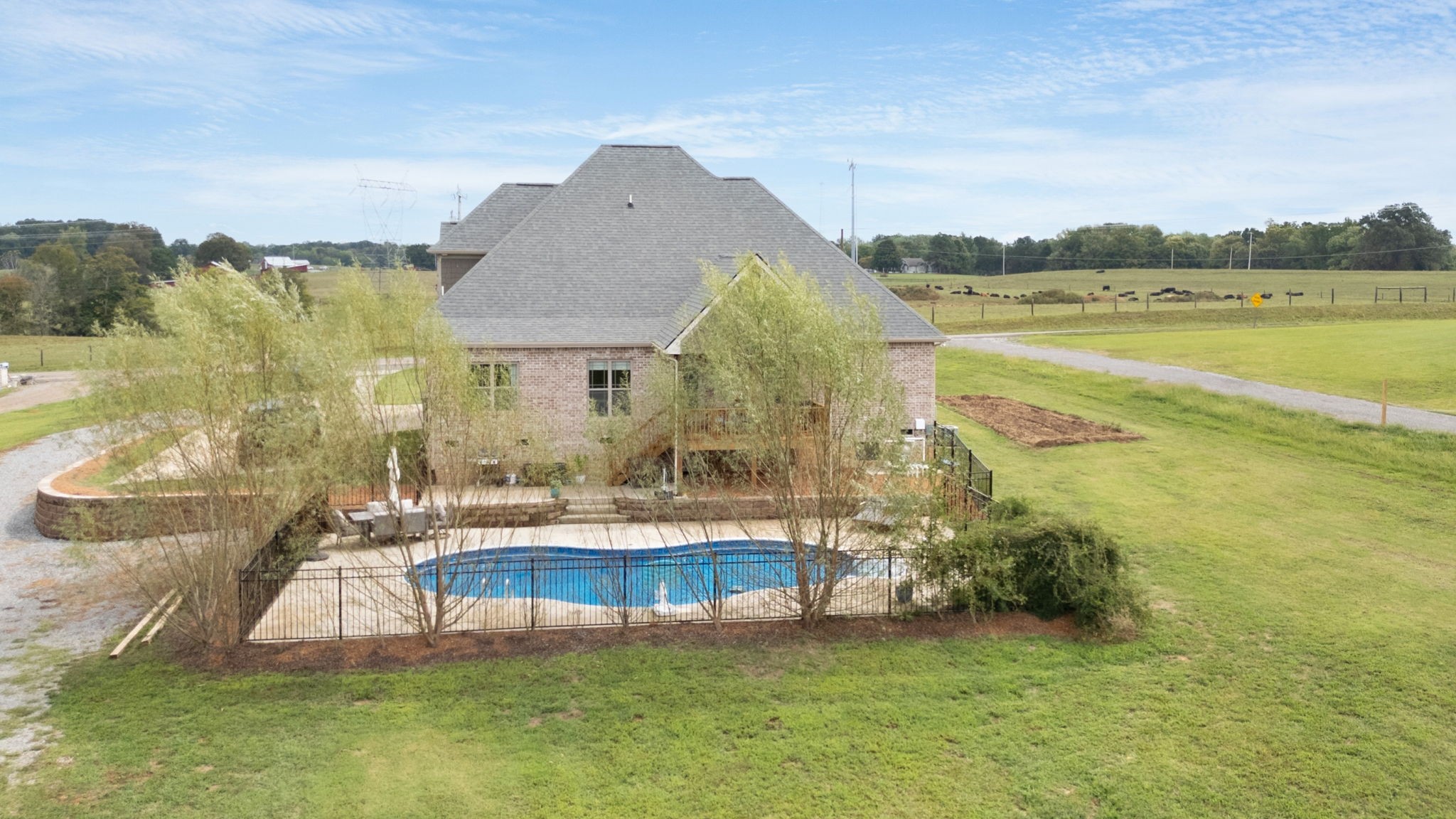 Welcome to your dream home! This beautiful 4-bedroom, 3-bathroom property offers the perfect blend of comfort, space, and country charm. Enjoy stunning views of peaceful cow fields right from your front porch. Step out back to your own personal retreat—complete with a covered stained porch leading down to a sparkling in-ground salt water pool with deck jets on the sides, perfect for hot summer days, surrounded with concrete, black aluminum fence, and hand stacked retaining walls.