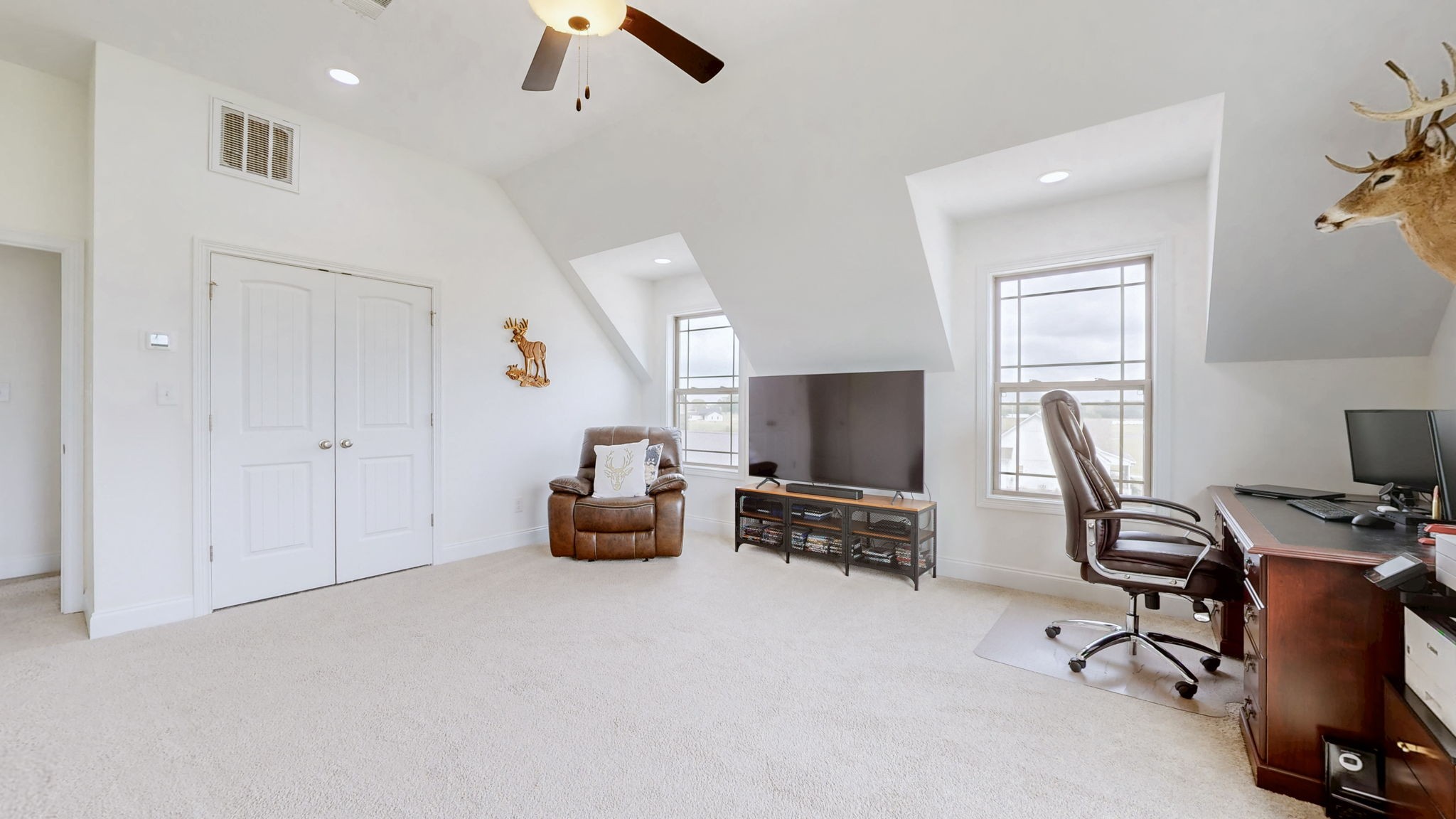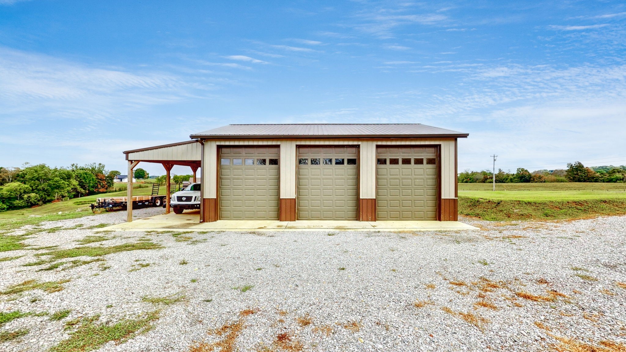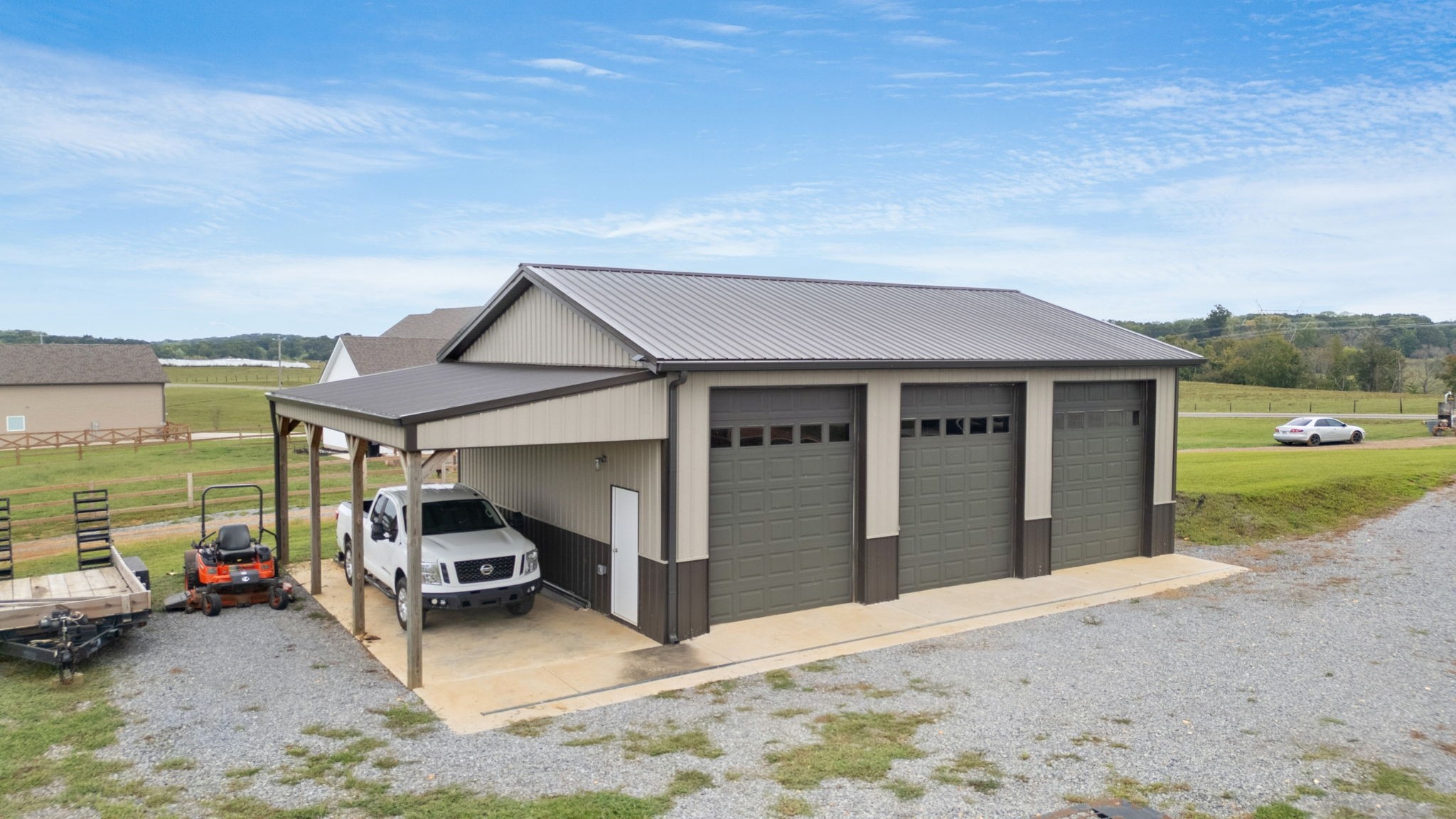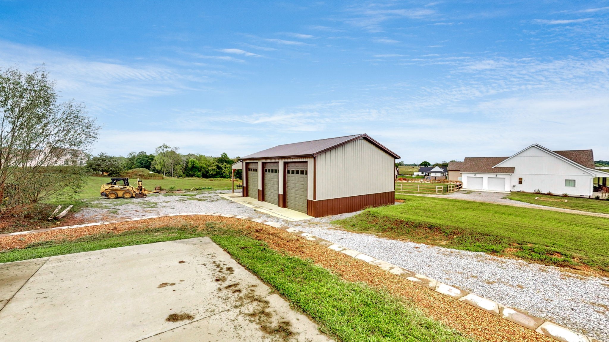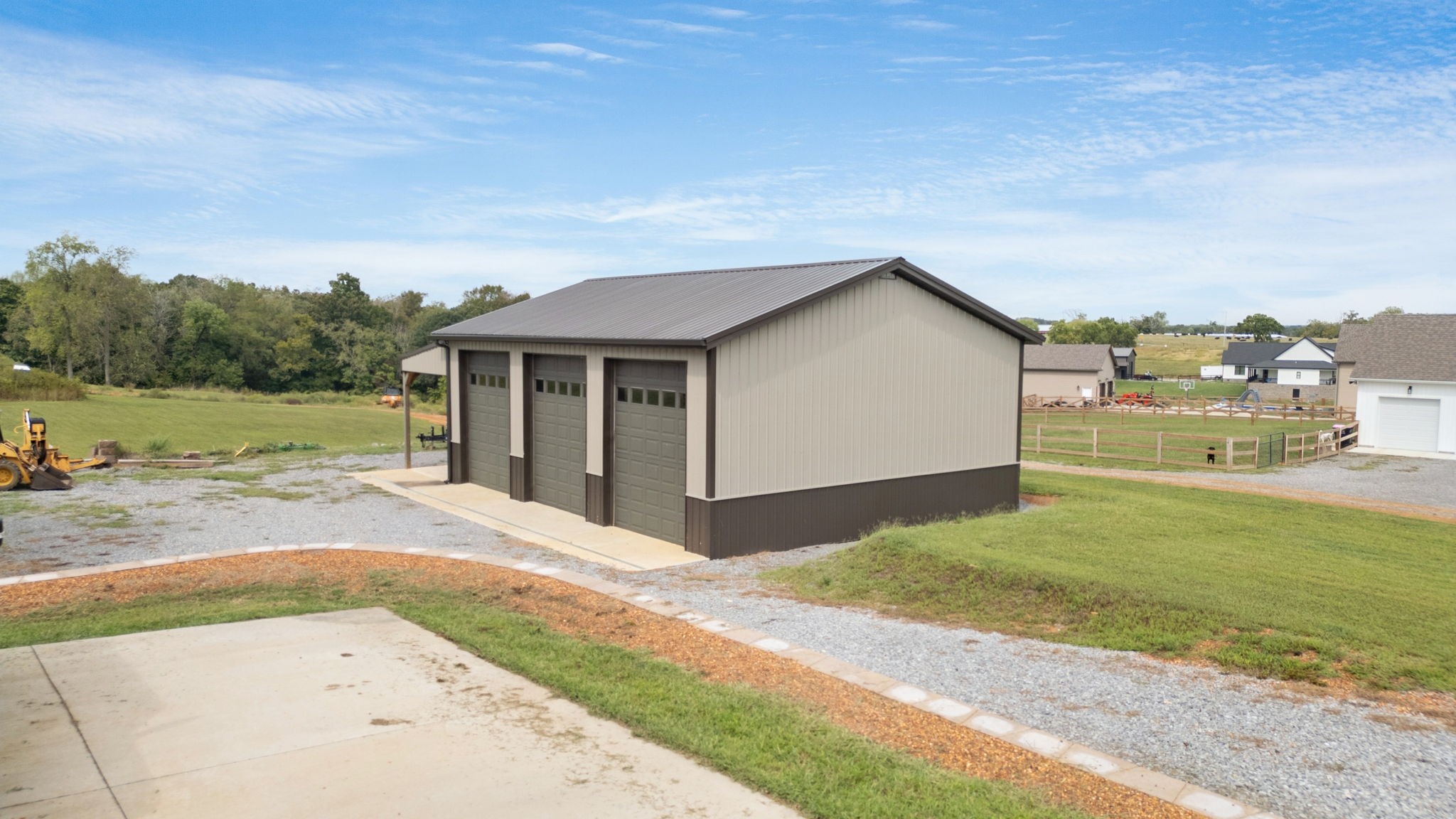 A 30'x40' shop with a 12'x40' front porch for hobbies, storage, or workspace. Shop is a dream come true, complete with built-in toolboxes and an air compressor ready to go. It also hosts lights, large ceiling fan, foam insulation and heated floor capability with it's own water heater circulating water through the concrete on those cold winter days. The concrete is 5.5" thick fiber reinforced, and there are three 10'x12' doors across the front.