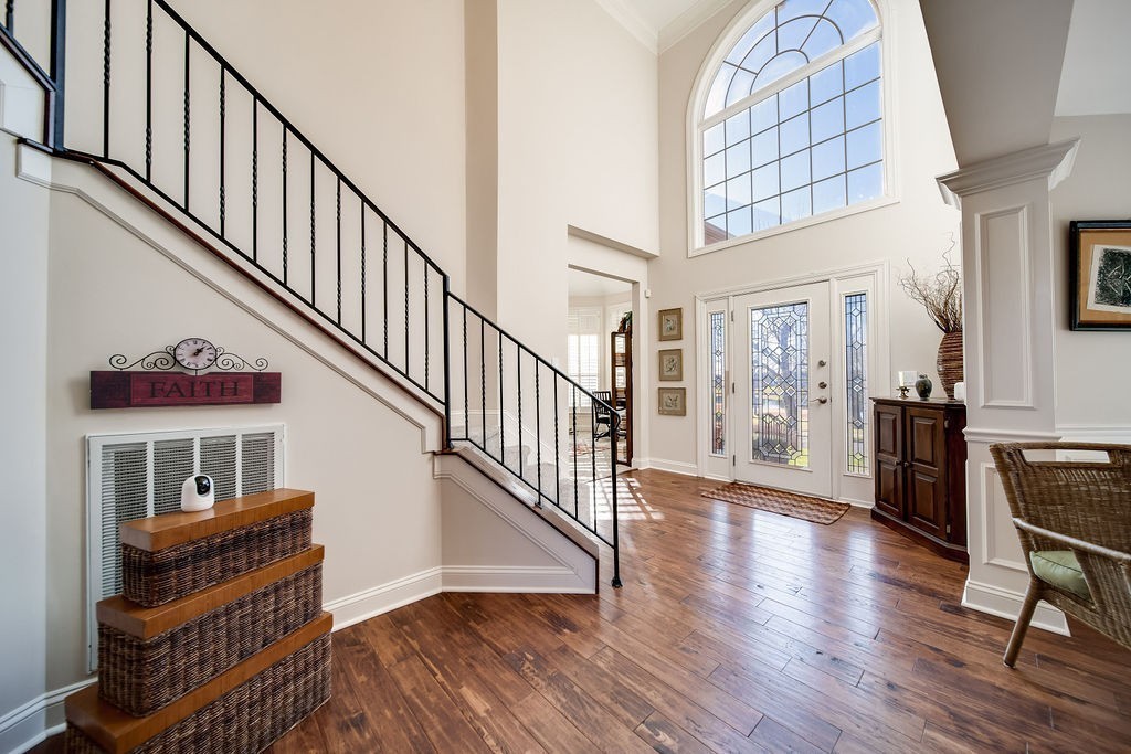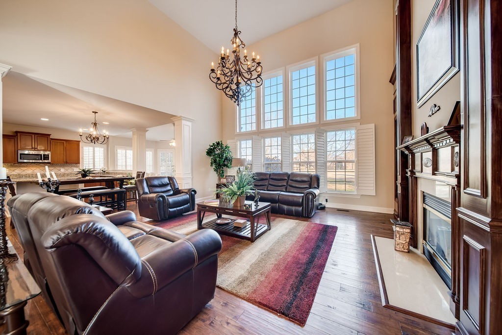 This Classy and Comfortable Home is nestled in an Elegant Private Club Community with panoramic views of the TN Grasslands Golf Course and Old Hickory Lake! The Grand Two Story Foyer leads to a Flowing and Open Floor Plan Basking in Natural Light. The Luxurious Gourmet Kitchen Boasts Double Ovens, Built in Microwave, Beautiful Wood-Tone Cabinets and Custom Granite Slab. Enjoy a Gracious Size Formal Dining Room with Trey Ceiling and Wainscoting, a Quaint Study or Office with Views of the Lake and Beautiful Sunsets, and a Fantastic Gathering Room Central to Downstairs with Views of the Golf Course, a Two-Story Ceiling and Dramatic Detailed Hearth and Built-Ins. Master Suite is Oversized w/ a Generous Closet, Big Shower, Jet Tub and Exotic Vanity Counter Top. Enjoy Hand-Scraped Wood Floors, Tasteful Wood Accents and Custom Shutters Too!! Club Membership available at TN Grasslands Golf and Country Club which has two 18 hole golf courses, two clubhouses/restaurants, lake side swimming pools