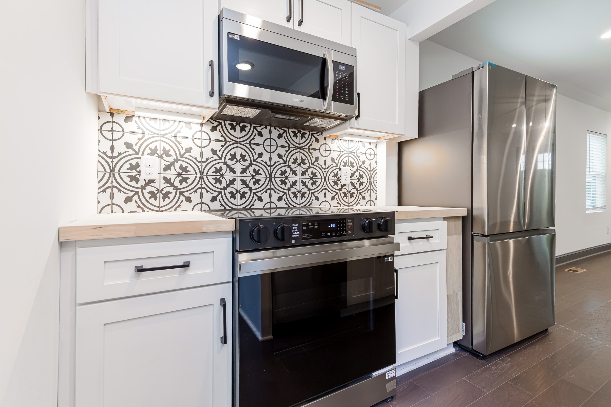 - AppliancesElectric Oven, Cooktop, Electric Range, Dishwasher, Refrigerator, Stainless Steel Appliance(s)