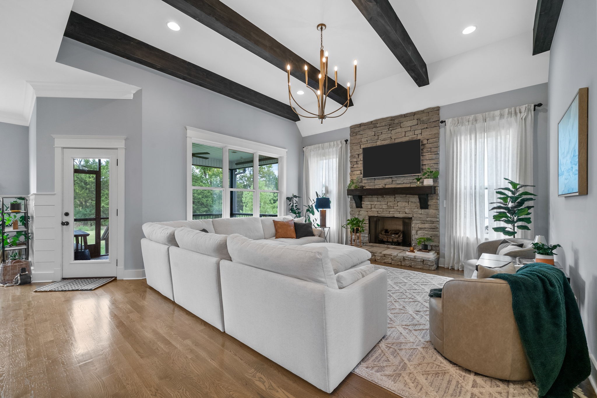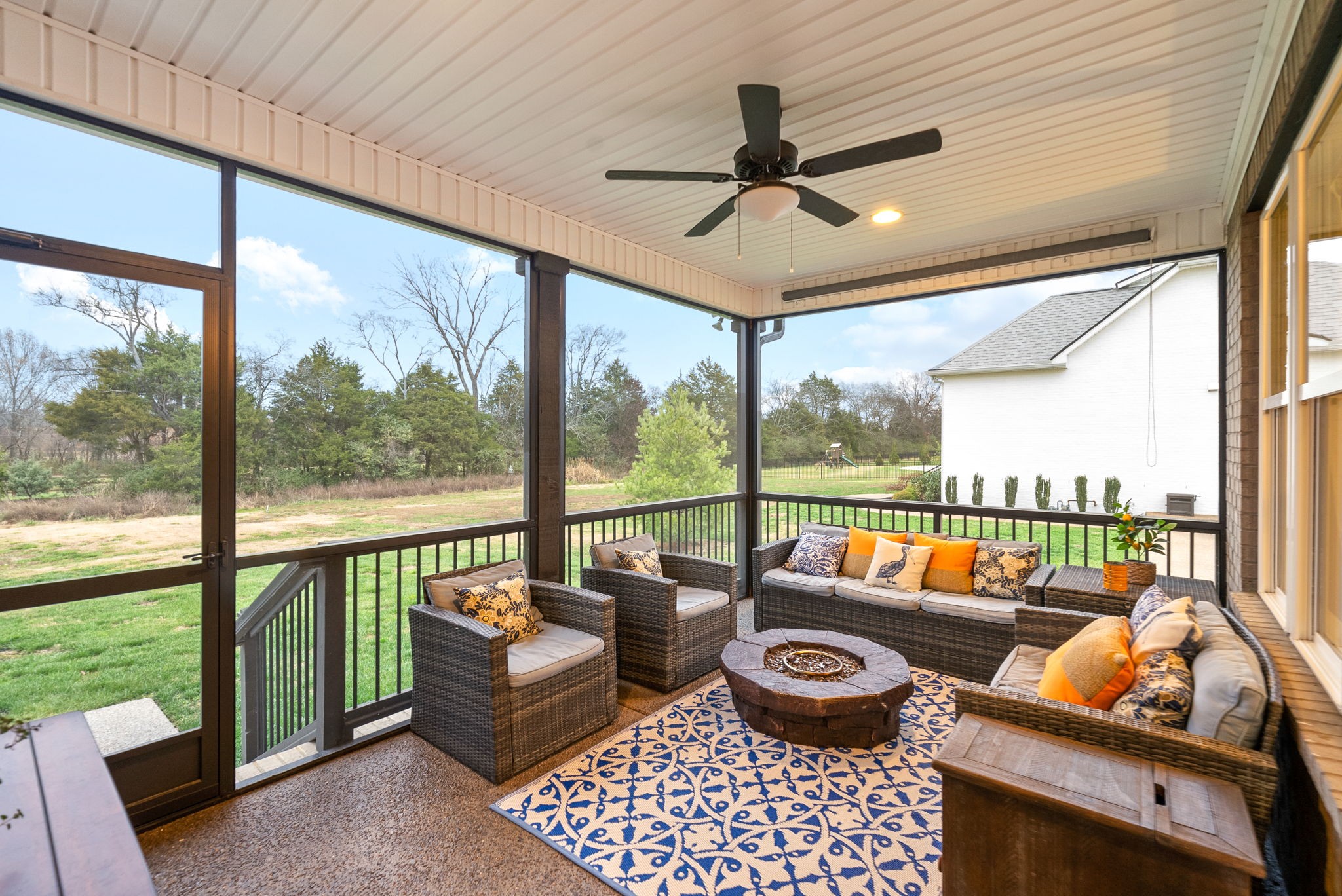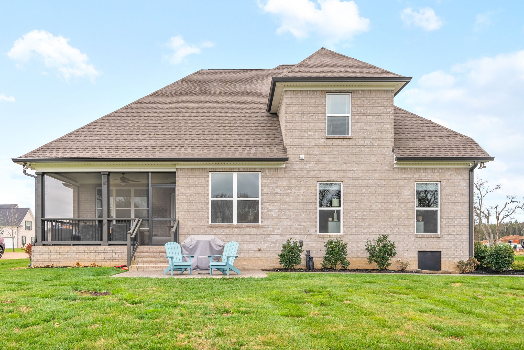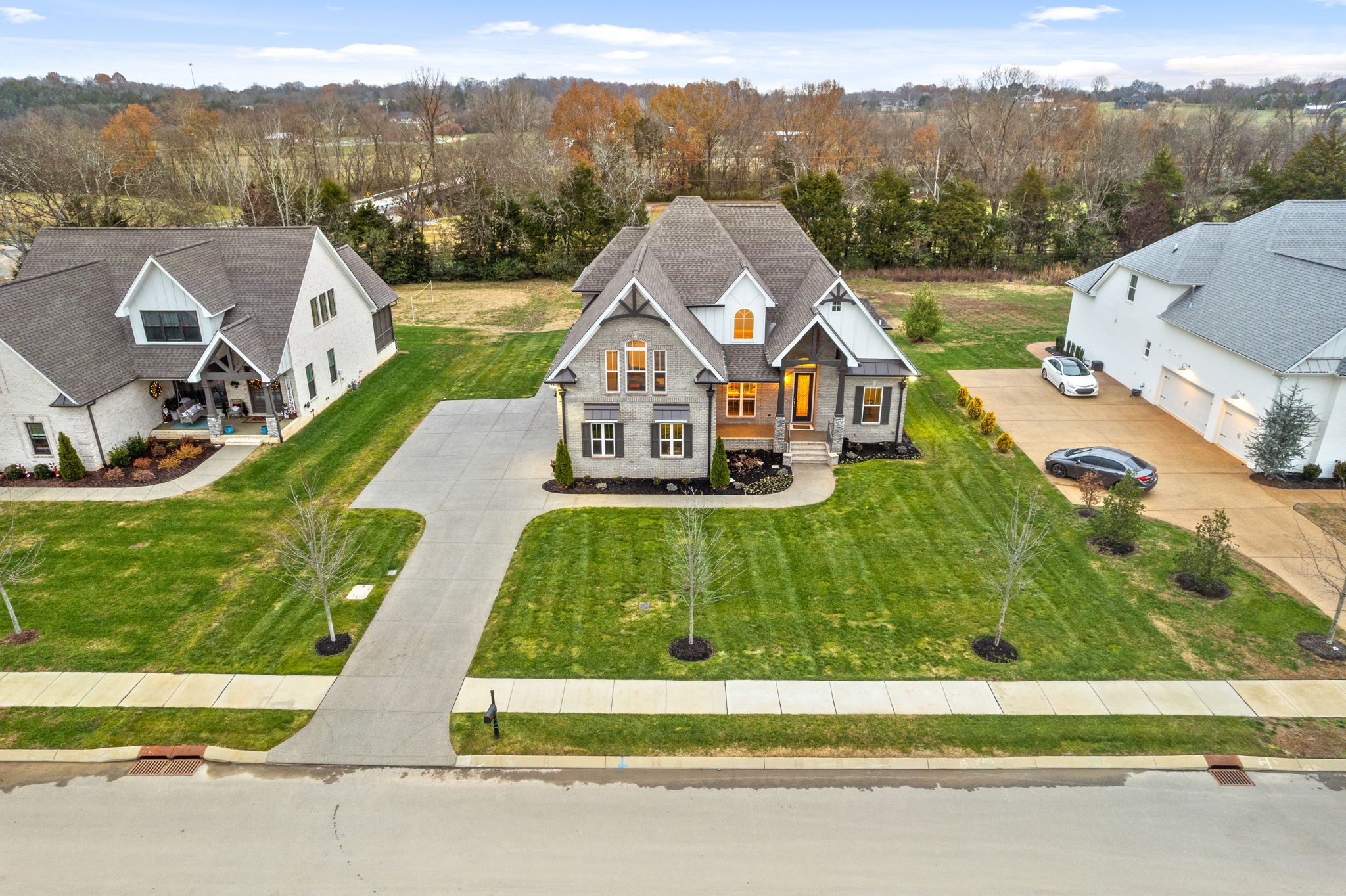 Why buy new construction when you can have the same plan WITH UPGRADES for less? This Peyton plan by quality builder Eastland Construction sits on a half acre lot with a tree lined view. There is plenty of room to add a pool. Upgrades include an irrigation system, security system, screened in patio, matte black door knobs and hinges, updated hardware, new light fixtures, and fresh paint throughout. This home also features SAND AND FINISH hardwood floors & extensive crown molding. You don't have to worry about sealing the aggregate because it was all done this year. Open floorplan that includes a large kitchen with a breakfast nook AND formal dining room. The kitchen has stainless steel appliances, double ovens, and stunning quartz countertops. All three bathrooms have quartz countertops. The primary suite has a dreamy walk in closet with built ins and tons of space. 2nd bedroom downstairs is currently being used as an office with a built in Murphy bed. Both bedrooms upstairs have large walk in closets. The over the garage bonus/rec room is 30x20 with plenty of space for family nights together. An added bonus, there is an additional room upstairs with a walk in closet that could be an office or hobby room. Many Peyton plans do not have this additional square feet. There are also TWO large attic spaces. Farmington Woods is a highly desired neighborhood with large lots and side garages, showcasing the curb appeal of each lovely home.