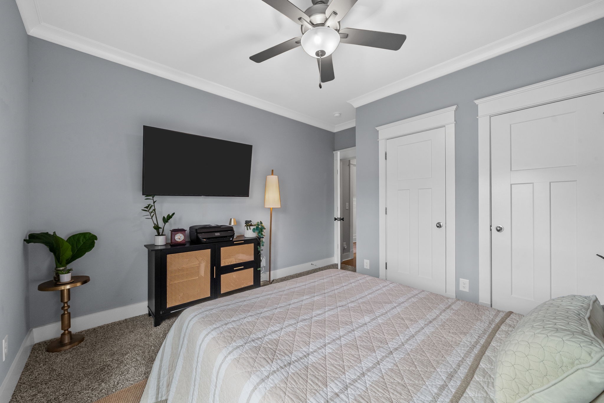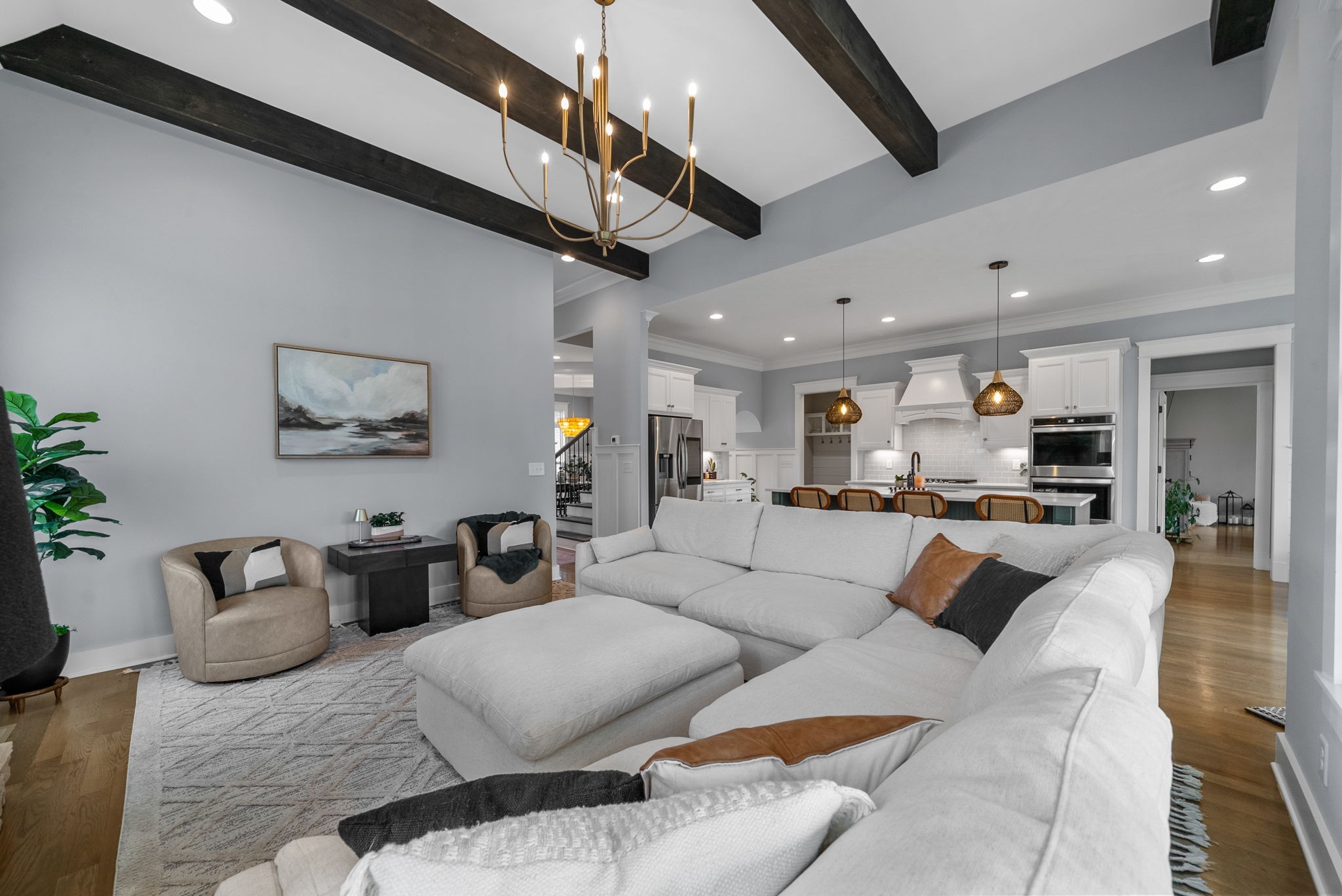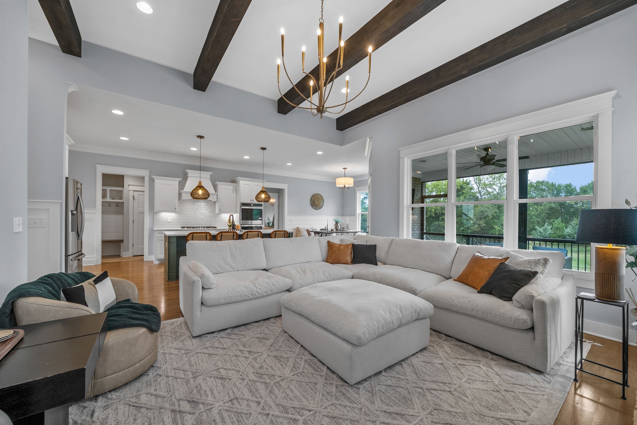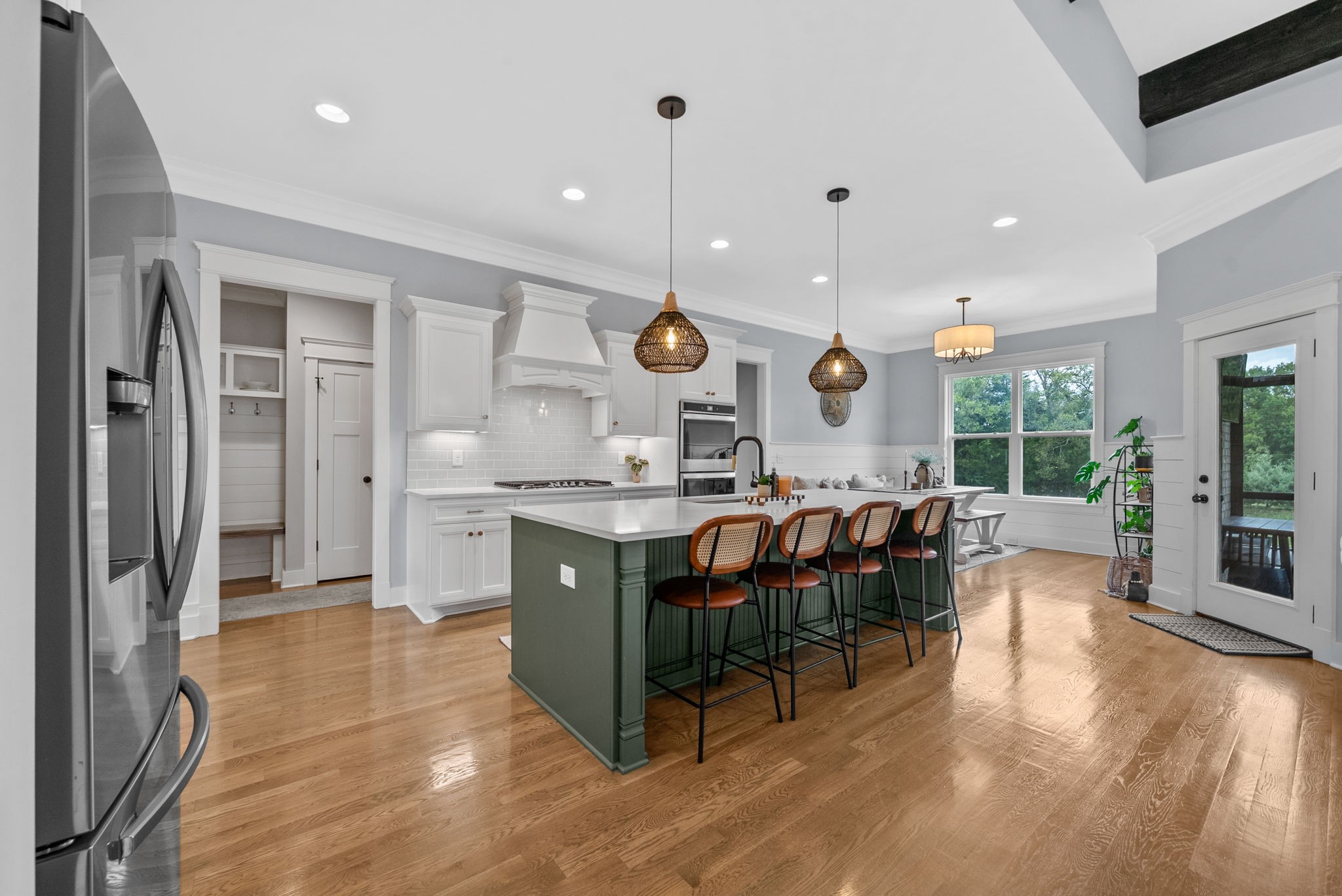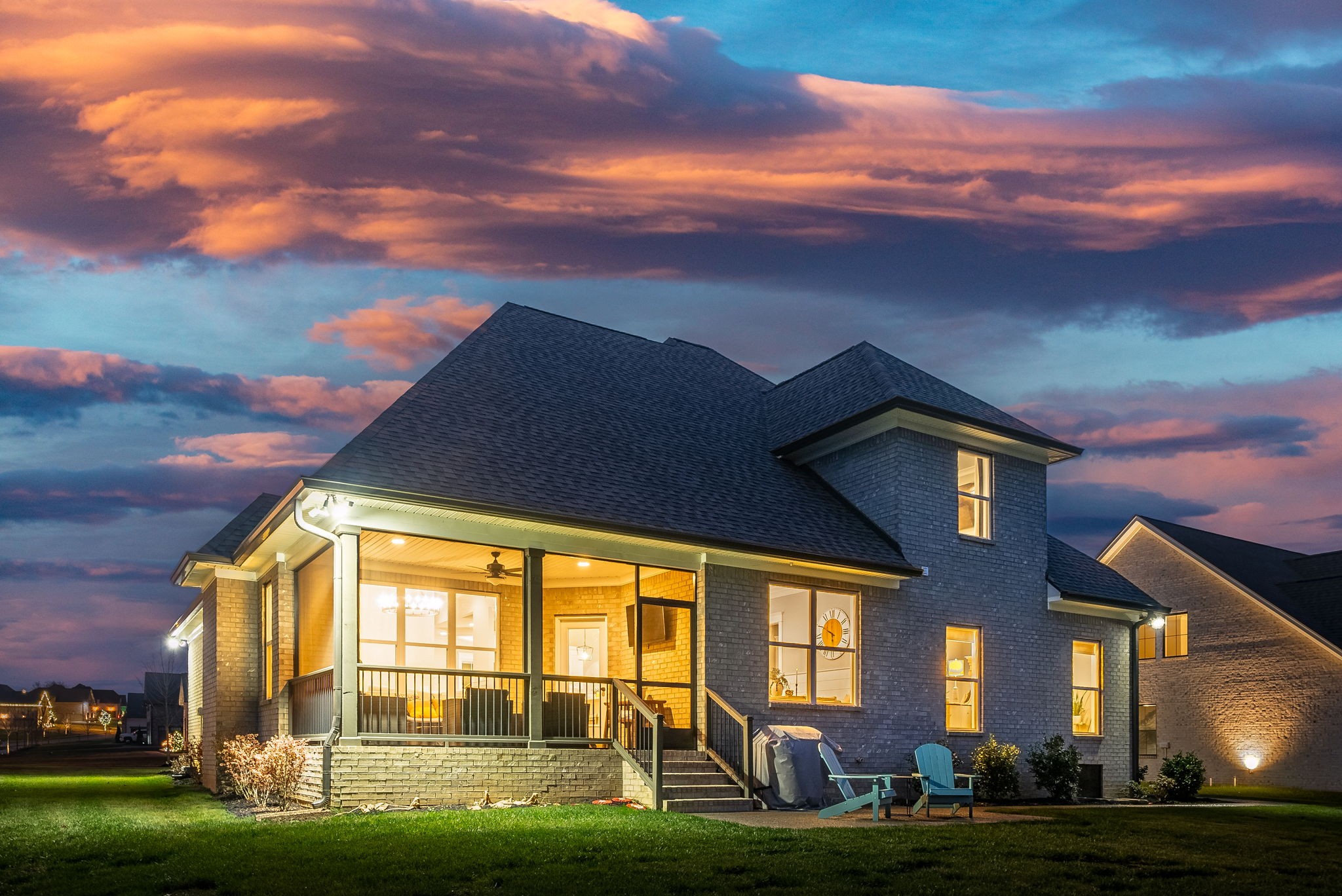 Why buy new construction when you can have the same plan WITH UPGRADES for less? This Peyton plan by quality builder Eastland Construction sits on a half acre lot with a tree lined view. There is plenty of room to add a pool. Upgrades include an irrigation system, security system, screened in patio, matte black door knobs and hinges, updated hardware, new light fixtures, and fresh paint throughout. This home also features SAND AND FINISH hardwood floors & extensive crown molding. You don't have to worry about sealing the aggregate because it was all done this year. Open floorplan that includes a large kitchen with a breakfast nook AND formal dining room. The kitchen has stainless steel appliances, double ovens, and stunning quartz countertops. All three bathrooms have quartz countertops. The primary suite has a dreamy walk in closet with built ins and tons of space. 2nd bedroom downstairs is currently being used as an office with a built in Murphy bed. Both bedrooms upstairs have large walk in closets. The over the garage bonus/rec room is 30x20 with plenty of space for family nights together. An added bonus, there is an additional room upstairs with a walk in closet that could be an office or hobby room. Many Peyton plans do not have this additional square feet. There are also TWO large attic spaces. Farmington Woods is a highly desired neighborhood with large lots and side garages, showcasing the curb appeal of each lovely home.
