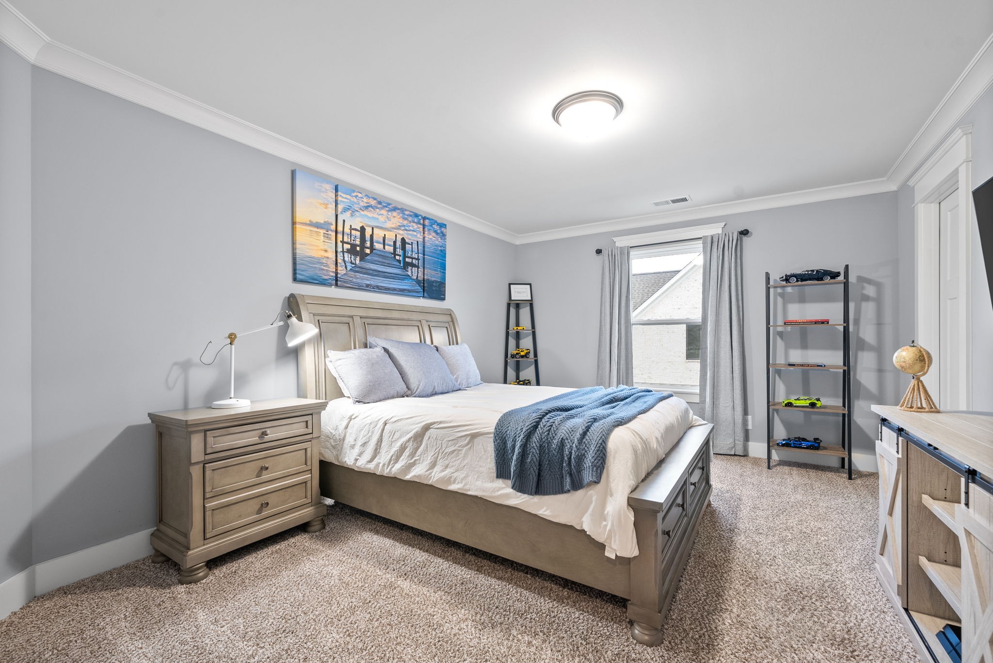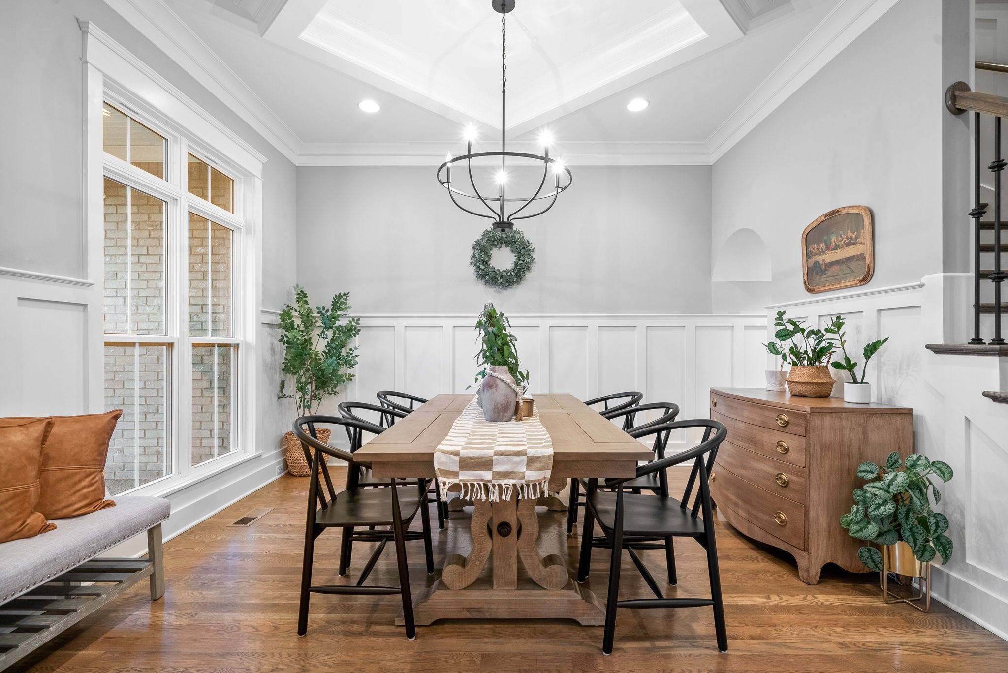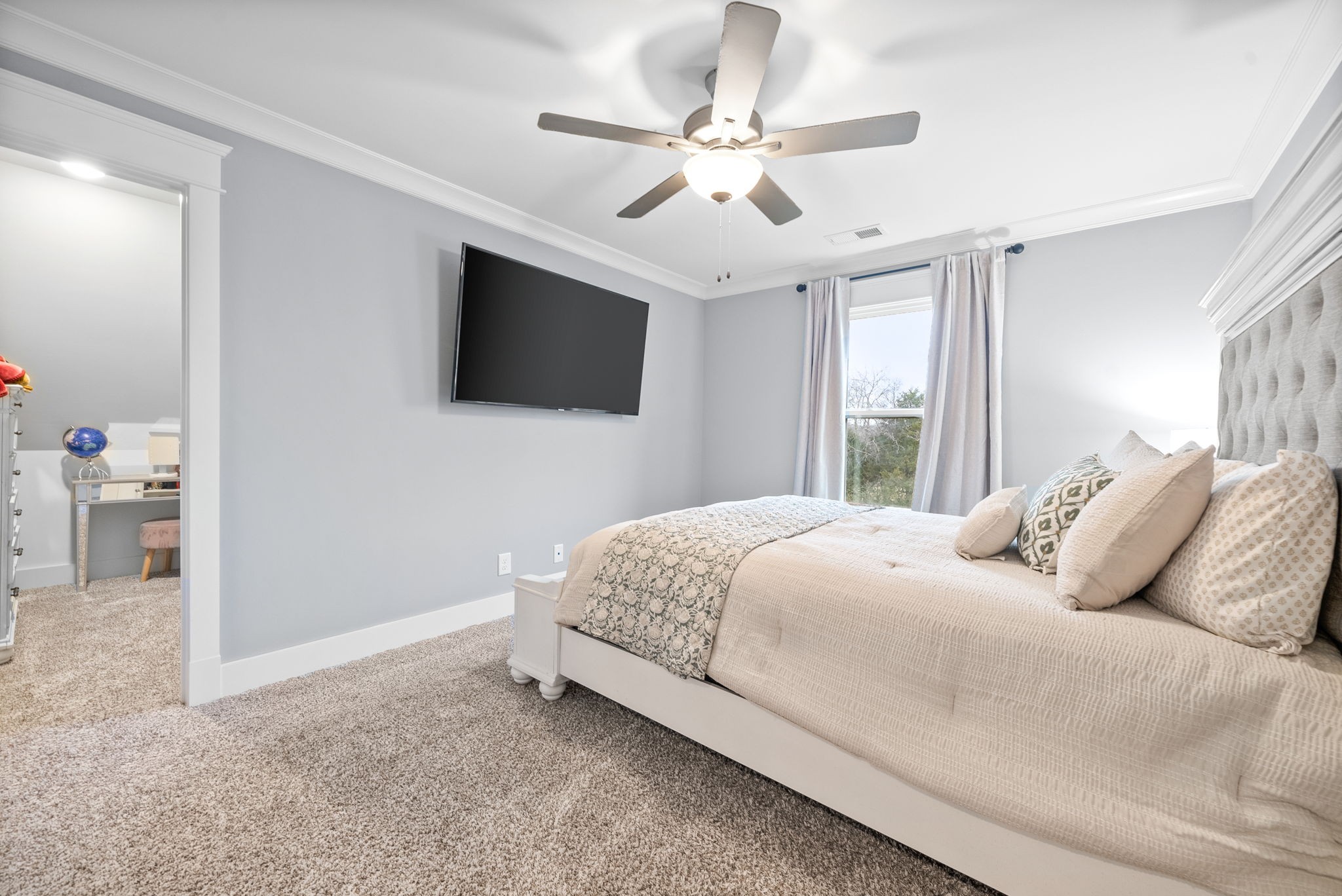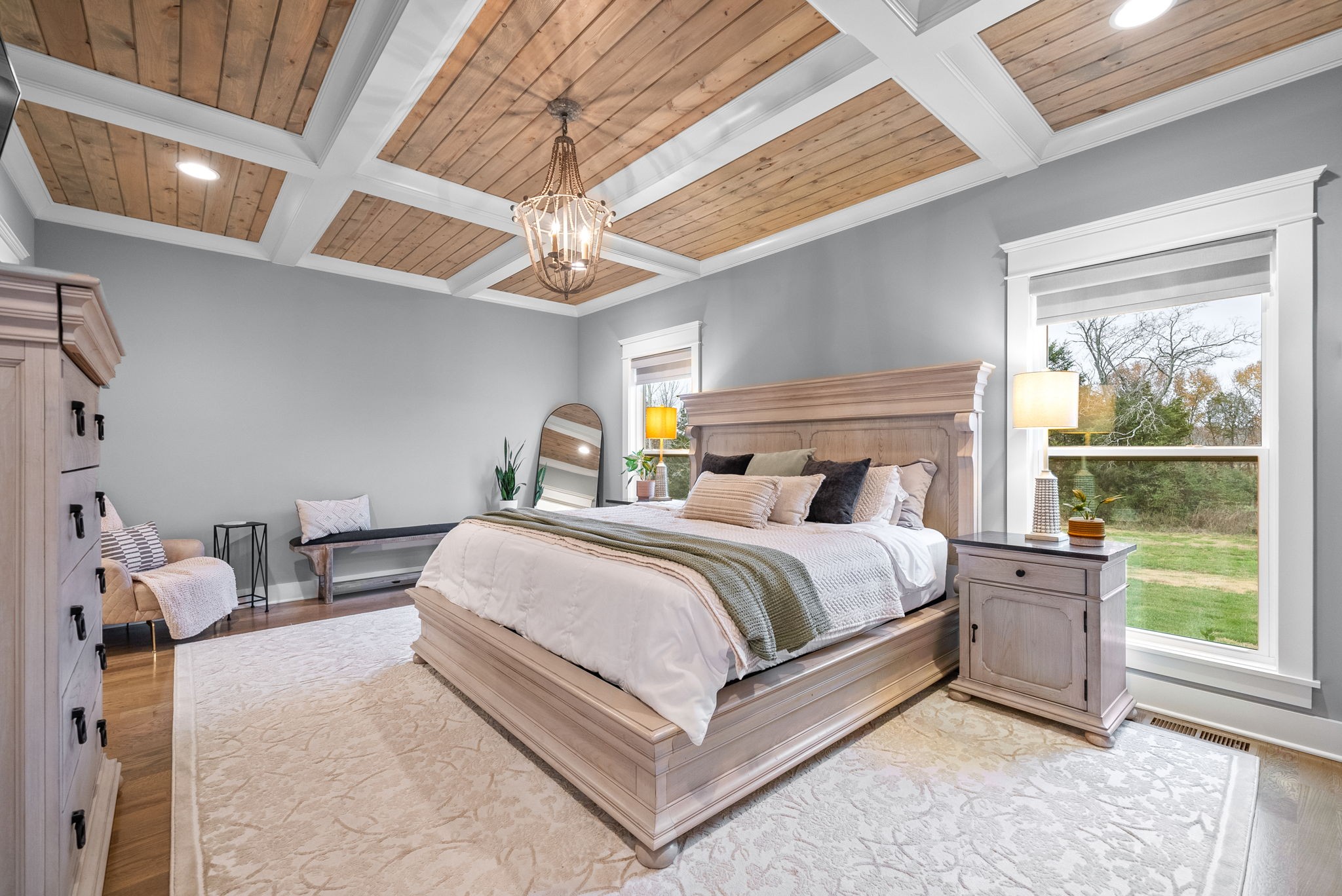 Why buy new construction when you can have the same plan WITH UPGRADES for less? This Peyton plan by quality builder Eastland Construction sits on a half acre lot with a tree lined view. There is plenty of room to add a pool. Upgrades include an irrigation system, security system, screened in patio, matte black door knobs and hinges, updated hardware, new light fixtures, and fresh paint throughout. This home also features SAND AND FINISH hardwood floors & extensive crown molding. You don't have to worry about sealing the aggregate because it was all done this year. Open floorplan that includes a large kitchen with a breakfast nook AND formal dining room. The kitchen has stainless steel appliances, double ovens, and stunning quartz countertops. All three bathrooms have quartz countertops. The primary suite has a dreamy walk in closet with built ins and tons of space. 2nd bedroom downstairs is currently being used as an office with a built in Murphy bed. Both bedrooms upstairs have large walk in closets. The over the garage bonus/rec room is 30x20 with plenty of space for family nights together. An added bonus, there is an additional room upstairs with a walk in closet that could be an office or hobby room. Many Peyton plans do not have this additional square feet. There are also TWO large attic spaces. Farmington Woods is a highly desired neighborhood with large lots and side garages, showcasing the curb appeal of each lovely home.