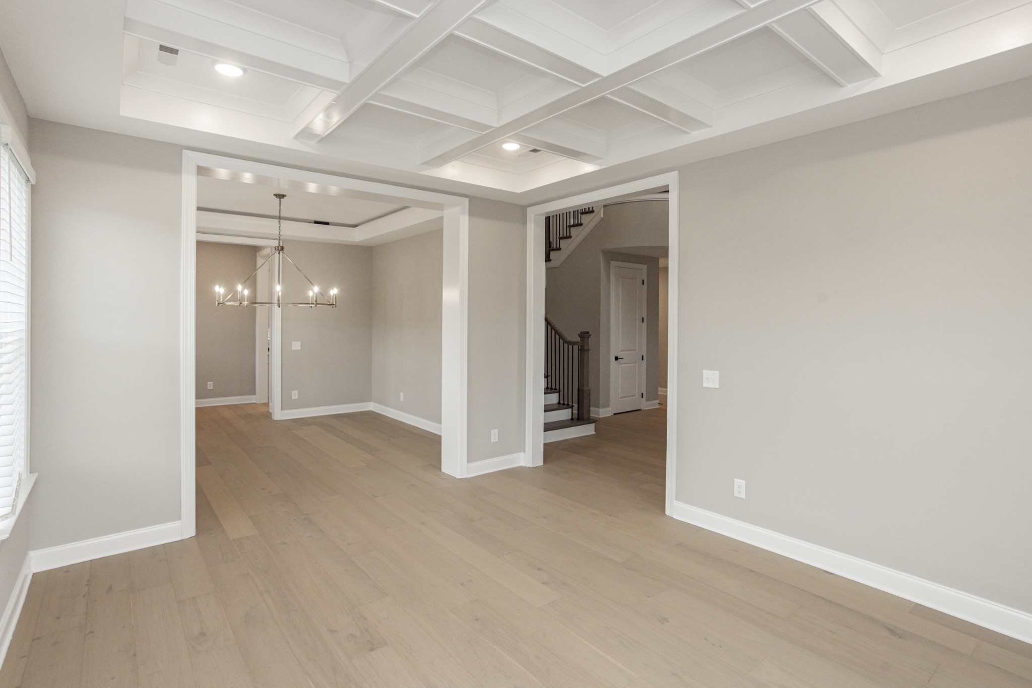 5 spacious bedrooms, 4 full bathrooms, and a 3-car garage, this home offers the perfect blend of elegance and functionality. From the moment you step into the grand two-story entryway, you’ll be captivated by the open layout and upscale details. Tray and beamed ceilings add architectural interest to the expansive living and dining areas, creating a warm yet sophisticated atmosphere.