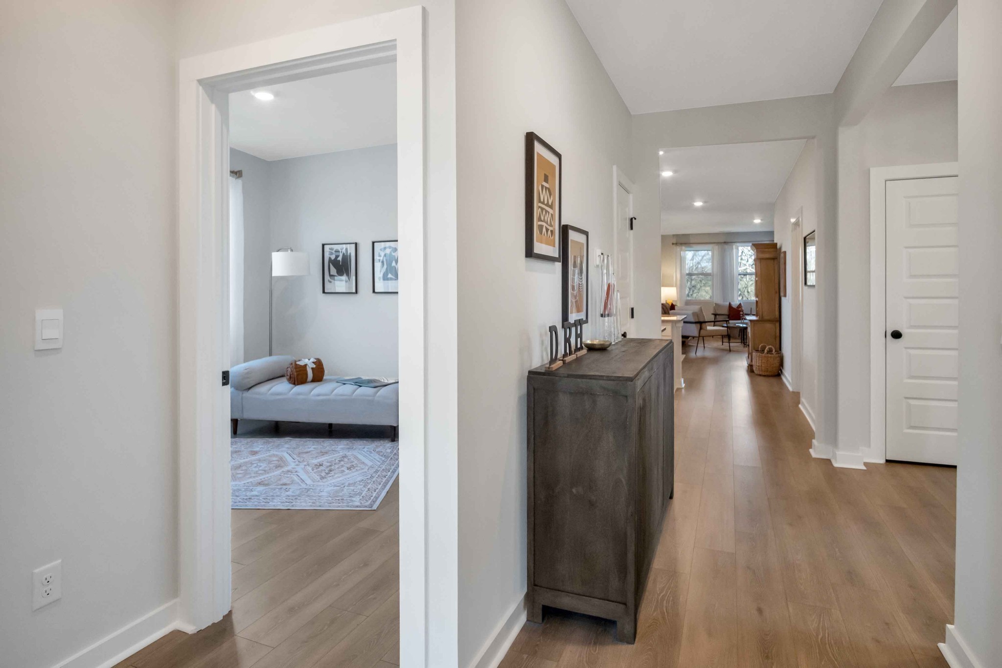 The "Dover " plan features a split bedroom design, with wonderful, open main living areas in between. The Flex Space with French Doors could be Home Office or Den. Your Gourmet Kitchen features a 36" Five-burner Gas Cooktop, beautiful white cabinetry, elegant and durable quartz countertops, soft close drawers, and a generously sized walk-in pantry. The Owner's Bath comes with an upgraded tile shower, dual vanities with quartz countertops and easy access to the Laundry Room. Enjoy your morning coffee or tea and even your afternoons lounging under your Covered Patio. HOA includes care of all common areas, access to Lifestyle Center, plus Individual landscape maintenance, lawncare / sod mowing, irrigation, mulching and pruning landscape. AT&T Fiber internet also included. Conveniently located in the heart of Sumner County.