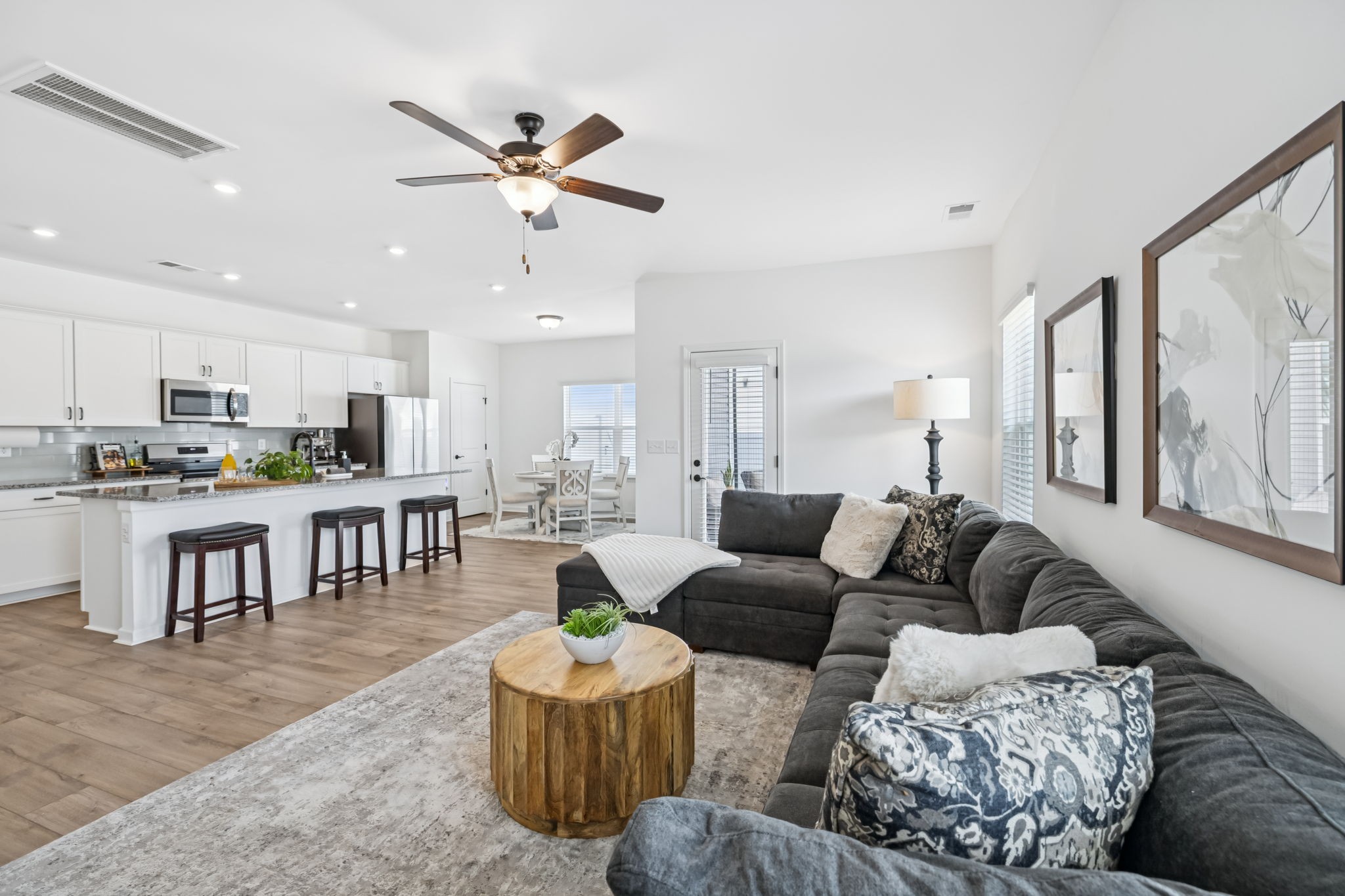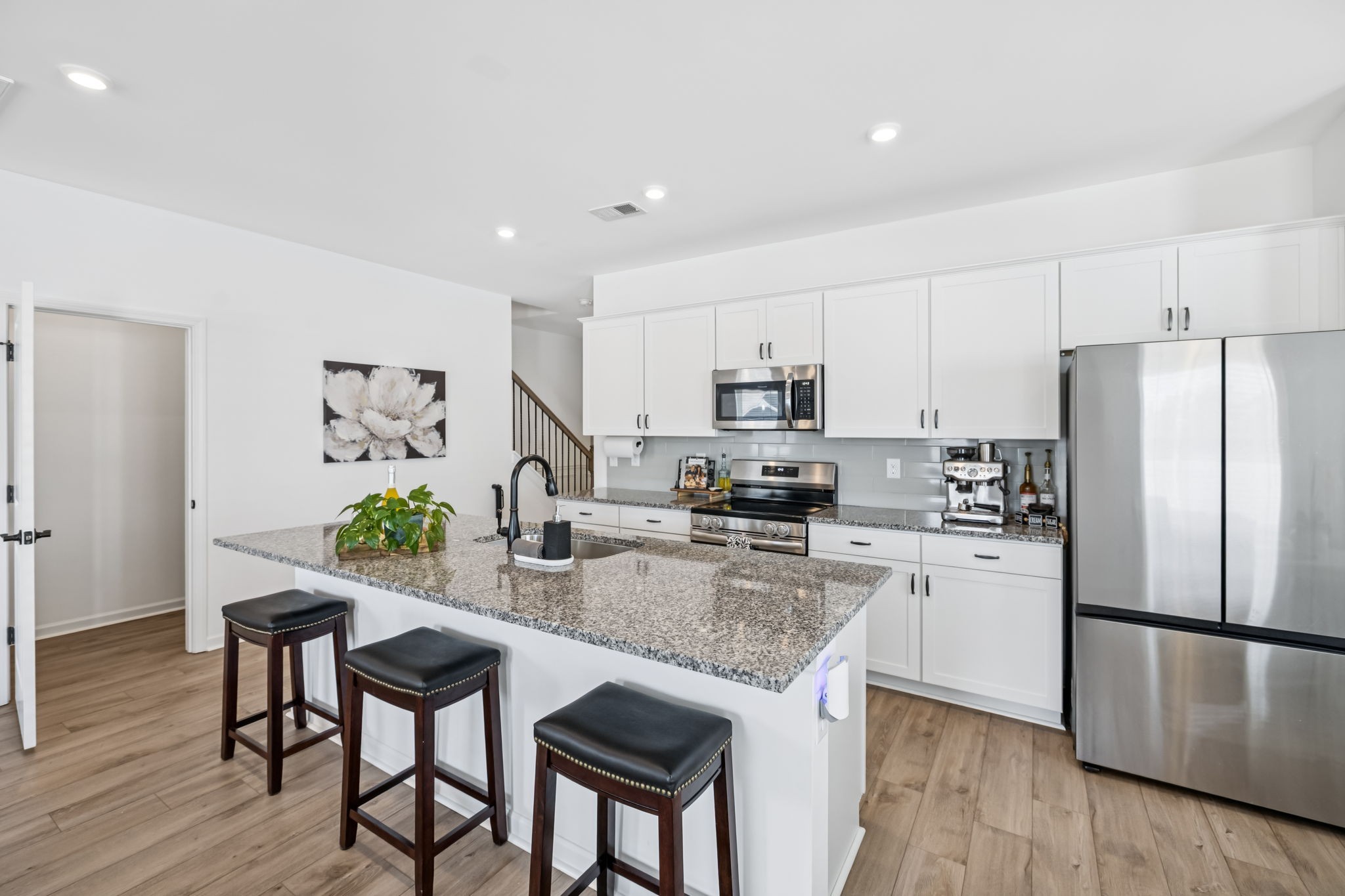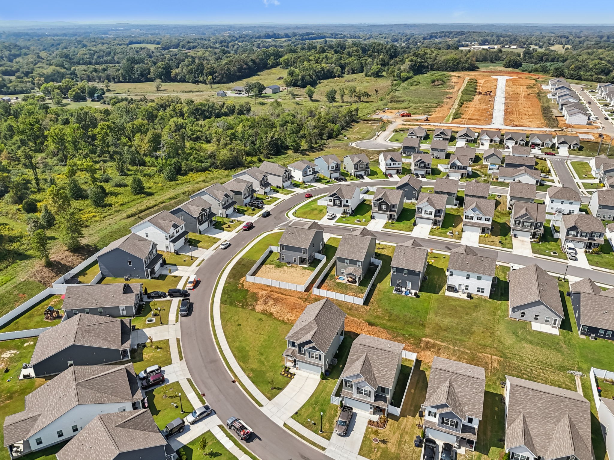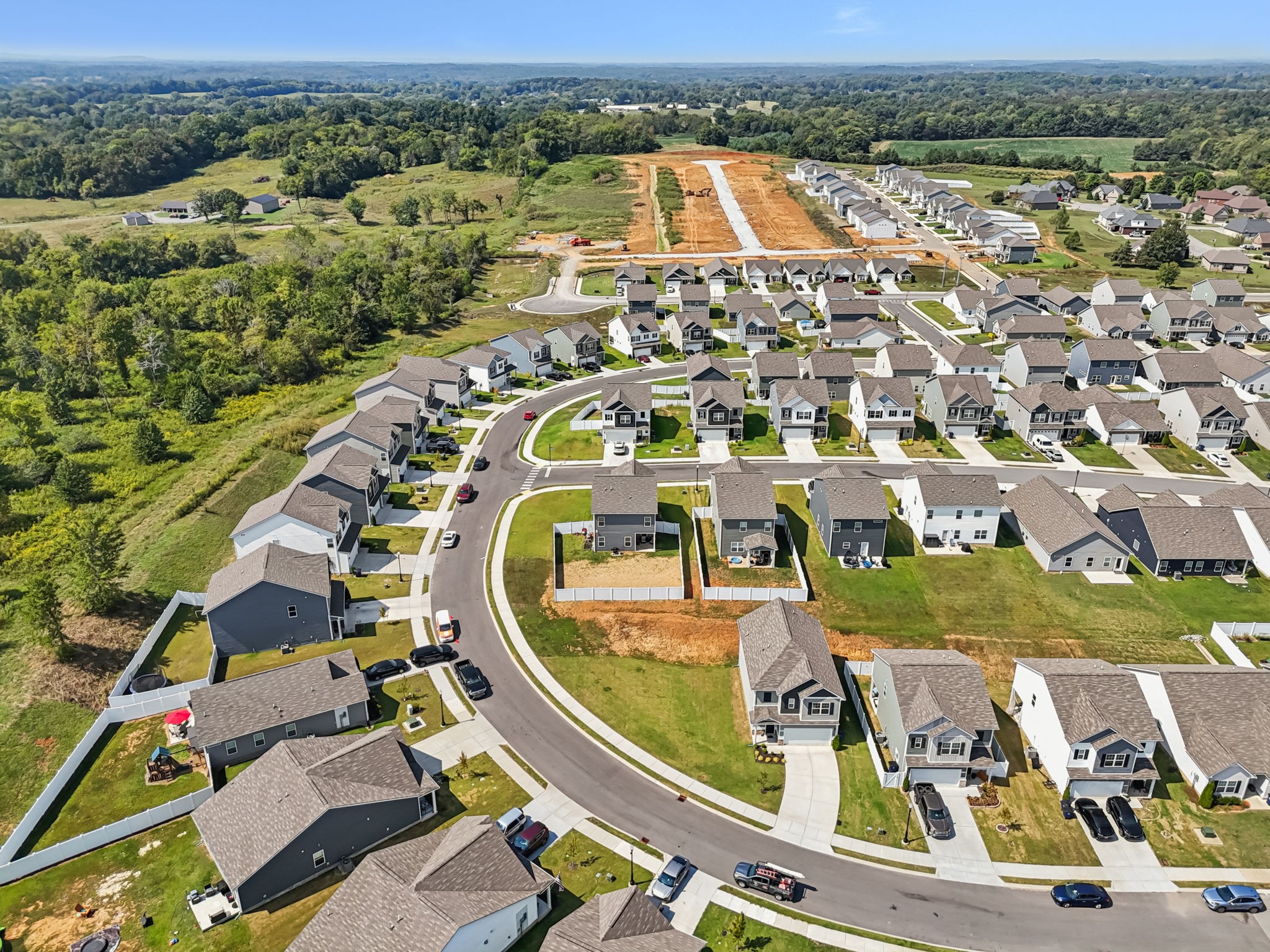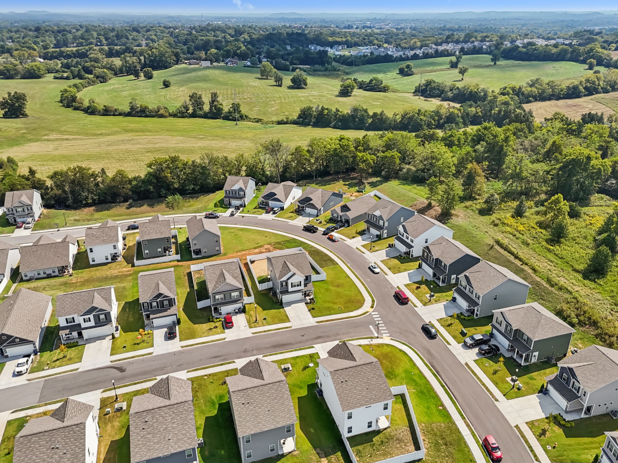 Welcome to Your Better-Than-New Home! This immaculate 3 bedroom, 2.5 bath home with a 2-car garage is ready for you! Outdoor lovers will love the unique rear corner covered porch directly off the spacious living room. This chef’s kitchen features granite countertops, backsplash, stainless steel appliances, and a large island, all overlooking the light-filled family room — perfect for everyday living and entertaining. The main level shines with enhanced vinyl plank flooring and detailed trim work that makes a statement the moment you enter the foyer. Upstairs, a large loft area separates the private owner’s suite from two oversized secondary bedrooms and a full bath. The convenient laundry room is centrally located on 2nd floor for ease of use. This home sits on the largest lot in the community and is fully fenced with a white vinyl privacy fence, giving you the space and seclusion you’ve been looking for. With tons of closet storage throughout, you’ll never run out of room to stay organized. Just 2 years old, this home offers the peace of mind of new construction with added upgrades, vinyl privacy fence, premium lot and trim work — making it truly better than new! Freshly mulched, seeded and straw backyard with new professionally landscaped berms.