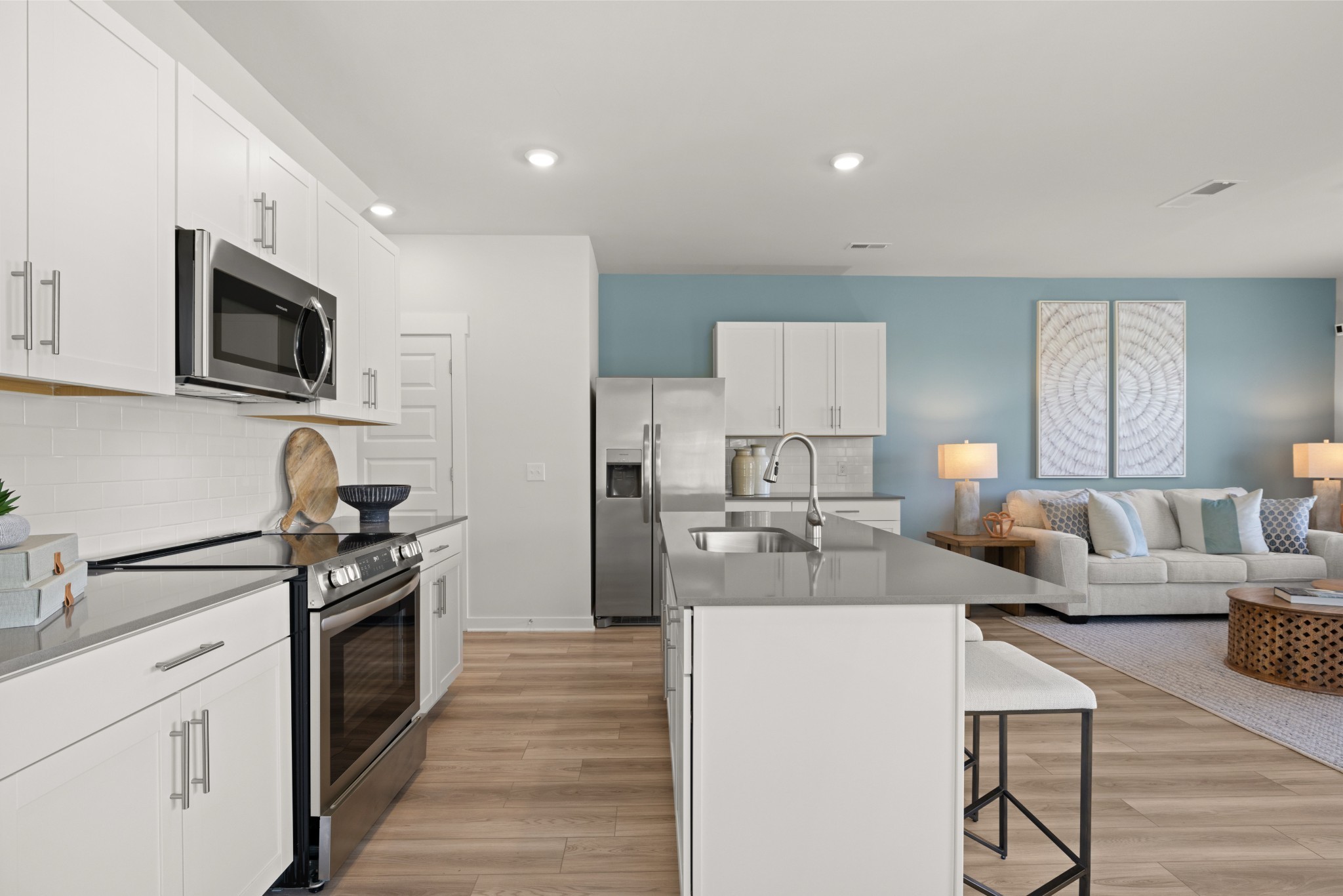 LOT #34 - Harper. This new two-story townhome design combines comfort and style. The first floor features an open-concept layout connecting a living room for shared moments, a dining room for memorable meals and a kitchen for inspired cooks. Nearby sliding glass doors provide access to a covered patio for outdoor enjoyment. On the second floor, two secondary bedrooms and a spacious owner’s suite with a luxe bathroom and large walk-in closet provide restful retreats for family members and overnight guests. *Images from a furnished model of this home. Actual configuration and features may vary.