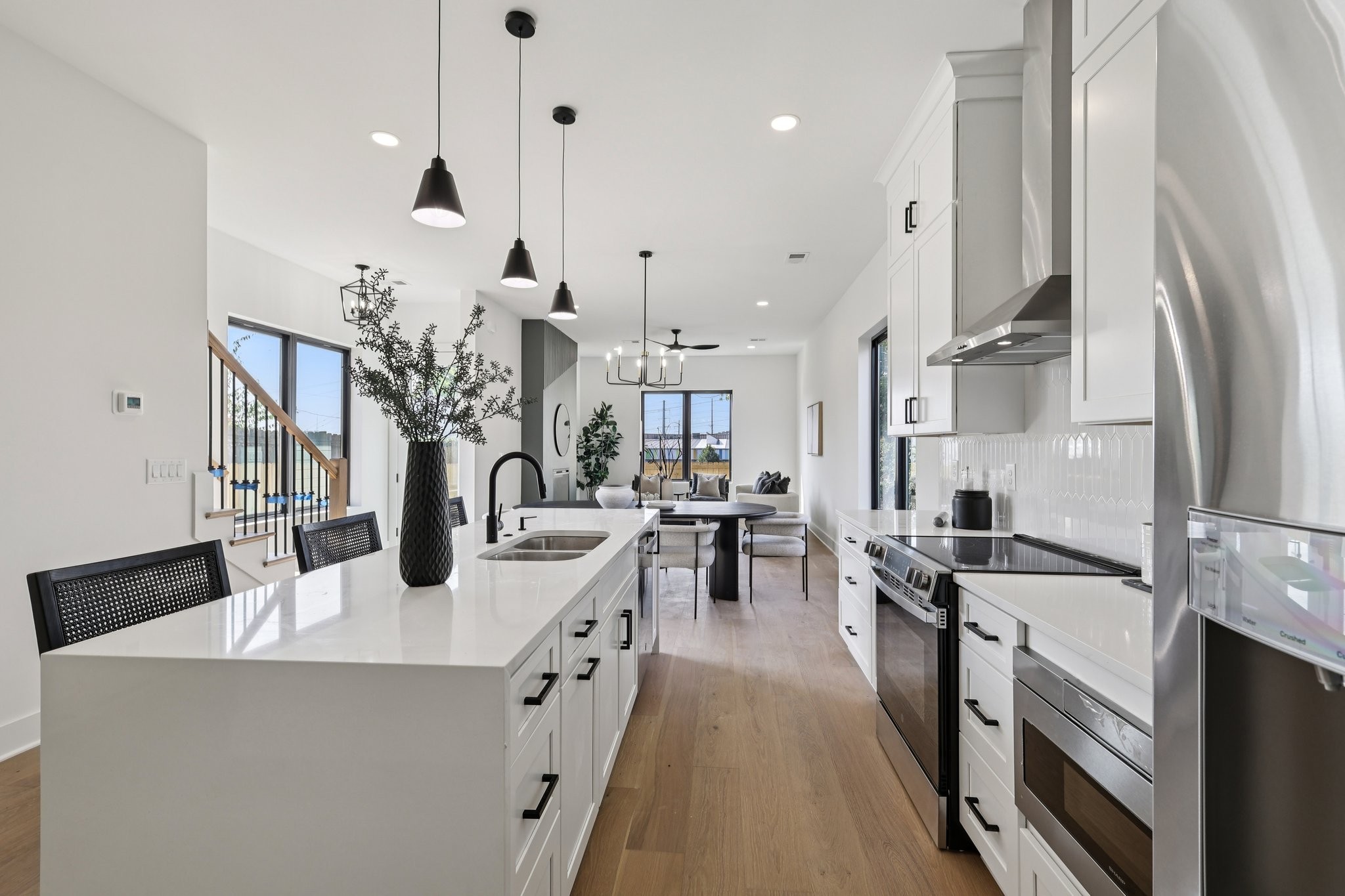 - AppliancesBuilt-In Electric Range, Dishwasher, Disposal, Microwave, Refrigerator, Stainless Steel Appliance(s)