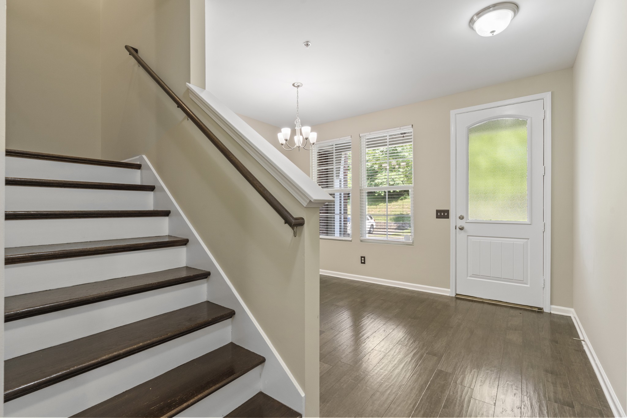 ? Elegant hardwood floors downstairs and on the staircase