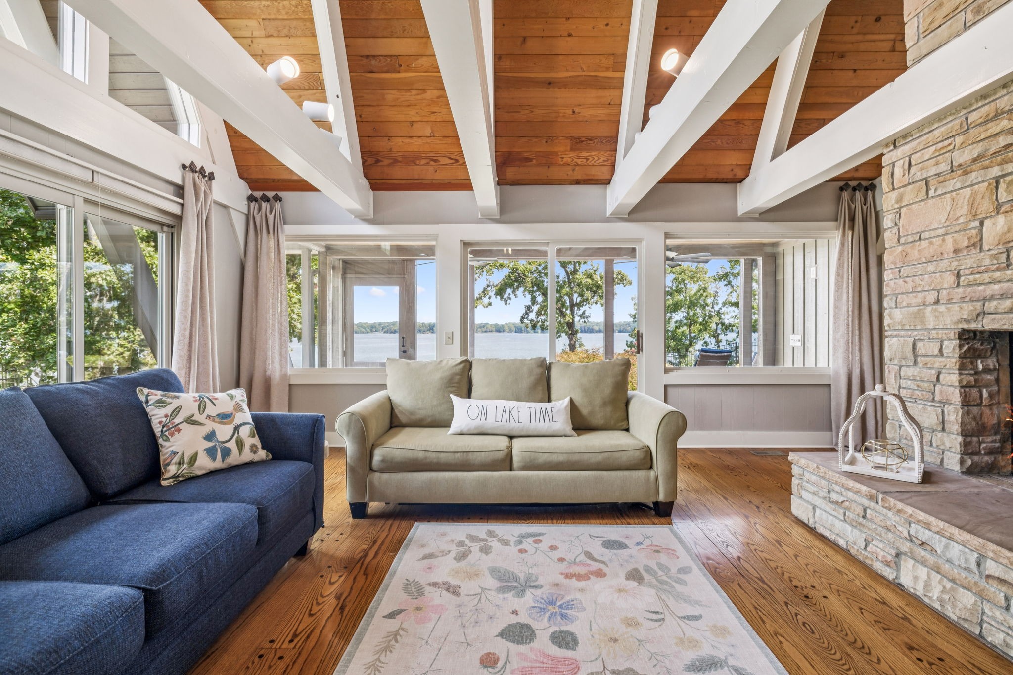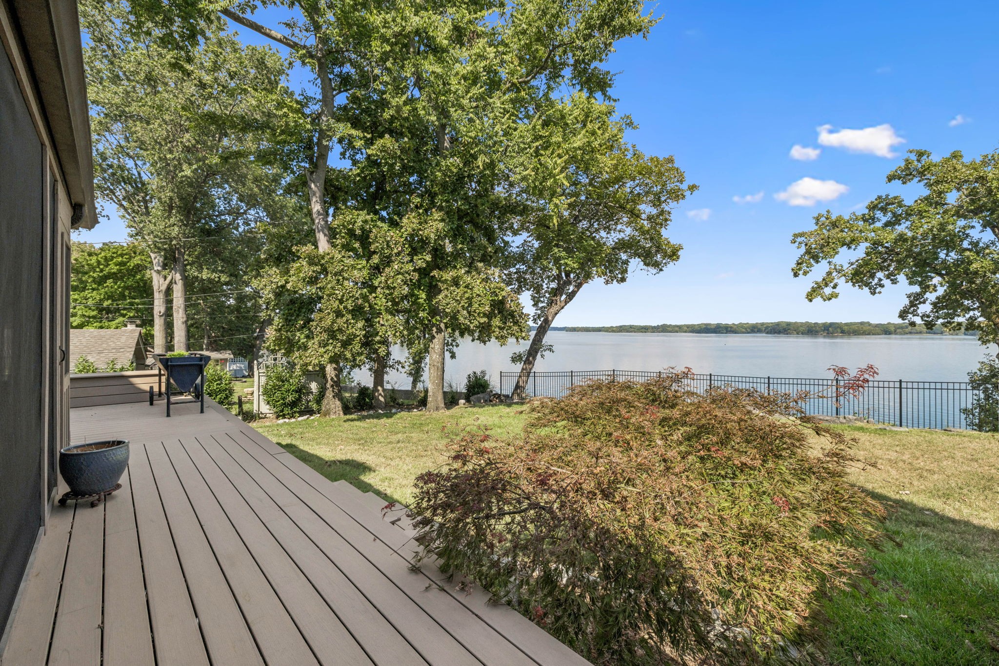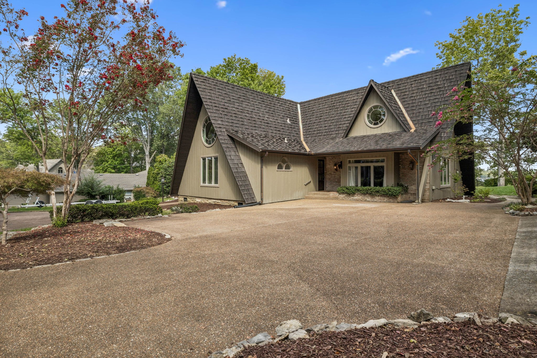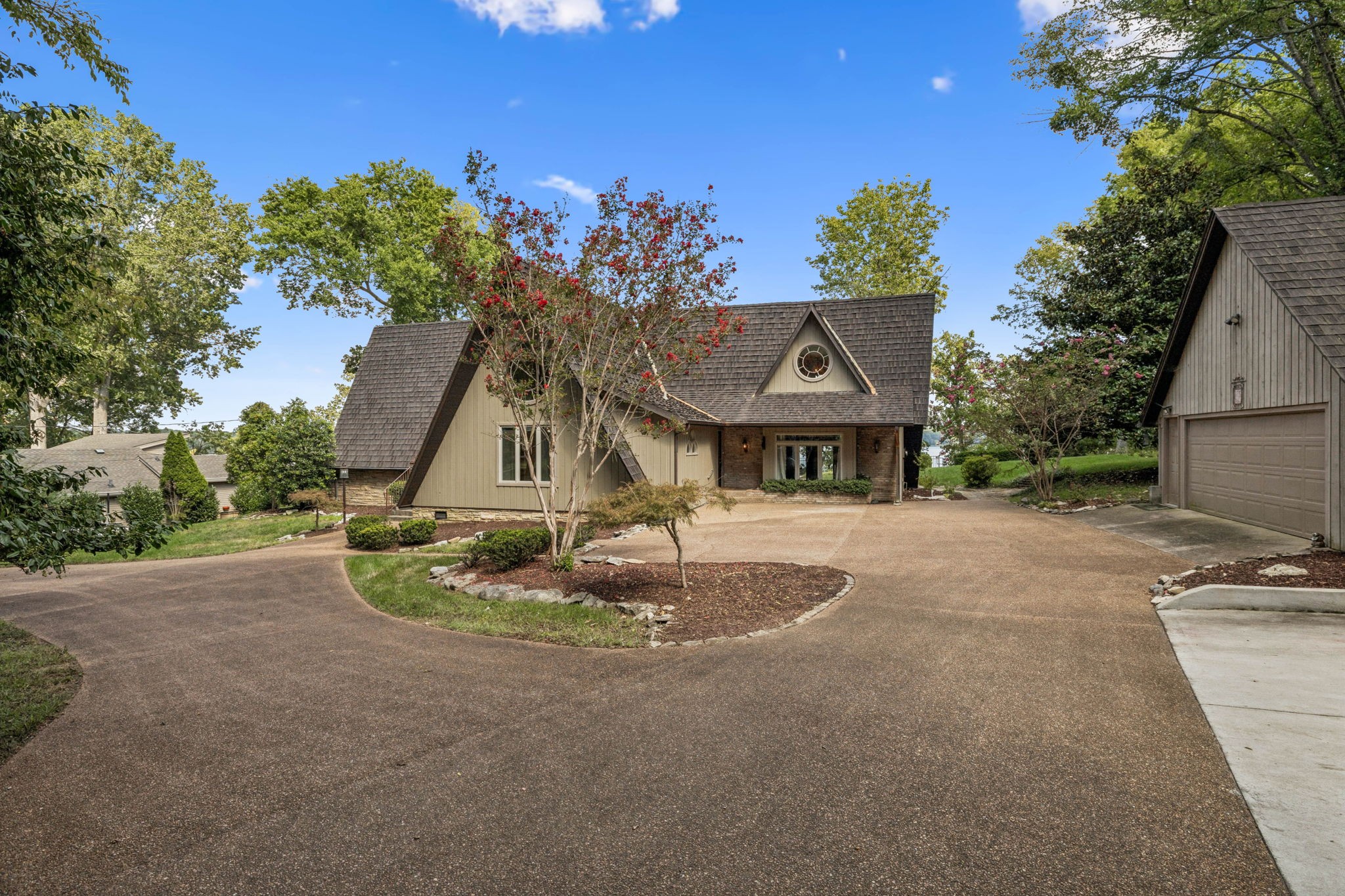 Welcome to 220 Waterview Drive, a rare opportunity to own a Braxton Dixon–built lake home in the heart of Hendersonville. Renowned for his artistry and craftsmanship, Dixon was the master builder behind homes for legends like Johnny Cash, Roy Orbison, and Barbara Mandrell. His signature designs, known for blending natural materials with timeless character, have made his properties some of the most coveted in Tennessee. This 3,500-square-foot retreat, set on a 1-acre lot, carries his hallmark detail while offering the ease of extensive modern updates. From sunrise to sunset, enjoy breathtaking views over Old Hickory Lake from the newly added screened-in porch, expansive Trex deck with T-Cool surface, or the travertine patios that create the perfect backdrop for lakeside entertaining. Outdoors, new landscaping frames the home’s cedar shake roof with copper flashing, while the newly installed sports court adds a fun, active lifestyle element. The private dock has been completely refreshed with new decking (2024), new roof, reinforced supports, and a lift designed to accommodate large boats—making every lake day effortless. A new cement walkway with an iron railing leads you straight to the water’s edge. Inside, comfort meets innovation with a 2025 HVAC system featuring UC light for air cleansing and a Lennox PureAir system, plus a fully encapsulated crawlspace. Every detail has been considered for both beauty and peace of mind. Perfect for full-time living or weekend getaways, this lakefront retreat offers the ultimate blend of relaxation, recreation, and convenience—just minutes from shopping, dining, and entertainment in Hendersonville, yet worlds away with the serenity of lakefront living.