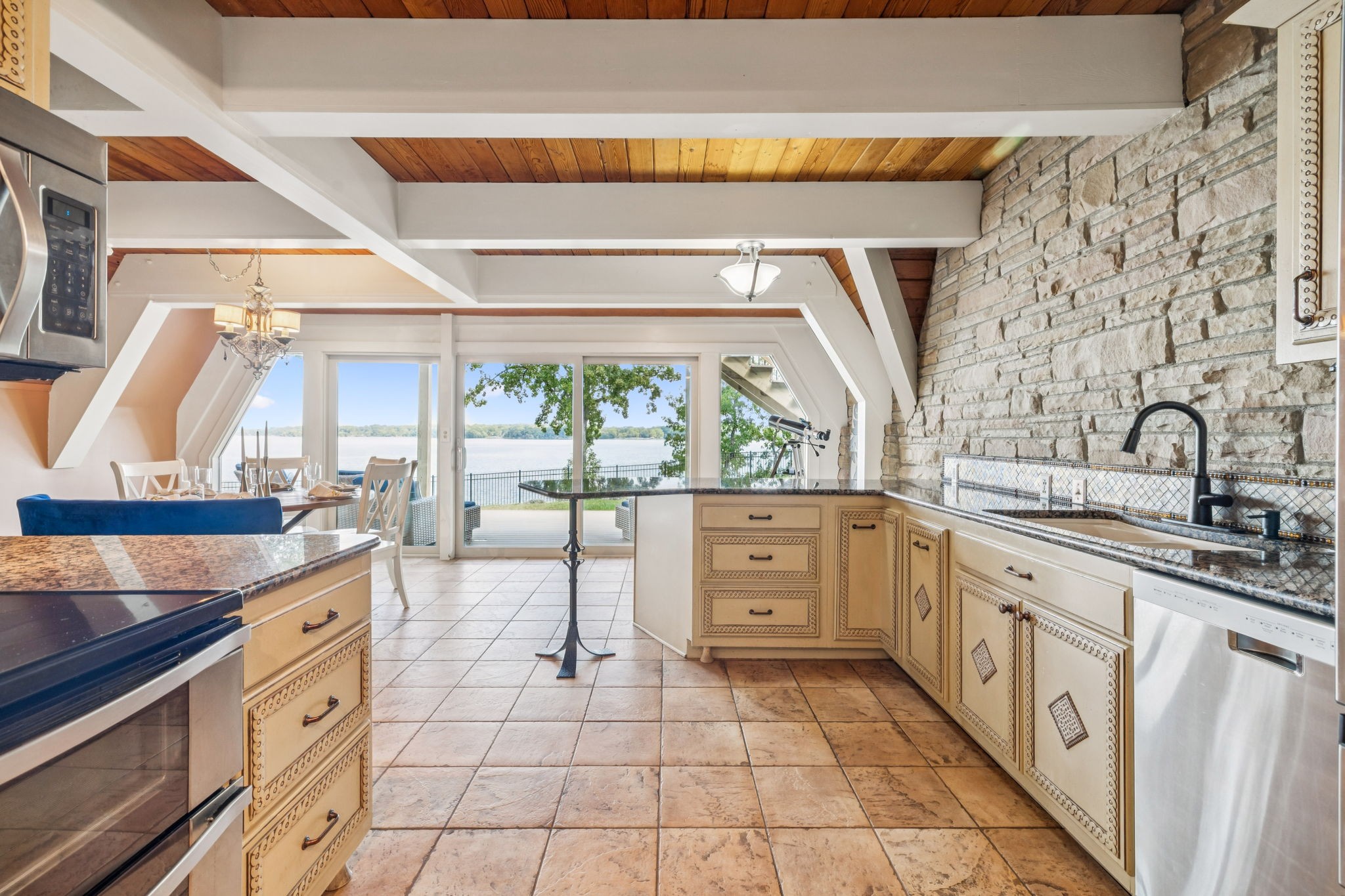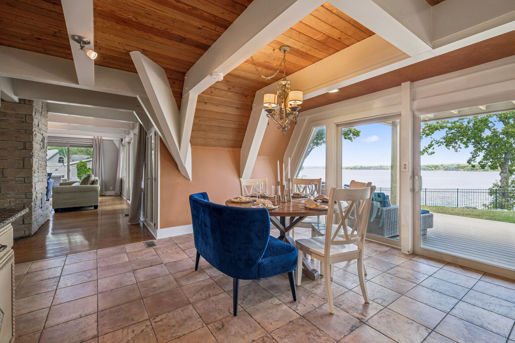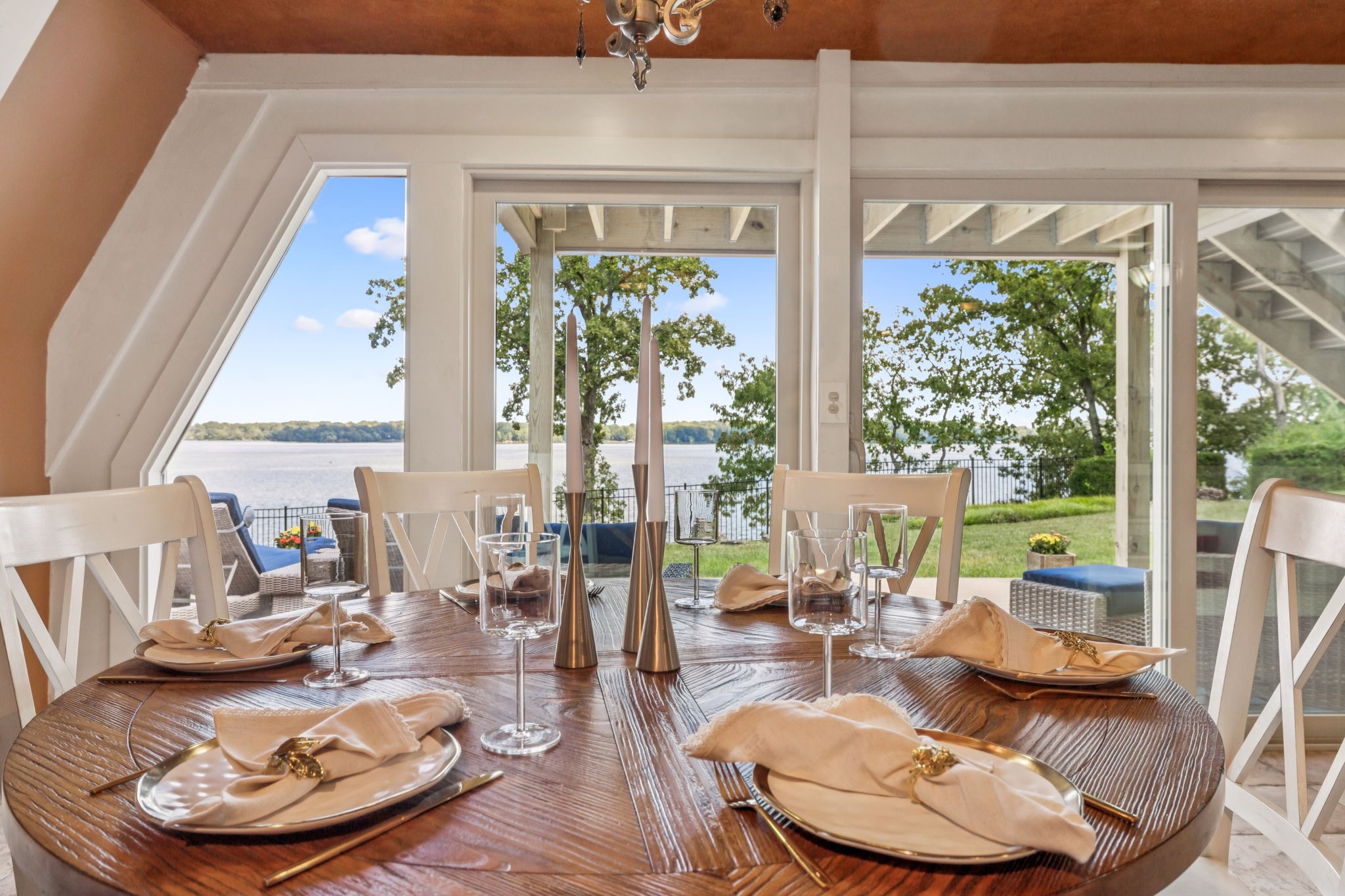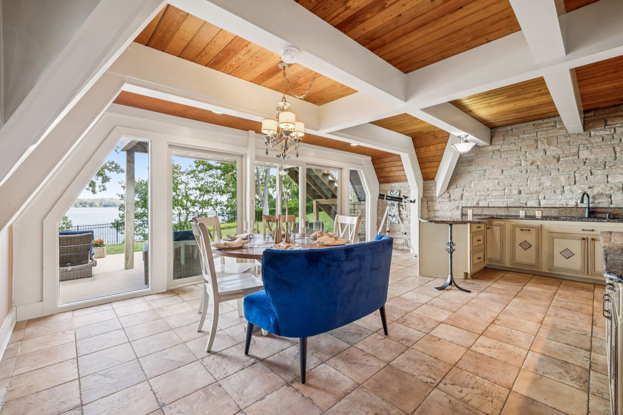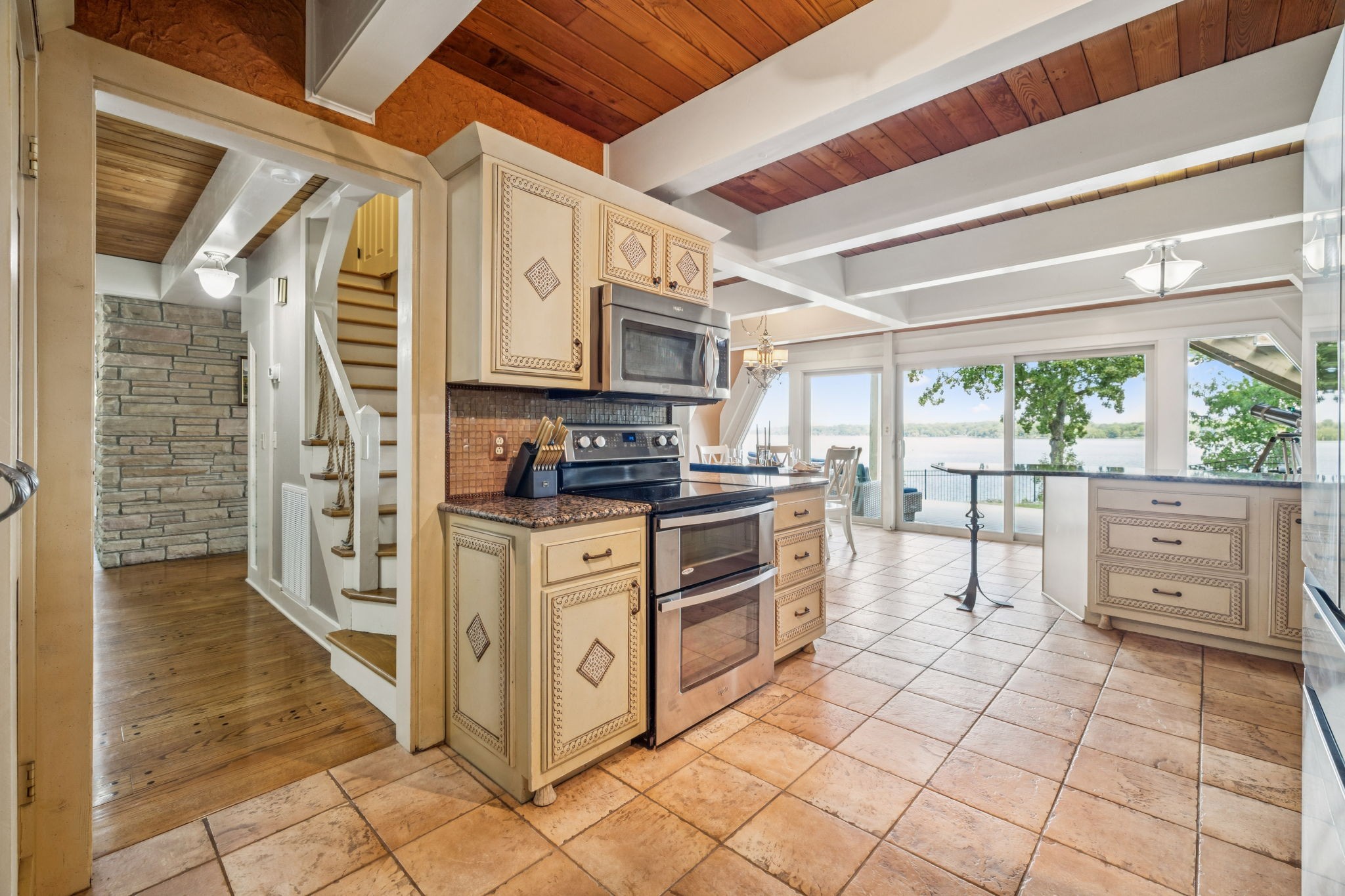 Welcome to 220 Waterview Drive, a rare opportunity to own a Braxton Dixon–built lake home in the heart of Hendersonville. Renowned for his artistry and craftsmanship, Dixon was the master builder behind homes for legends like Johnny Cash, Roy Orbison, and Barbara Mandrell. His signature designs, known for blending natural materials with timeless character, have made his properties some of the most coveted in Tennessee. This 3,500-square-foot retreat, set on a 1-acre lot, carries his hallmark detail while offering the ease of extensive modern updates. From sunrise to sunset, enjoy breathtaking views over Old Hickory Lake from the newly added screened-in porch, expansive Trex deck with T-Cool surface, or the travertine patios that create the perfect backdrop for lakeside entertaining. Outdoors, new landscaping frames the home’s cedar shake roof with copper flashing, while the newly installed sports court adds a fun, active lifestyle element. The private dock has been completely refreshed with new decking (2024), new roof, reinforced supports, and a lift designed to accommodate large boats—making every lake day effortless. A new cement walkway with an iron railing leads you straight to the water’s edge. Inside, comfort meets innovation with a 2025 HVAC system featuring UC light for air cleansing and a Lennox PureAir system, plus a fully encapsulated crawlspace. Every detail has been considered for both beauty and peace of mind. Perfect for full-time living or weekend getaways, this lakefront retreat offers the ultimate blend of relaxation, recreation, and convenience—just minutes from shopping, dining, and entertainment in Hendersonville, yet worlds away with the serenity of lakefront living.