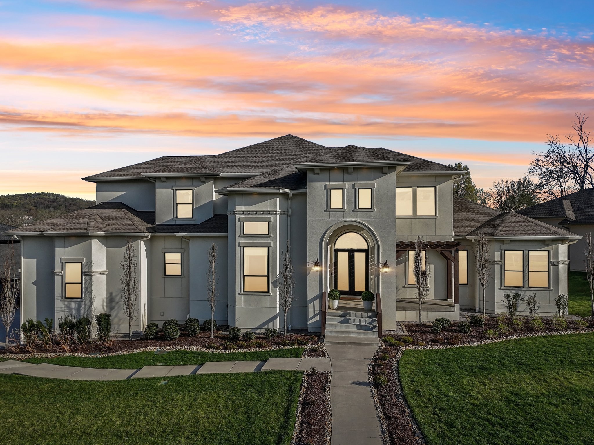 Bring an offer! Special incentive with preferred Lender with approval: Seller to contribute towards buying down interest as low as 4.25%. A breathtaking custom-built Mediterranean-inspired estate located in the heart of Franklin’s prestigious Lookaway Farms community. This one-of-a-kind transitional masterpiece features a 100% stucco exterior and blends old-world charm with modern sophistication across approximately 5,300 square feet. Zoned for the top-rated Ravenwood High and Clovercroft Elementary, this architectural gem was thoughtfully designed for both grand entertaining and effortless everyday living. Step through custom iron double doors into a sun-drenched open-concept layout with soaring 20-foot ceilings, panoramic windows, and uninterrupted views of rolling hills and lush greenery. A dramatic curved staircase anchors the main level, while exquisite high-end finishes and intricate tilework radiate luxury throughout. The chef’s kitchen features Wolf and Sub-Zero appliances, a spacious butler’s pantry, and opens to a striking great room with collapsible glass patio doors for seamless indoor-outdoor living. The main level also includes two spacious bedrooms, including a luxurious primary suite with fireplace, spa-like bath, oversized shower, soaking tub, Japanese Toto bidet, and dual custom walk-in closets. Additional highlights include a formal dining room, elegant office, prayer room, and a stylish wet bar with wine cooler and beverage fridge. The covered patio offers a Wolf grill and fireplace, ideal for year-round alfresco living. Upstairs, an expansive game room (with pool table) and three ensuite bedrooms—each with bidets and walk-in closets—provide comfort and privacy. Just minutes from Cool Springs and major freeways, yet tucked away in natural serenity, this extraordinary home is a rare blend of timeless design, elegance, and tranquil living. Quite simply, there is nothing else like it in all of Franklin.