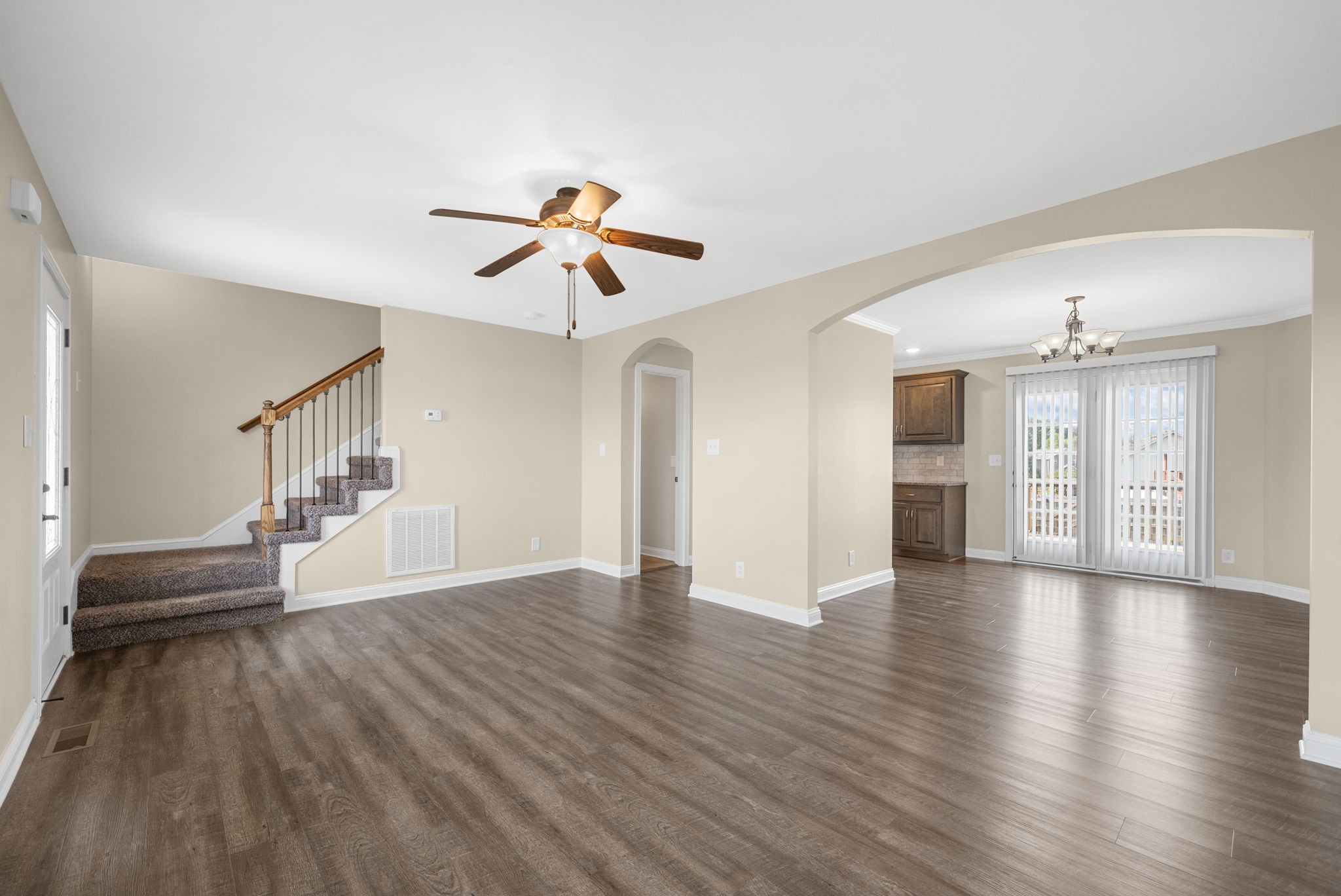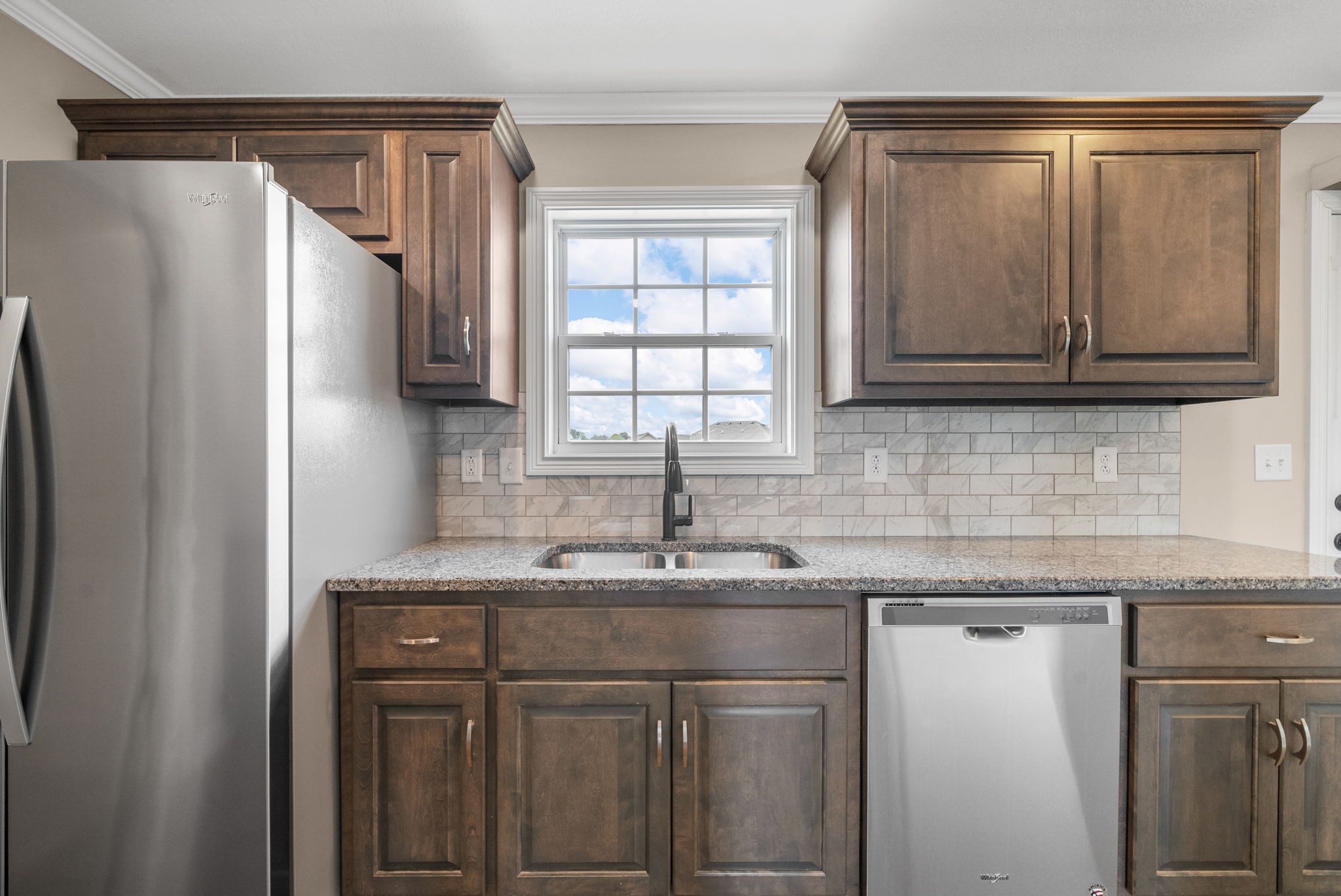 Welcome to this inviting 4 bedroom, 2.5 bathroom home featuring a 1-car garage and an extra-large driveway with plenty of parking space. Inside, you’ll find a bright living room, a dedicated dining area, and a modern kitchen designed for both style and function. The kitchen boasts granite countertops, an abundance of cabinet and counter space, a stylish tile backsplash, a pantry, and a charming window overlooking the backyard. A convenient half bathroom is also located on the main level.
