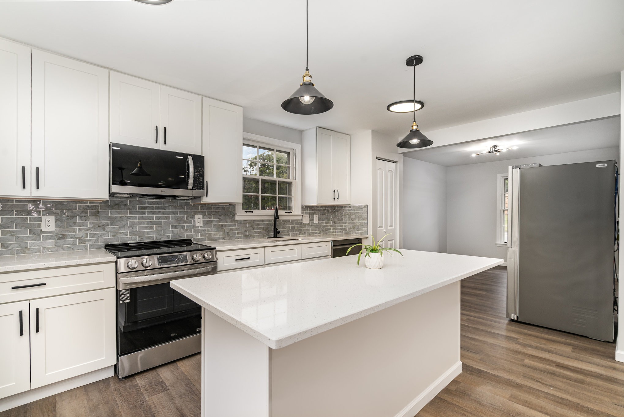 Fully renovated and move-in ready, this stunning home features a 2-car garage, an open floor plan with a spacious living room filled with natural light and a cozy fireplace, and a brand-new modern kitchen with a large island, stainless steel appliances (including refrigerator), soft-close shaker cabinets, quartz countertops, decorative backsplash, a pantry and bay window. Offering three fully updated bathrooms with sleek tile finishes, a formal dining room, private office, and a versatile recreation room with wet bar and mini-fridge that can serve as a 4th bedroom, this home is designed for both comfort and functionality. Additional upgrades include fresh paint, new LVP flooring, and updated lighting throughout. Enjoy a large fenced backyard with a big and new deck, perfect for entertaining, along with abundant storage and parking—all with no HOA. Storage shed remains. Watch the walk-through video and schedule your tour today!