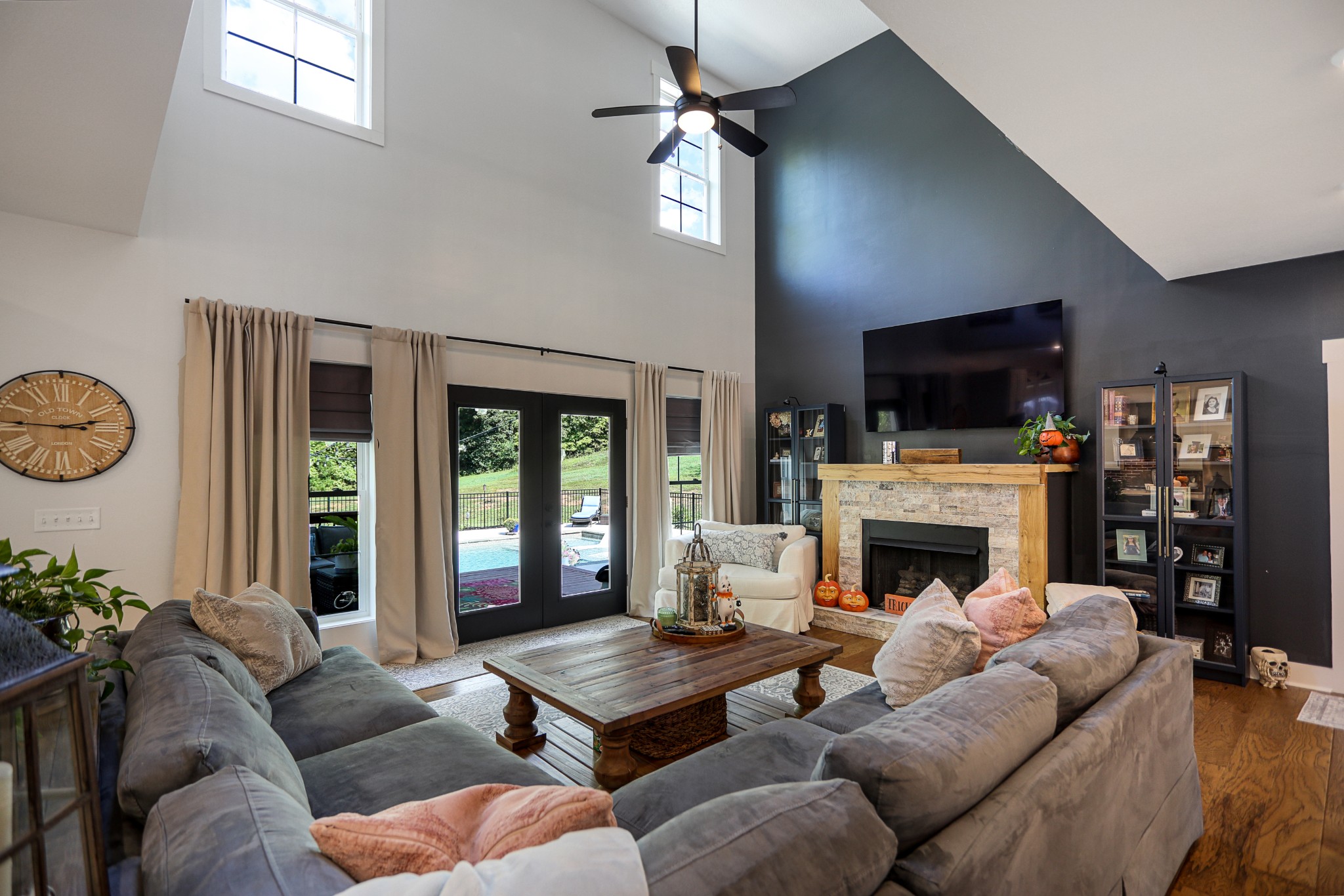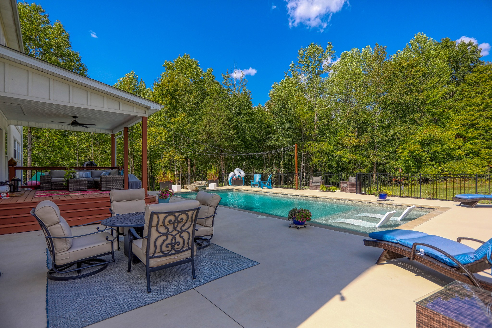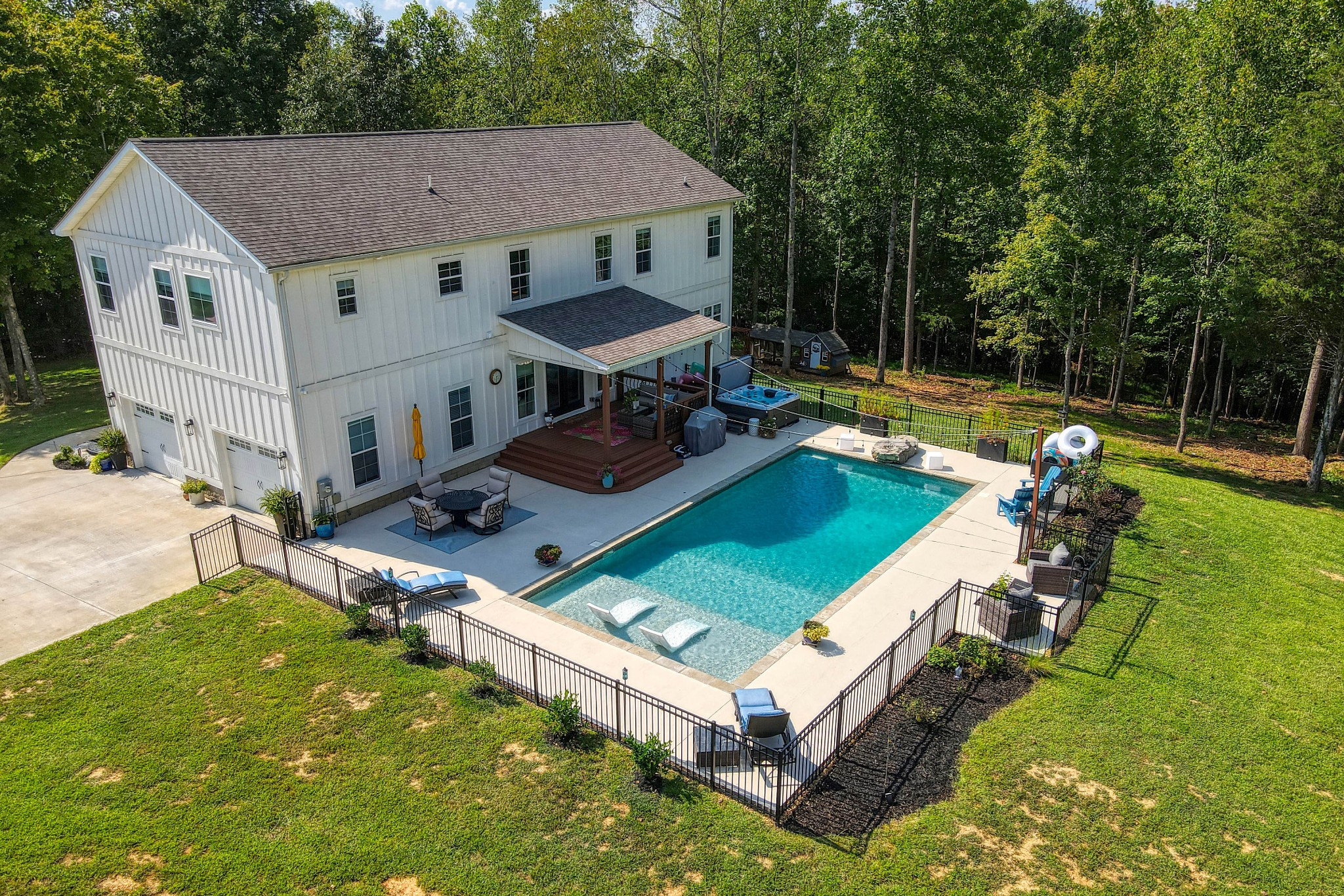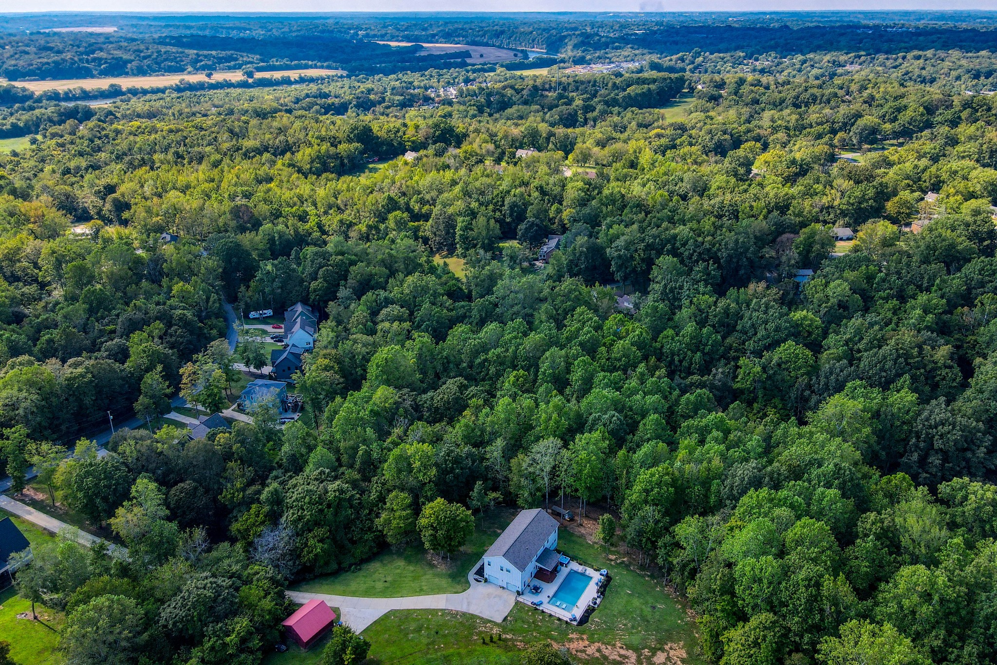 Like-new home with extensive updates in the past year. New front door with beveled glass. Open floor plan on main with huge updated kitchen featuring new appliances including Kucht gas range plus electric double ovens, new flooring, and backsplash. Great room with ventless gas fireplace, and view of pool deck. Master suite includes laundry, soaking tub, and huge separate shower. New light fixtures and custom blinds throughout the home, updated baths, updated wood flooring and new carpet upstairs. Den on balcony overlooking the living room includes a slate pool table. New stair spindles and refinished wood stair treads. Pool features beautiful sun deck. Serene locaton on 2+ acres with mature trees. Barn with loft offers lots of storage. Chicken coop with optional chickens. Just minutes from Cumberland River boat launches at Liberty Park and McCormac Landing.