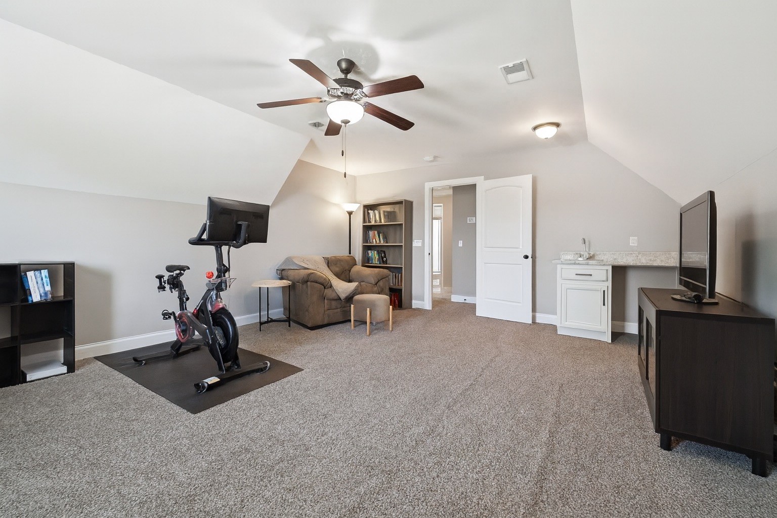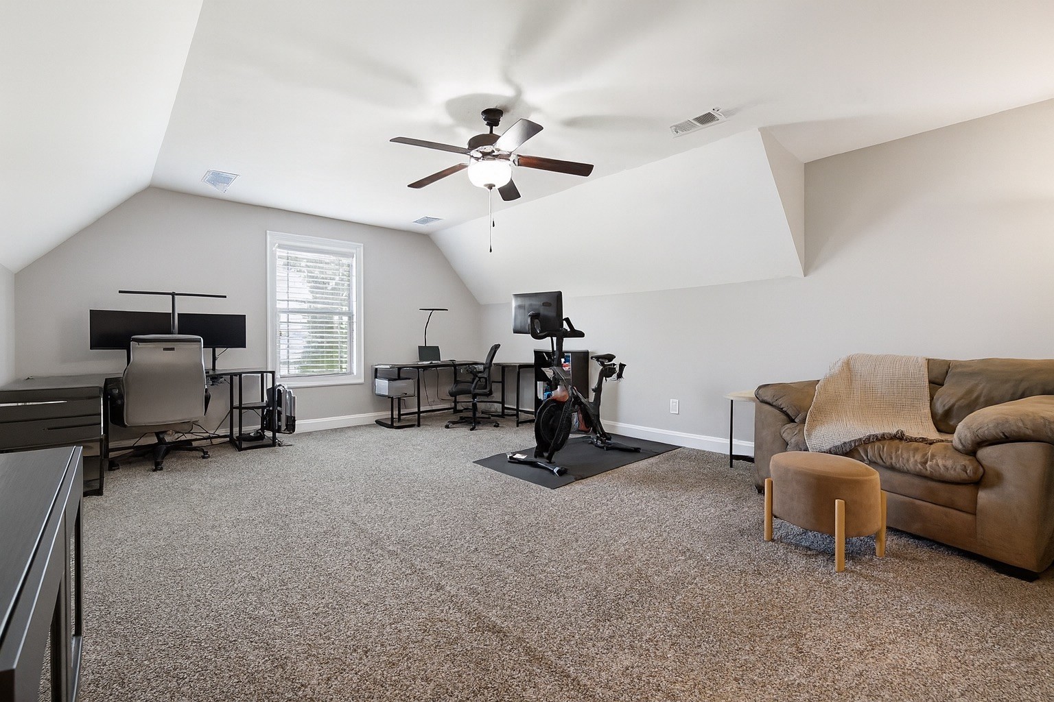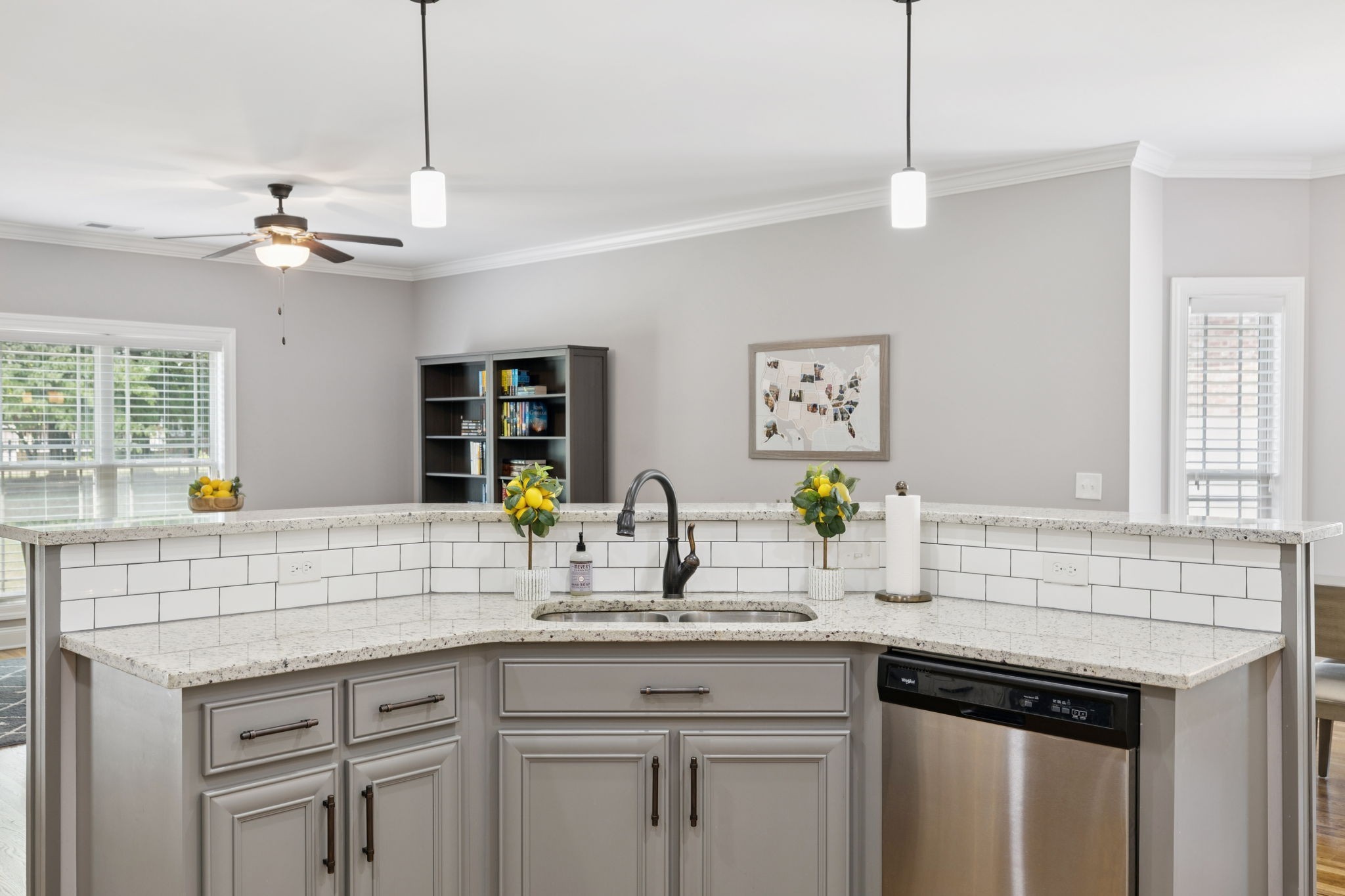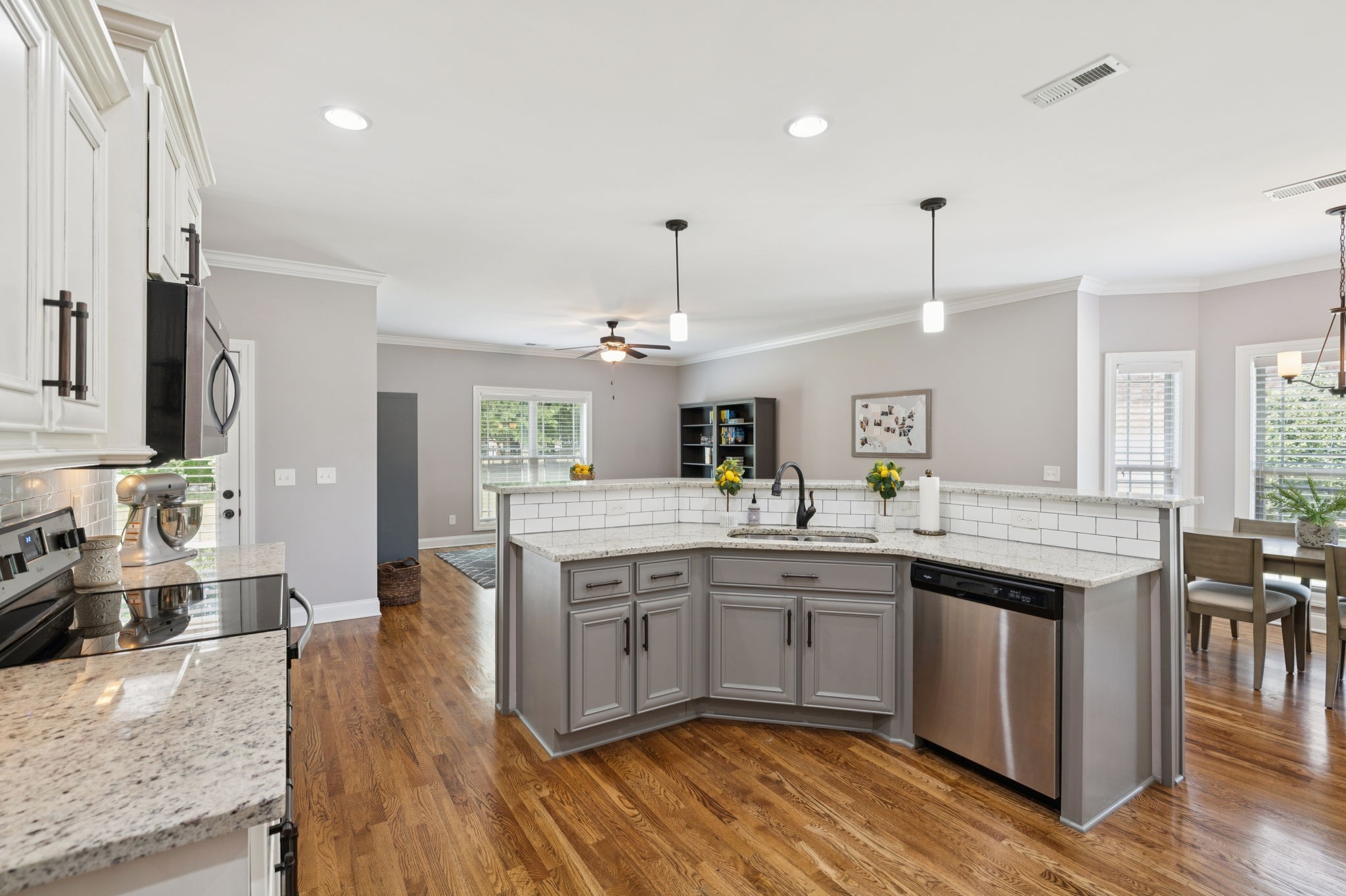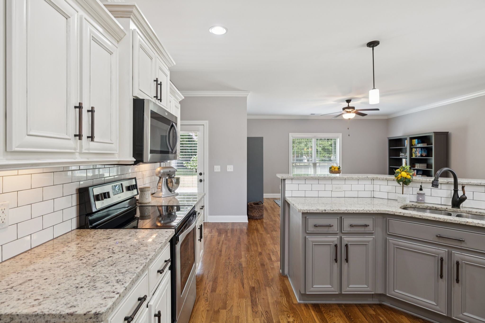 Inside, you’ll find soothing color palettes, beautiful hardwood floors, and a bright, open kitchen complete with stainless steel appliances and quality hardware. Two zoned bedrooms are located on the main level, including a spacious primary suite with dual walk-in closets and a large en-suite bath with double vanities. An oversized bonus room with a wet bar, offers versatility for entertainment, guests, or workspace.