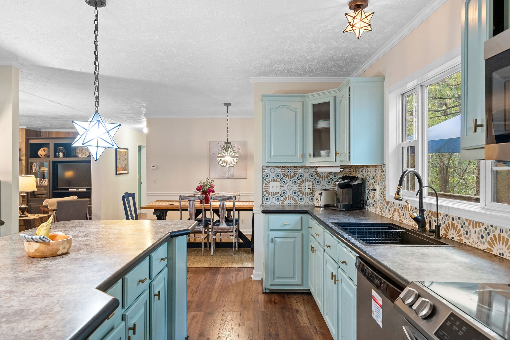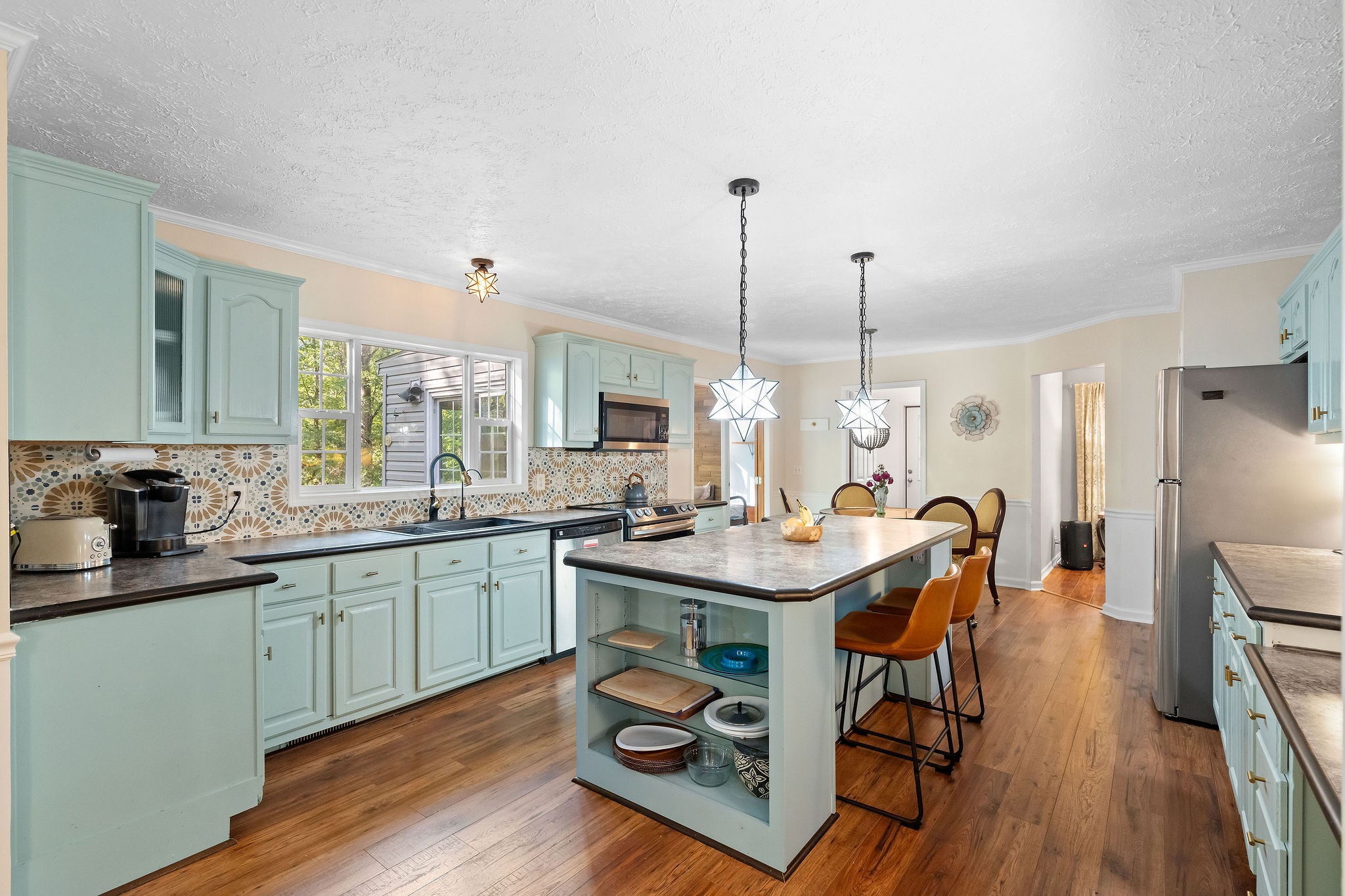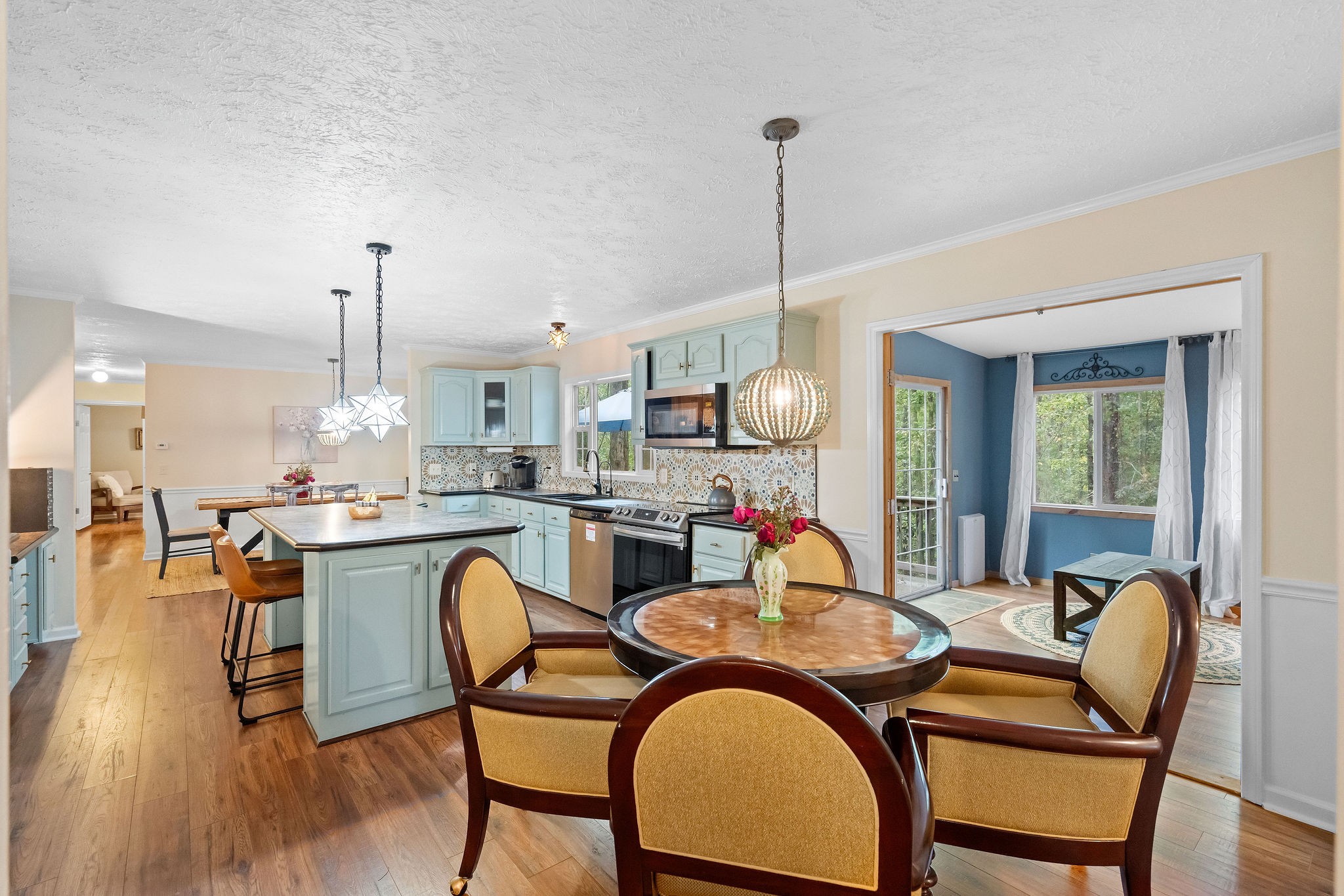 Nestled on a serene wooded lot, this Kingston Springs gem embodies laid-back Bohemian style with charming details that instantly feel like home. From the moment you step inside, you’re greeted by vibrant tile accents and an effortless flow that makes each space both inviting and functional. The thoughtfully designed layout offers privacy and comfort with the primary suite tucked away on its own side of the house, featuring a spa-like bath with a huge walk-in shower. Across the home, two additional bedrooms provide the perfect retreat for family, guests, or creative spaces. At the heart of the home, the large kitchen steals the show—complete with a massive island, two seating areas, and seamless connection to a cozy sunroom that fills the space with light. Whether you’re sipping morning coffee, gathering with friends, or preparing a feast, this kitchen is built for both comfort and connection.Every corner exudes warmth and charm, offering a sense of ease and coziness that makes you want to linger. The natural setting adds to the magic, with the wooded backdrop giving you privacy, tranquility, and a touch of everyday retreat living.