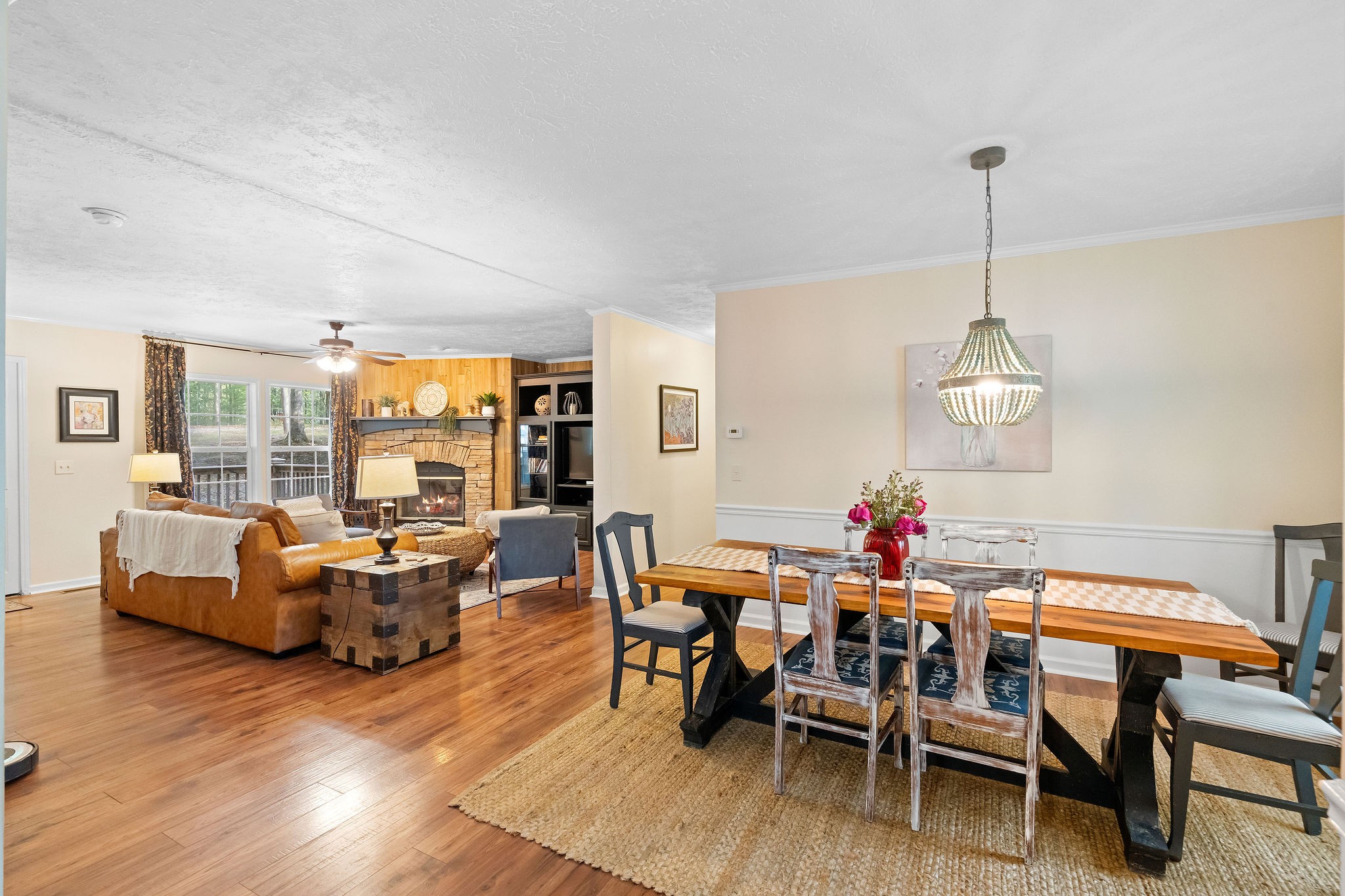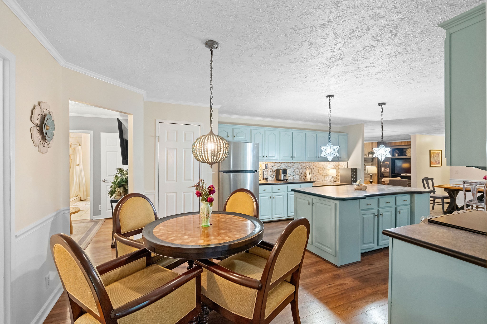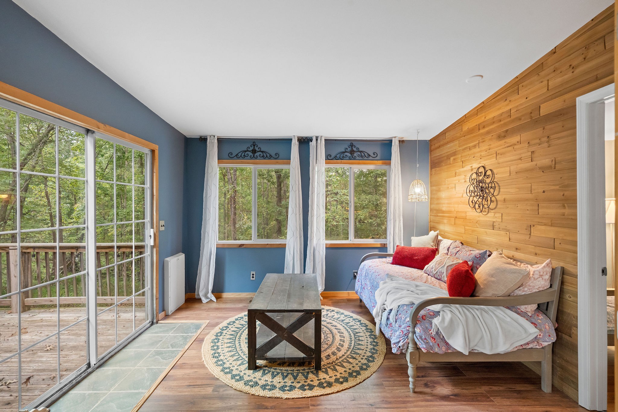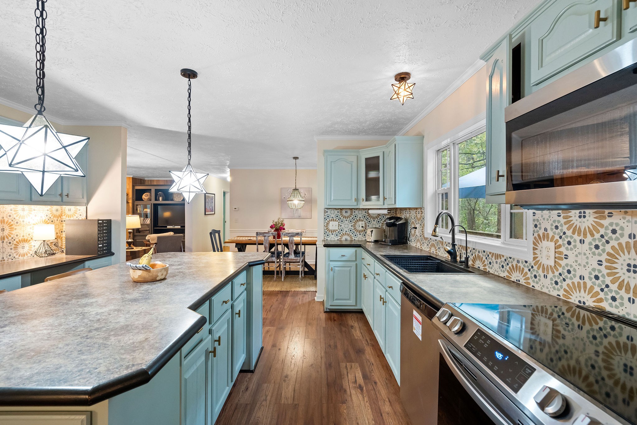 Nestled on a serene wooded lot, this Kingston Springs gem embodies laid-back Bohemian style with charming details that instantly feel like home. From the moment you step inside, you’re greeted by vibrant tile accents and an effortless flow that makes each space both inviting and functional. The thoughtfully designed layout offers privacy and comfort with the primary suite tucked away on its own side of the house, featuring a spa-like bath with a huge walk-in shower. Across the home, two additional bedrooms provide the perfect retreat for family, guests, or creative spaces. At the heart of the home, the large kitchen steals the show—complete with a massive island, two seating areas, and seamless connection to a cozy sunroom that fills the space with light. Whether you’re sipping morning coffee, gathering with friends, or preparing a feast, this kitchen is built for both comfort and connection.Every corner exudes warmth and charm, offering a sense of ease and coziness that makes you want to linger. The natural setting adds to the magic, with the wooded backdrop giving you privacy, tranquility, and a touch of everyday retreat living.