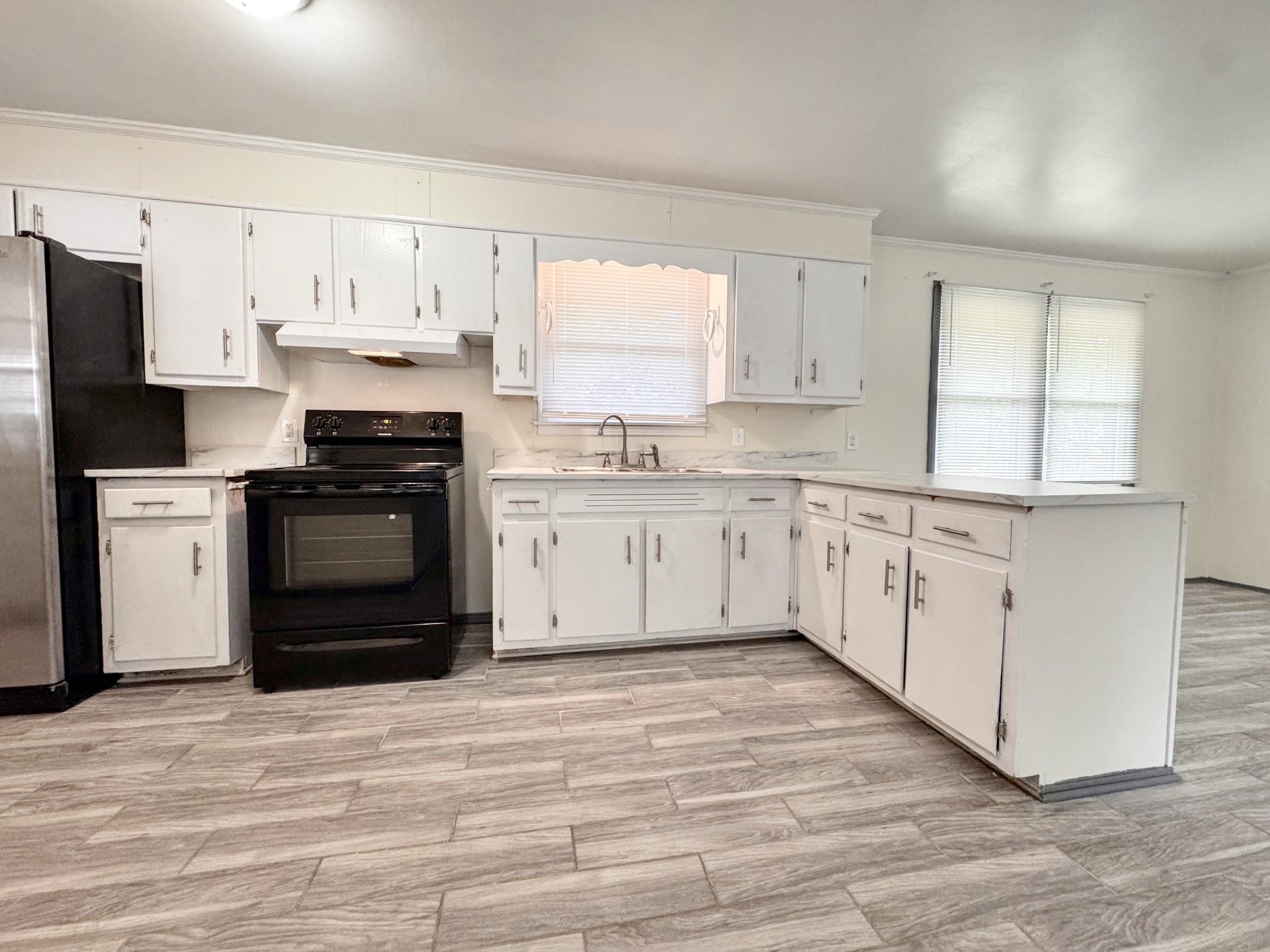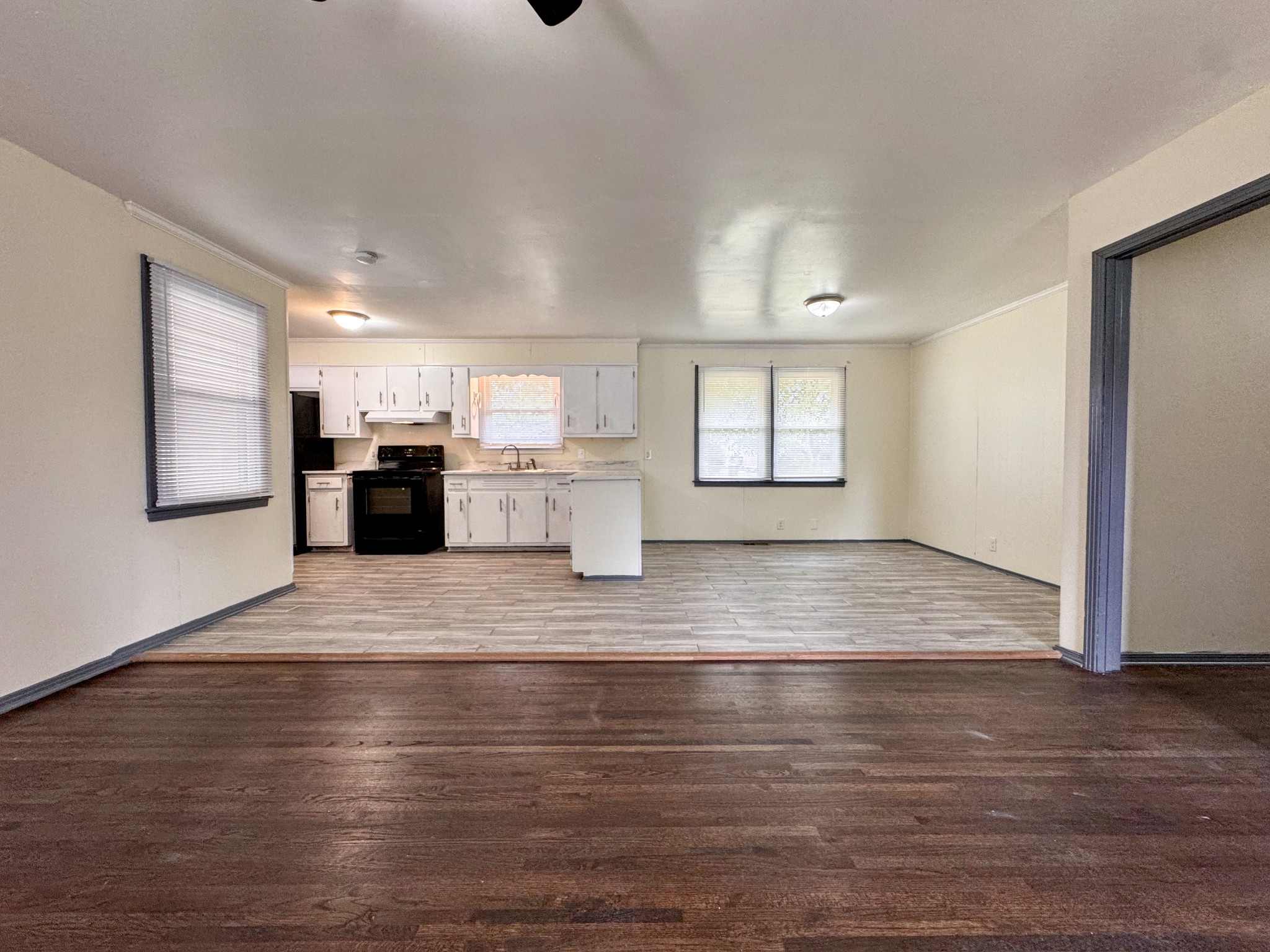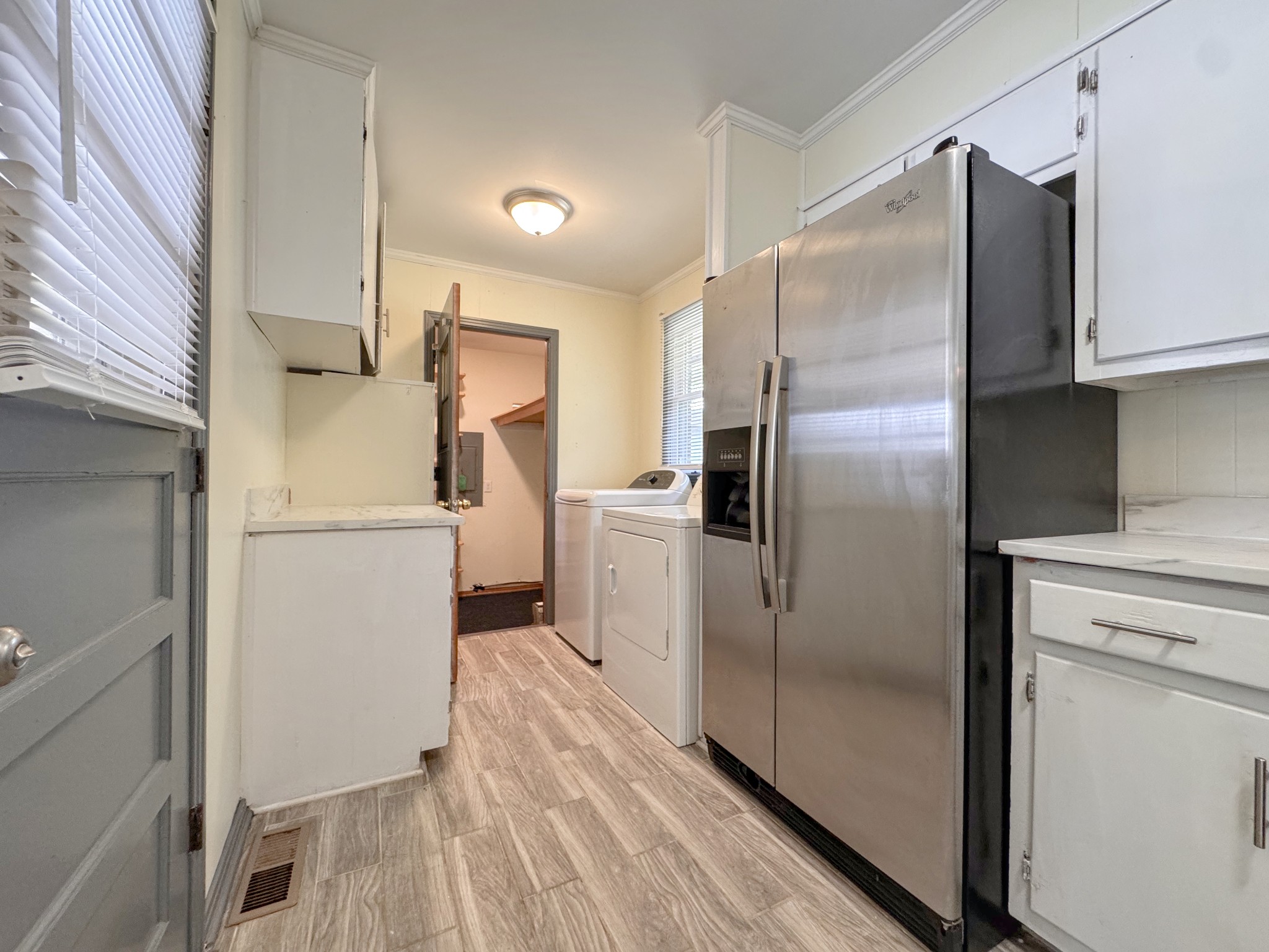 Welcome to this charming 3-bedroom, 1.5-bath home offering comfort, convenience, and plenty of room to enjoy. Inside, the open floor plan and solid-surface flooring throughout create a bright, easy-to-maintain space. The kitchen is light-filled and inviting, complemented by a handy storage/pantry room for keeping everything neatly organized. A washer and dryer are included for your convenience, making everyday living a breeze.