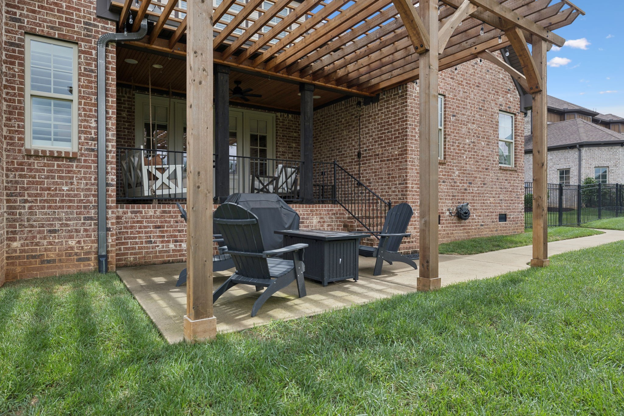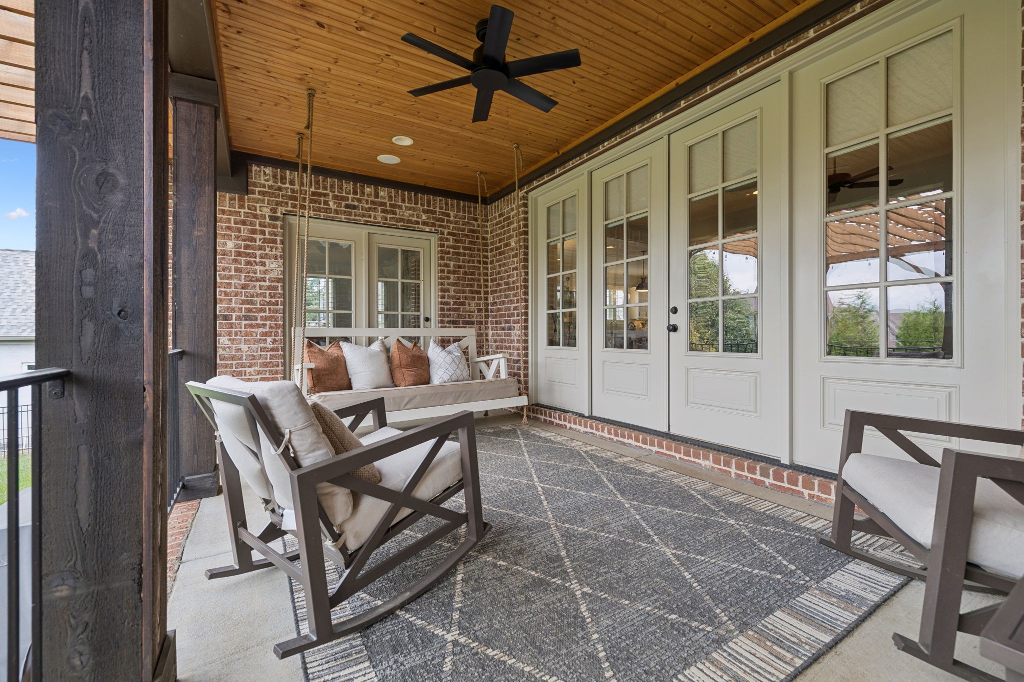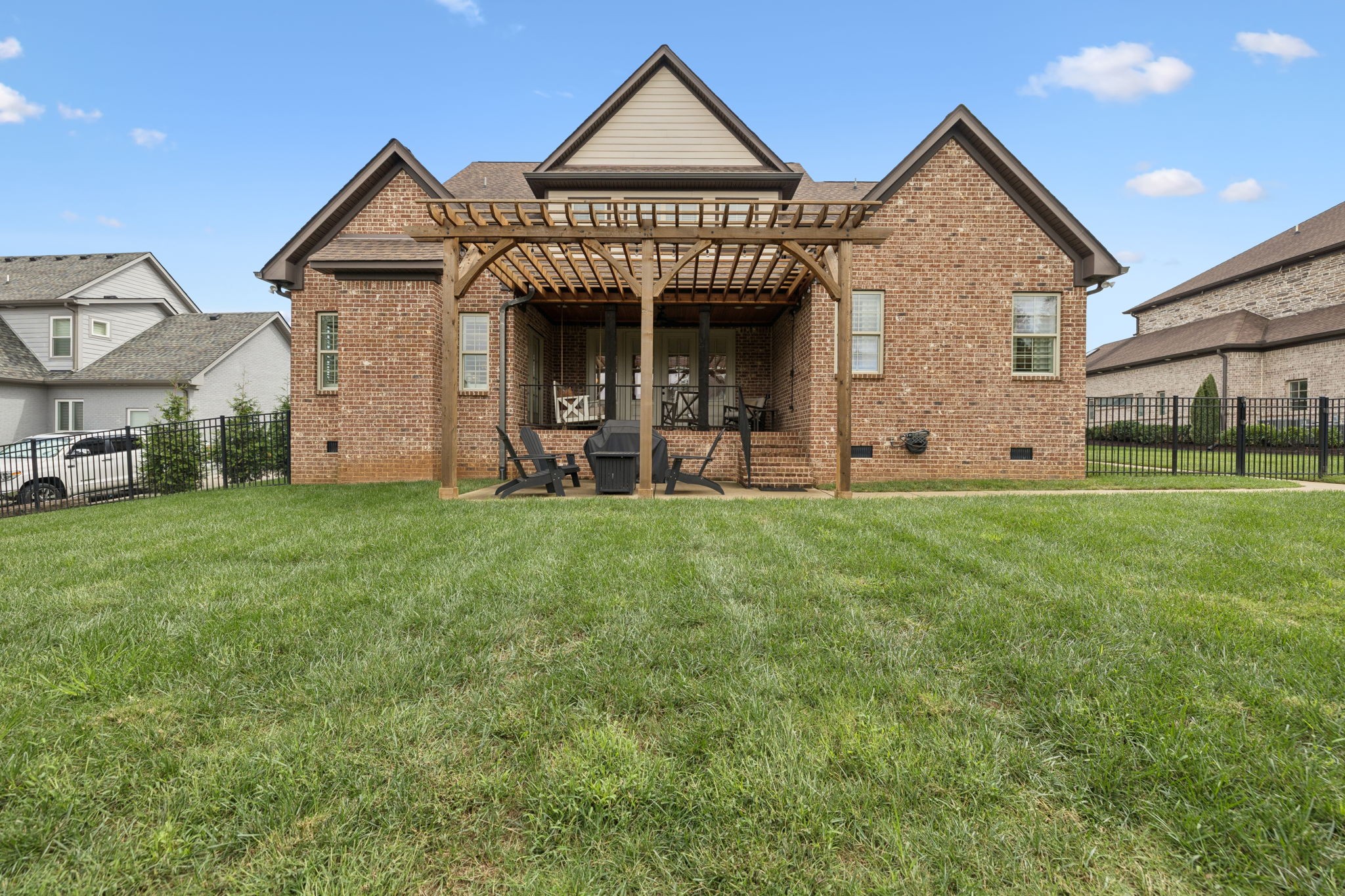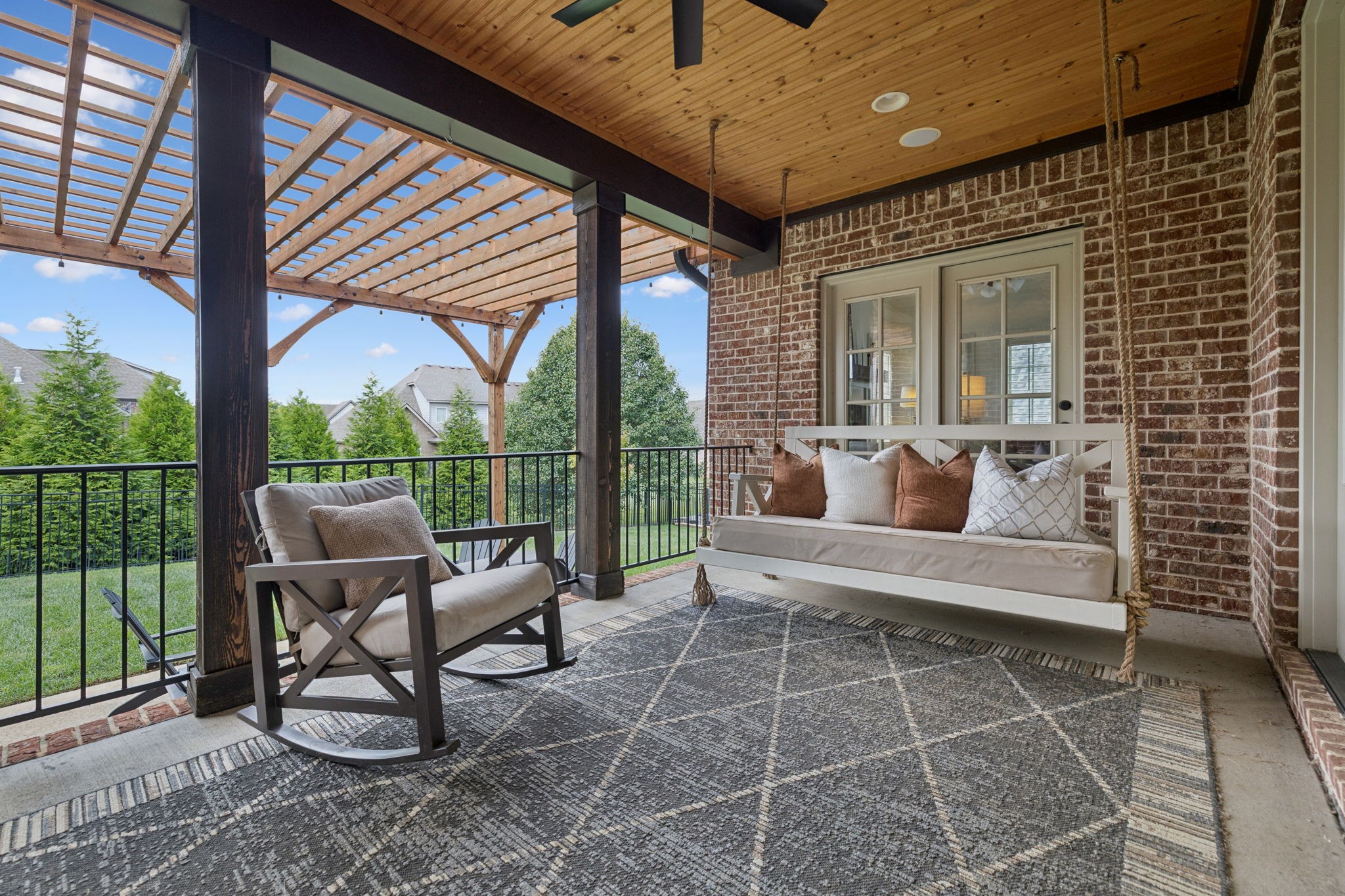 Upstairs, you will find three additional large bedrooms with two full baths (one being a Jack & Jill bath!), and TWO bonus rooms~ideal for movie night, game days, or working from home. Relax on your covered patio while swinging on your custom bed swing and enjoying the peace and quiet of your private fenced in back yard.