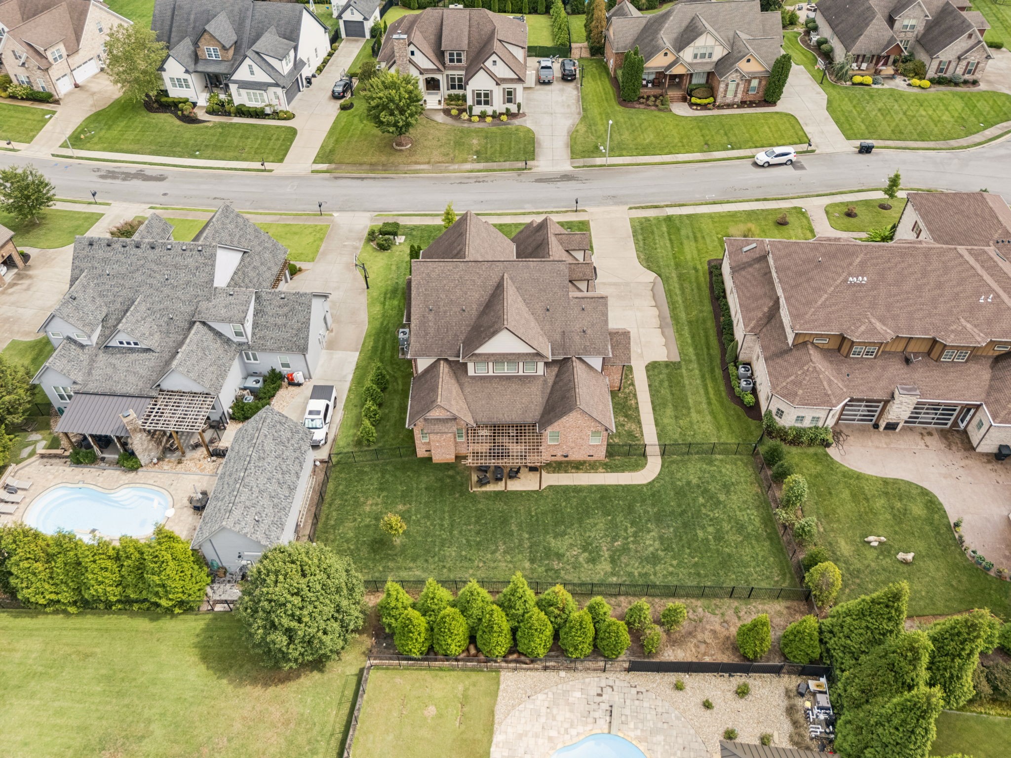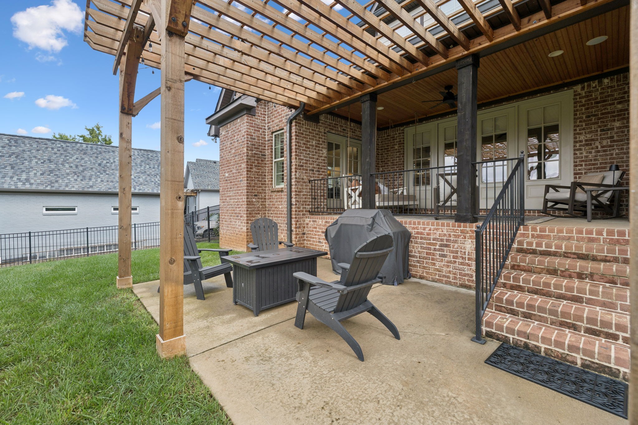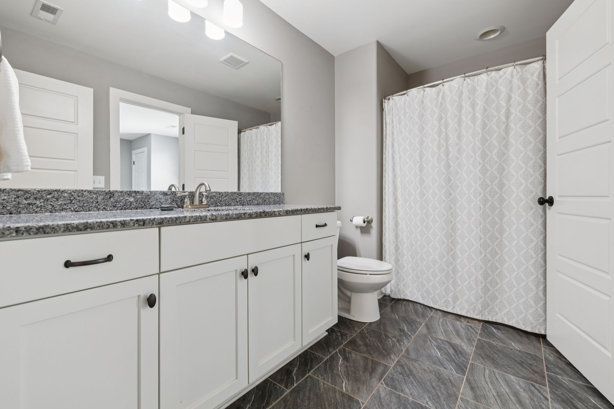 Upstairs, you will find three additional large bedrooms with two full baths (one being a Jack & Jill bath!), and TWO bonus rooms~ideal for movie night, game days, or working from home. Relax on your covered patio while swinging on your custom bed swing and enjoying the peace and quiet of your private fenced in back yard.