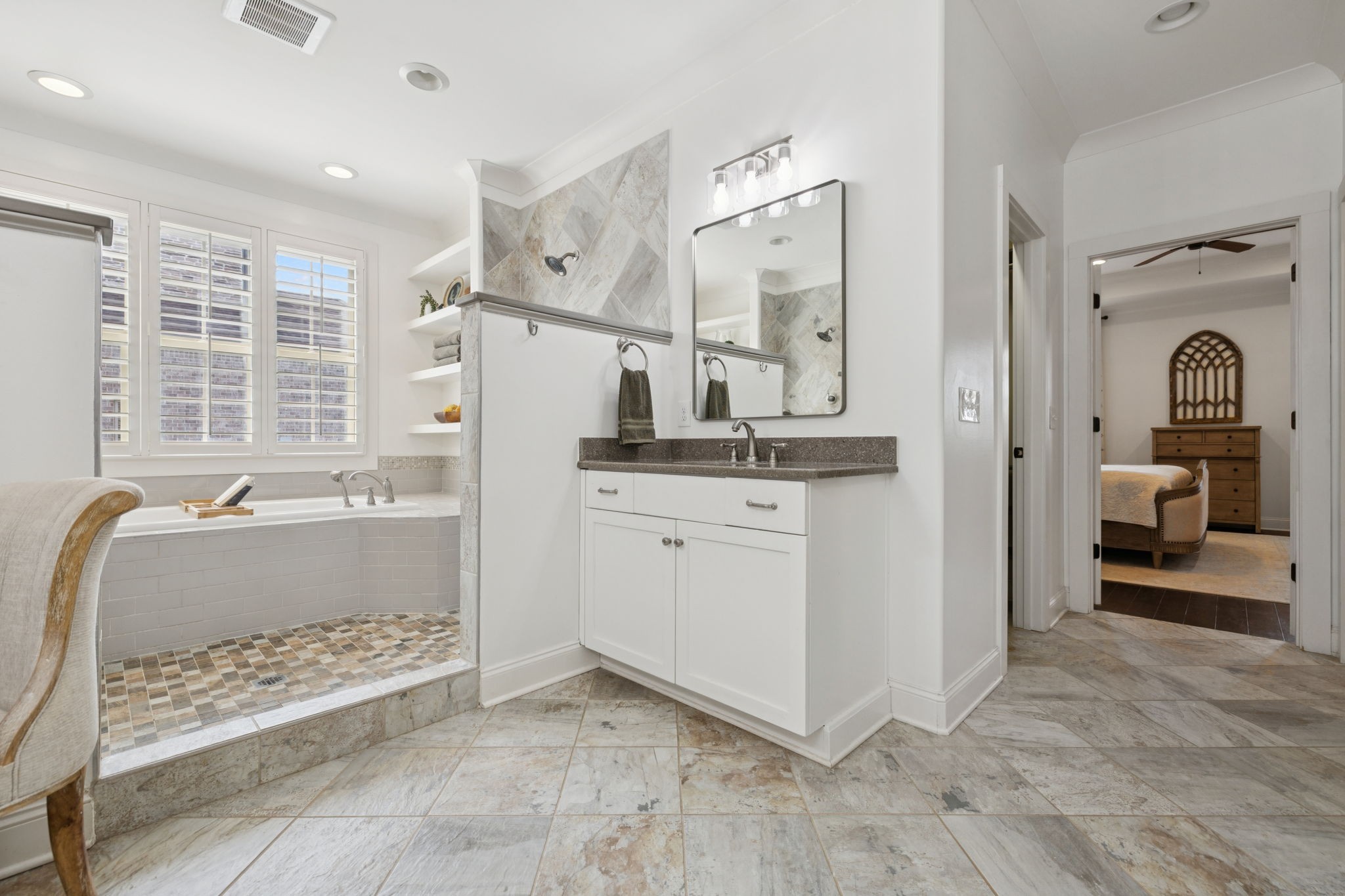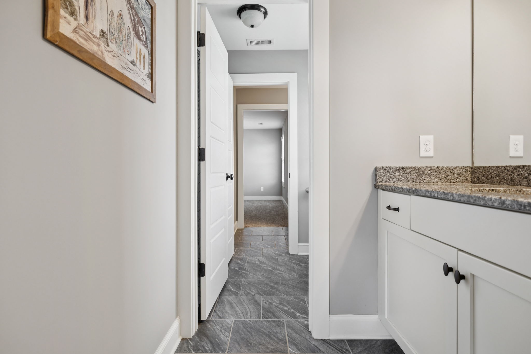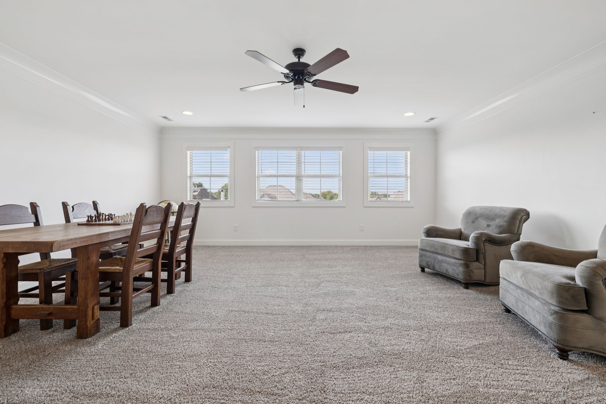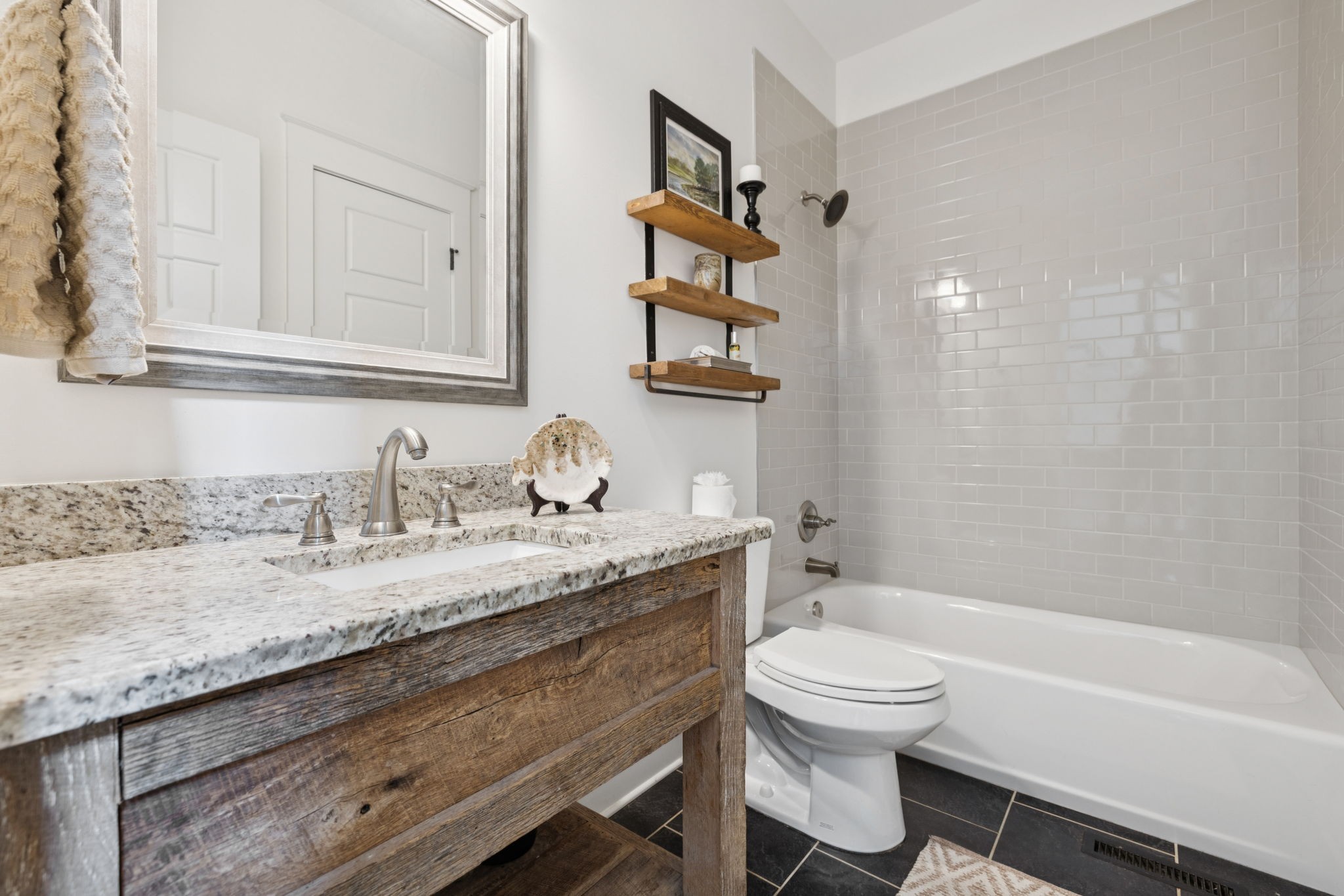 Upstairs, you will find three additional large bedrooms with two full baths (one being a Jack & Jill bath!), and TWO bonus rooms~ideal for movie night, game days, or working from home. Relax on your covered patio while swinging on your custom bed swing and enjoying the peace and quiet of your private fenced in back yard.