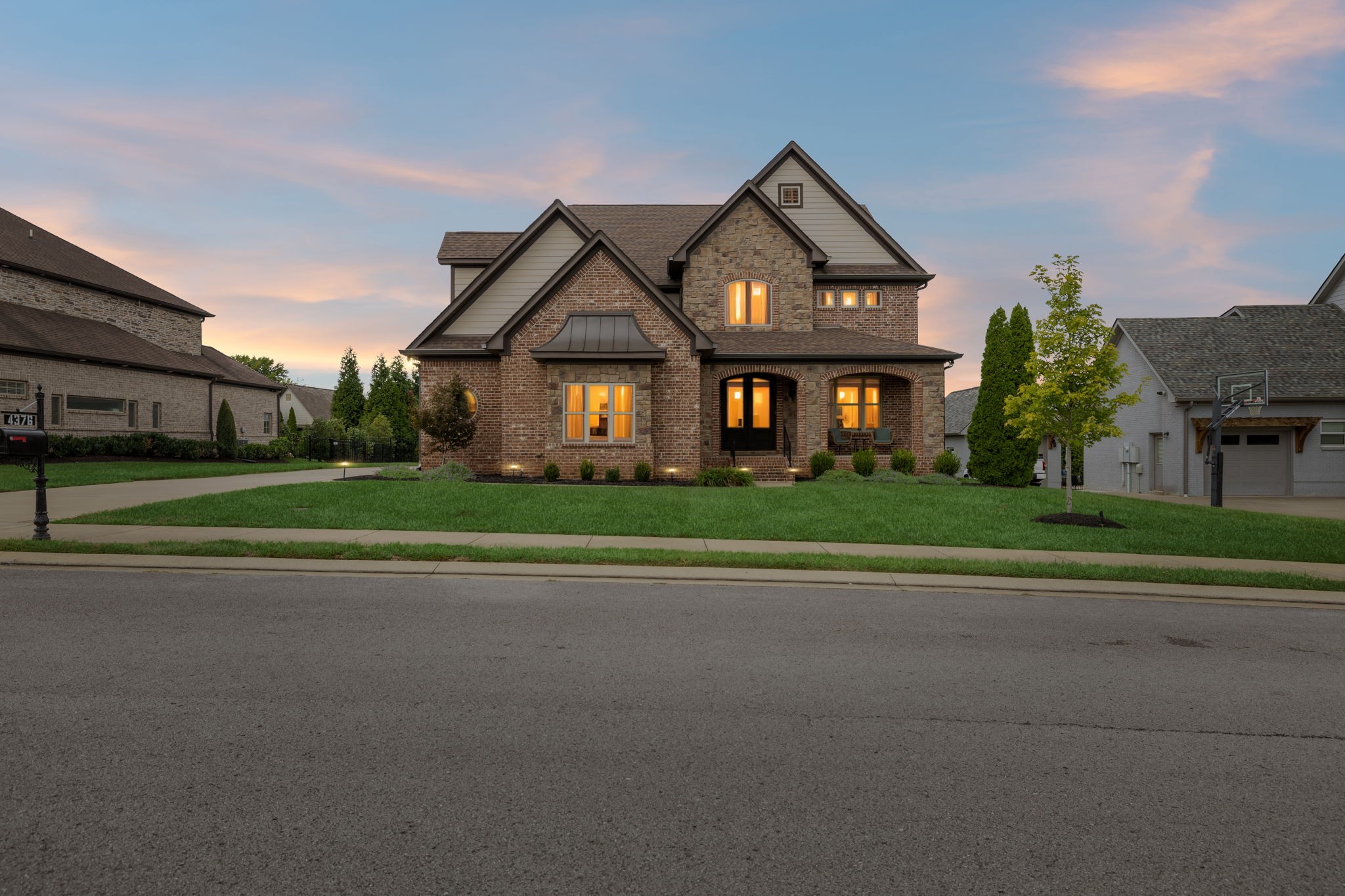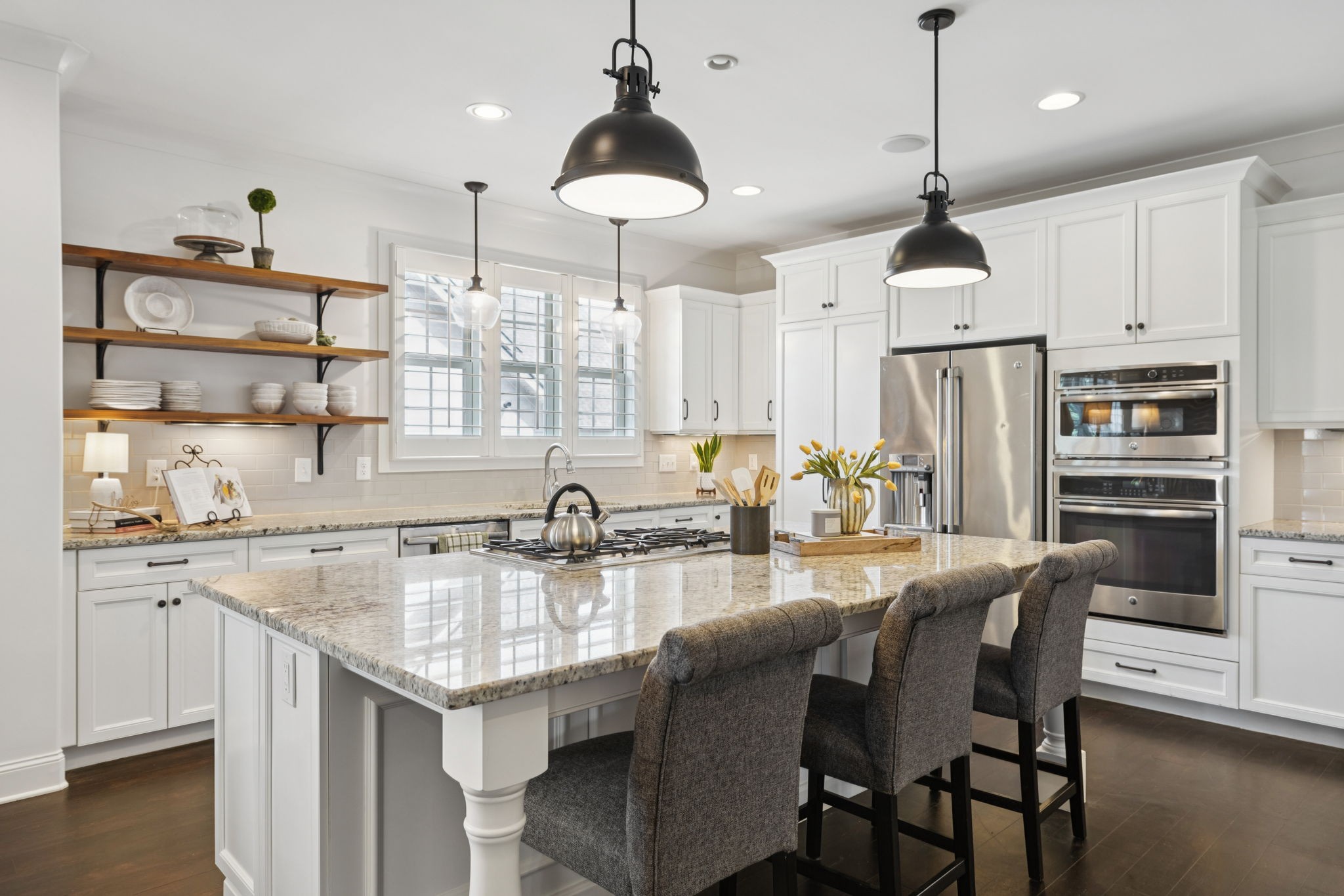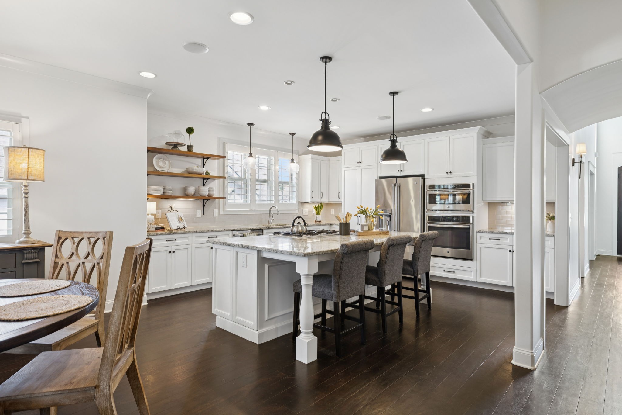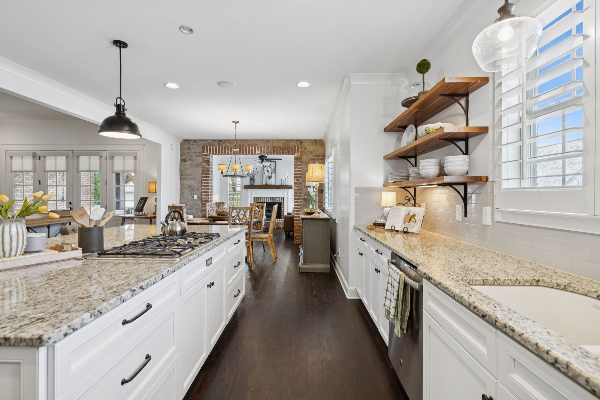 Entertainer's dream in the coveted Puckett Station community! Offering 4196 sq. ft. of living space, this 4/BR, 4/BA home combines elegance with everyday comfort. The open floor plan features a spacious living room with fireplace, a hearth-room with fireplace, a chef's kitchen with gas cooktop, oversized island, hidden pantry, and an eat in dining room. Enjoy your primary suite on the main level with his and her closets, and a spa-like bath with double vanities and dual shower heads in your super shower!