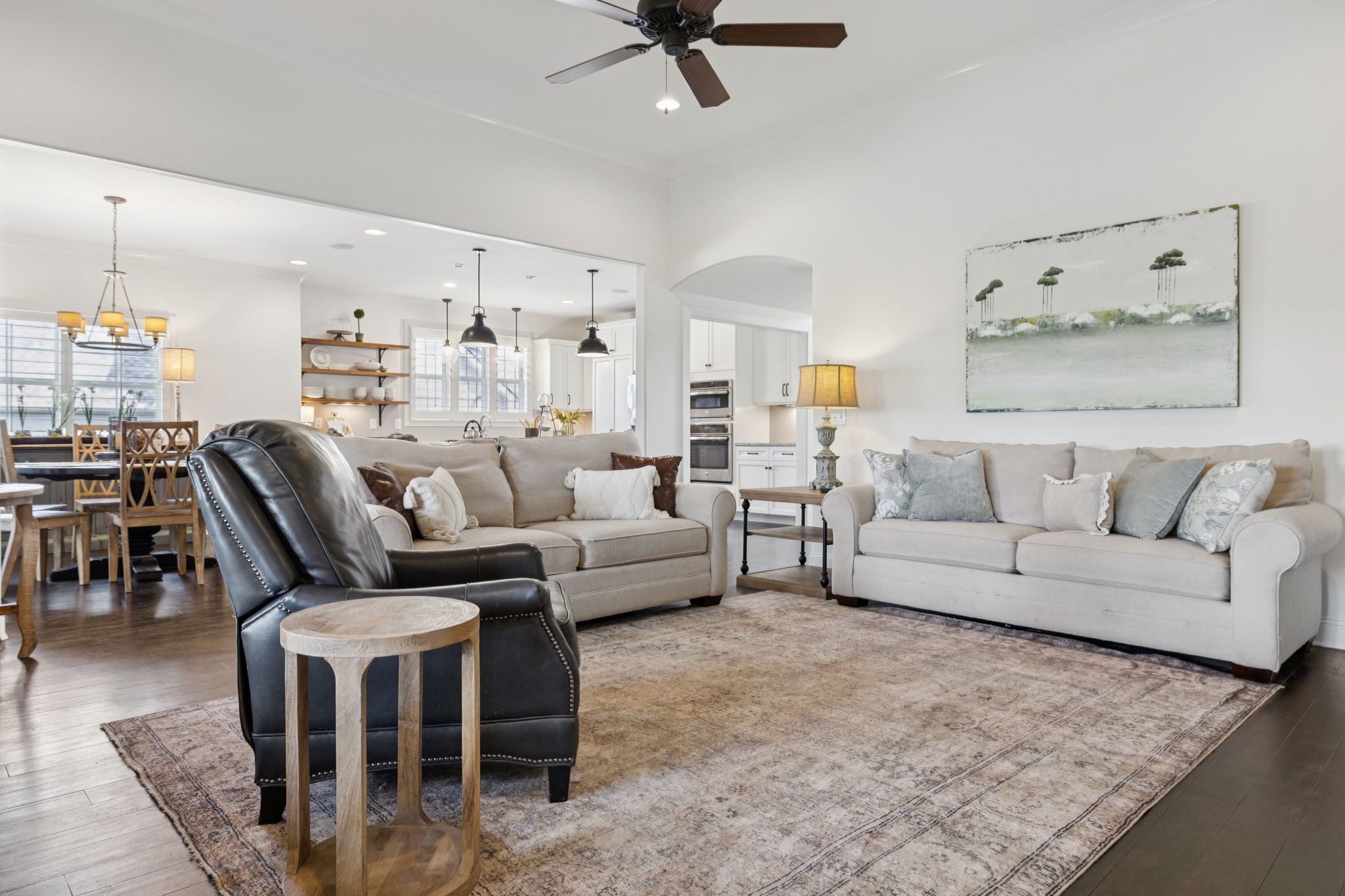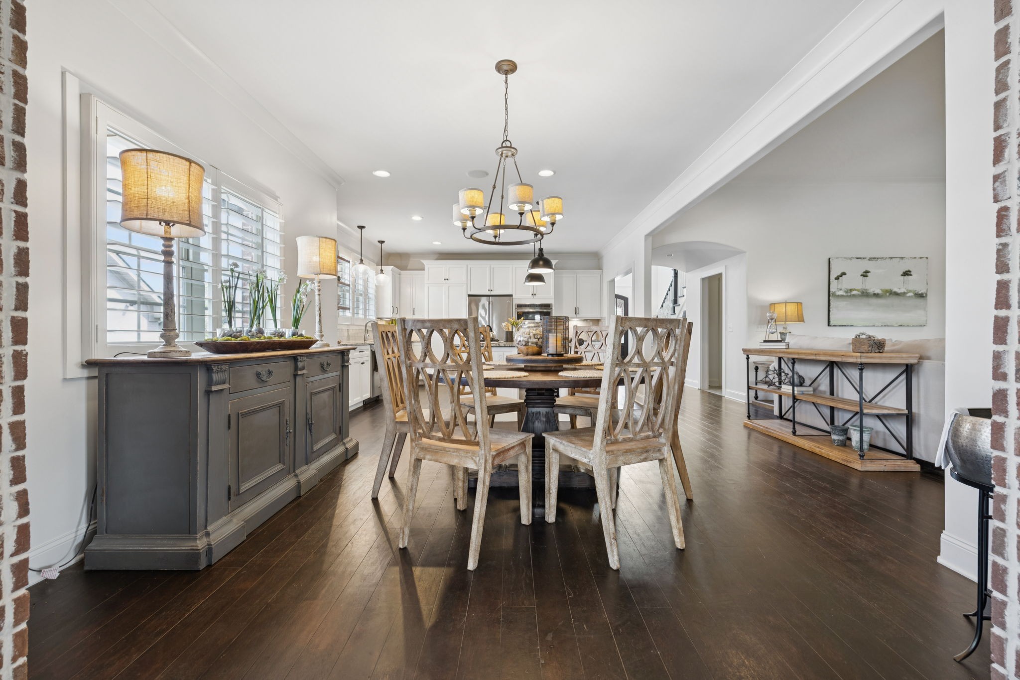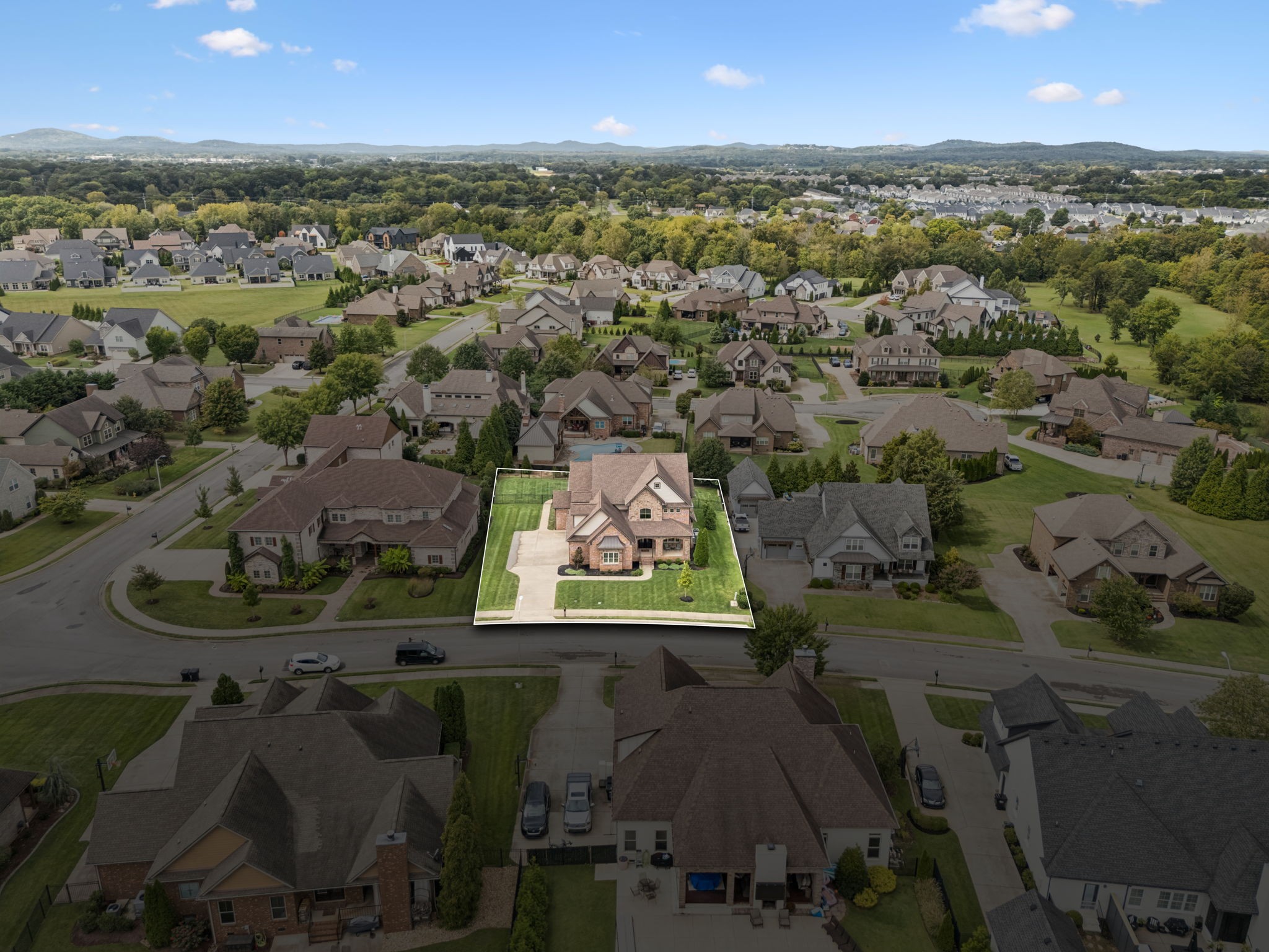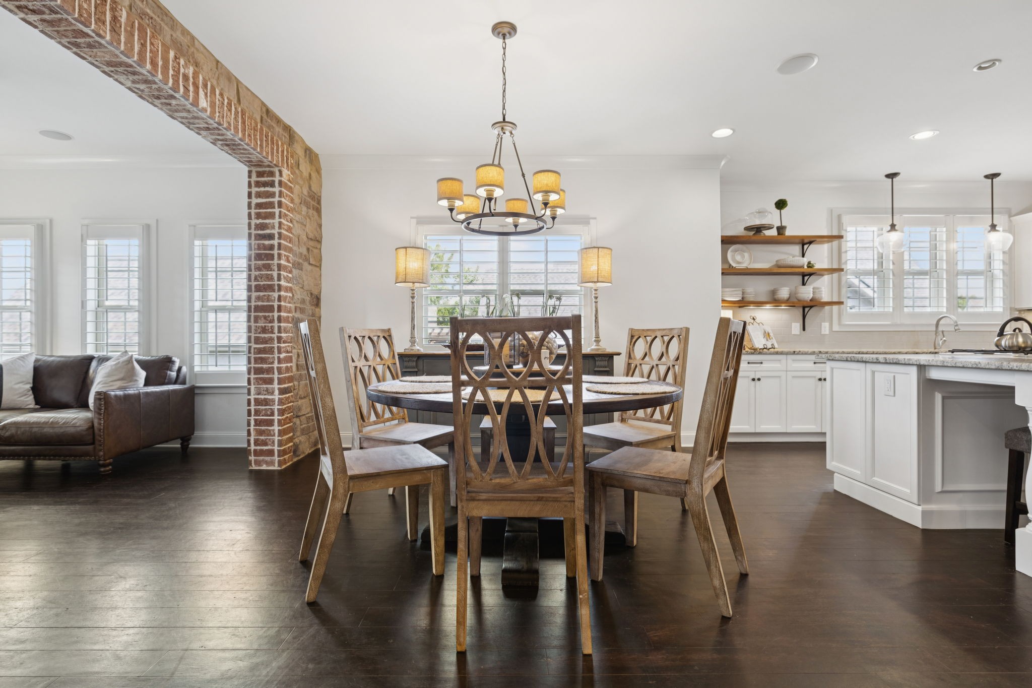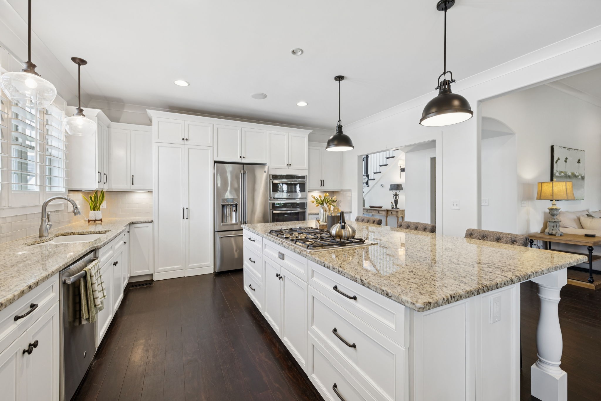 Entertainer's dream in the coveted Puckett Station community! Offering 4196 sq. ft. of living space, this 4/BR, 4/BA home combines elegance with everyday comfort. The open floor plan features a spacious living room with fireplace, a hearth-room with fireplace, a chef's kitchen with gas cooktop, oversized island, hidden pantry, and an eat in dining room. Enjoy your primary suite on the main level with his and her closets, and a spa-like bath with double vanities and dual shower heads in your super shower!