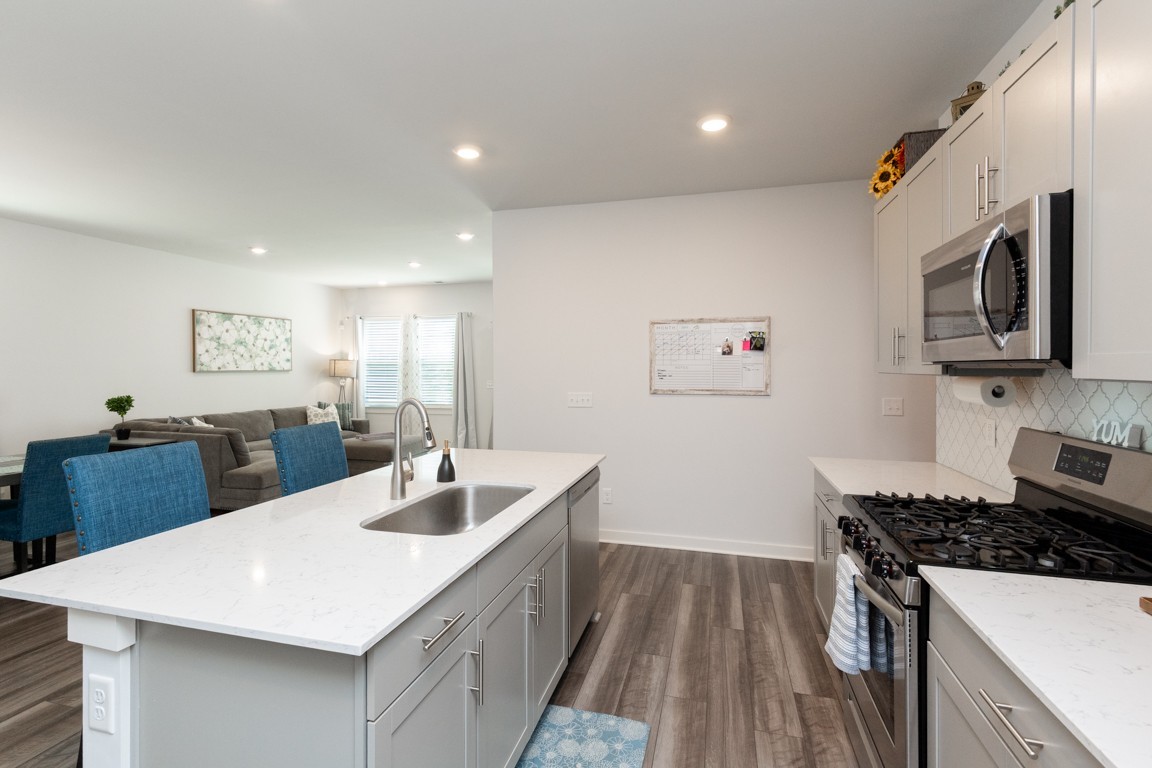 Motivated Sellers.... This Ironwood floor plan is like new with a very flexible floorplan. 5 Bedrooms and 3 full baths offers your family a very spacious home. Featuring an open concept kitchen, a large island with overhang for seating, shaker style cabinetry, quartz countertop, stainless steel kitchen appliances, a great pantry and also includes a gas range. LVP flooring for easy cleaning throughout main living areas, bathrooms, and laundry. Large primary suite includes an oversized shower with glass shower door, quartz countertop, double vanity, and extra-large walk-in closet. In addition, three more large bedrooms and a loft for additional family space. The first floor features a bedroom/office/flex room, full bath plus an open concept great room, dining room and kitchen, great for entertaining. The back yard is fenced for your fur babies and offers a gazebo style covered patio. The wood swing to remain. This highly desirable community offers a playground and walking distance to the pool. Shelving in garage and work bench, kitchen refrigerator, Washer & Dry to remain. Conveniently located just minutes to your favorite restaurants, shopping, the Lebanon town square and great health care. Only 30 minutes to Nashville airport. Don’t miss the opportunity to make this dream home yours, call for your private showing today.