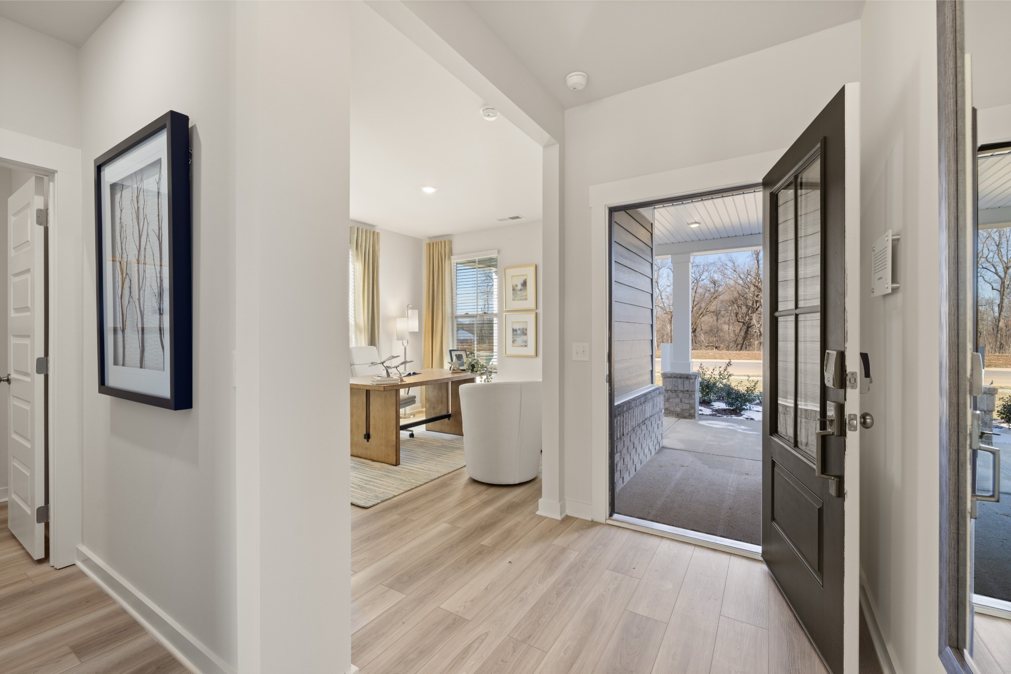 LOT #28 - Edinburgh. Past the welcoming front porch of this new two-story home, there is a practical study well-suited for those work-from-home days. At the back is a free-flowing open layout shared among a fully equipped modern kitchen, a dining room and a family room. Residing upstairs is a versatile loft surrounded by all four bedrooms, including the tranquil owner’s suite with an attached bathroom and walk-in closet. *Images from a furnished model of this home. Actual configuration and features may vary.