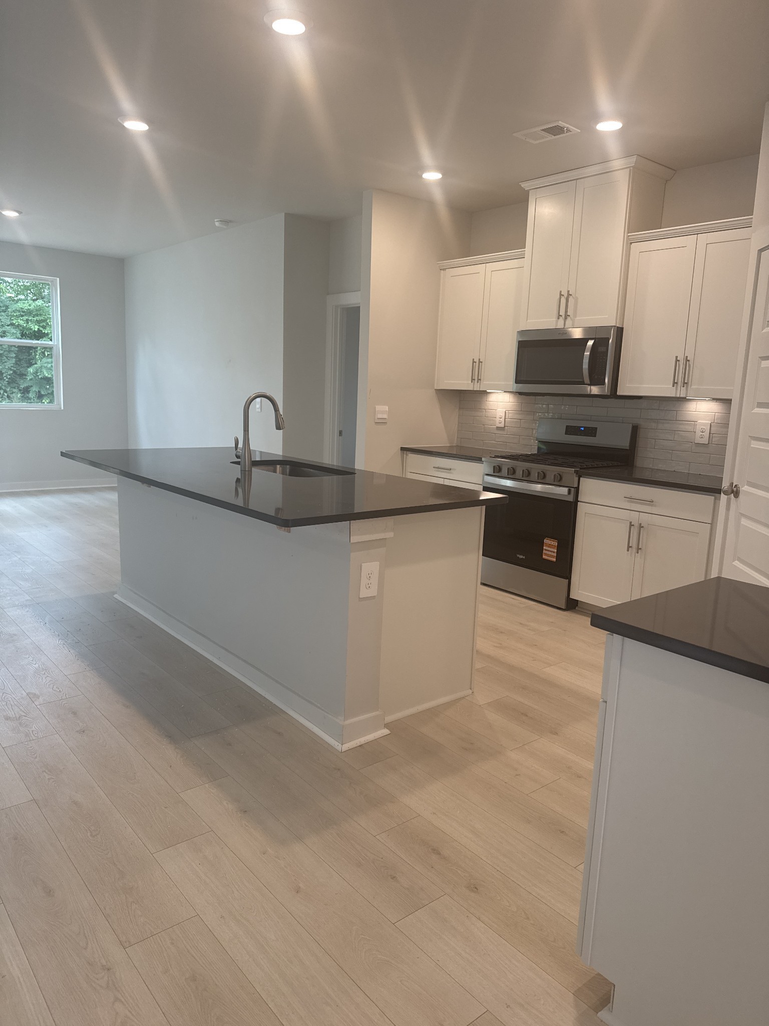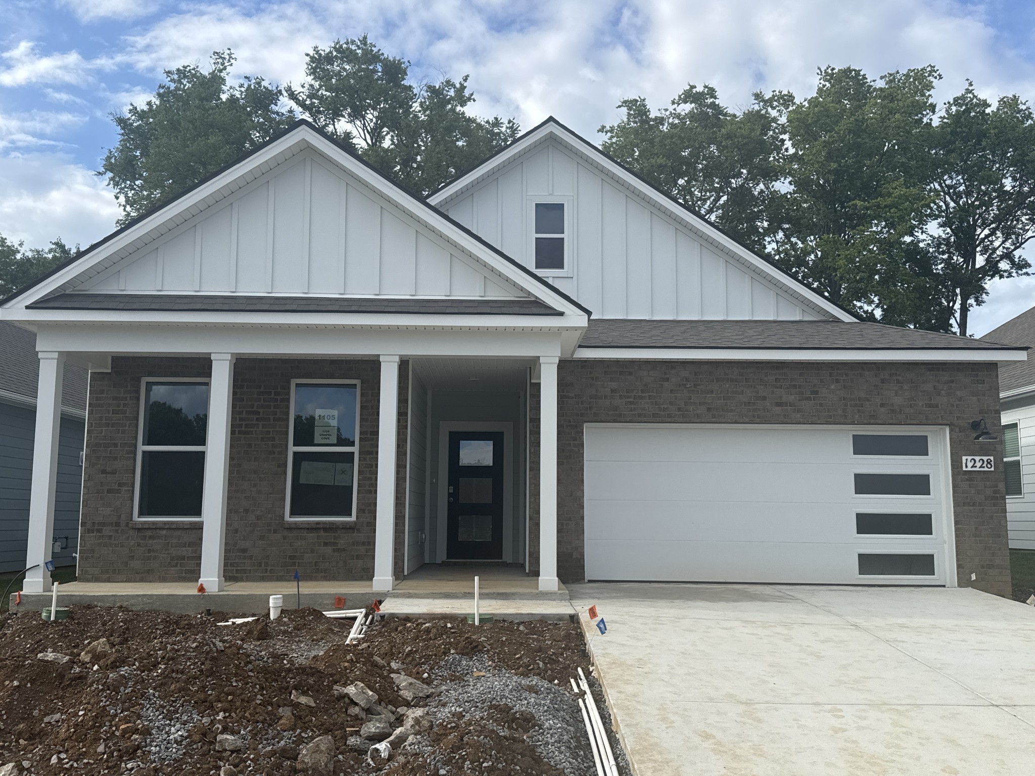 Welcome to the Bristol, a stunning new construction home in the 55+ Nexus South community of Gallatin, Tennessee. This modern, single-story residence offers an open floor plan with soaring 9’ ceilings, creating a spacious and inviting feel across 1,672 sq ft. The home includes 3 comfortable bedrooms, 2 elegant bathrooms, and a 2-car garage. Entering through the foyer, you’ll find a large living area flowing seamlessly into the dining room and kitchen. The kitchen features modern appliances, a generous pantry, and an off-valet space for added organization. The adjacent dining area opens to a covered porch, perfect for outdoor meals and entertaining. The master suite is a private retreat with a walk-in closet and a luxurious ensuite bathroom boasting dual vanities and a seating area. Two additional spacious bedrooms share a well-appointed bathroom. A dedicated laundry room adds convenience.