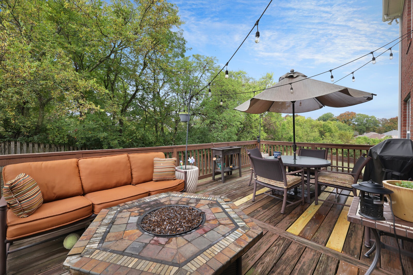 Step outside to enjoy your private backyard oasis. A large deck with string lighting and space for both dining and lounging overlooks the fully fenced yard, perfect for kids, pets, and outdoor fun. Keep an eye out for the friendly family of deer that often visits the neighborhood, adding to the peaceful, natural setting.