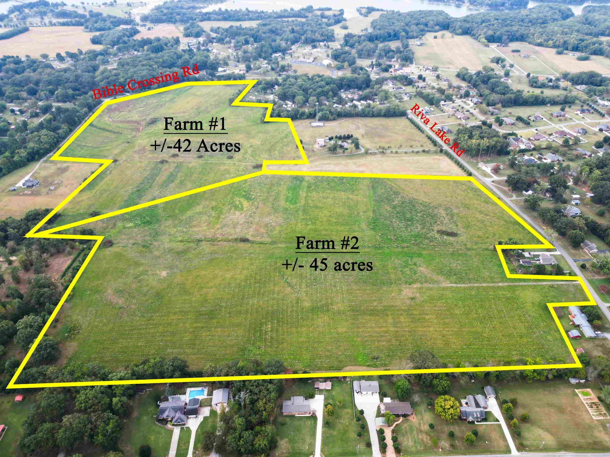 AT AUCTION! SATURDAY, OCTOBER 25TH @ 10AM. A rare opportunity to own a true gentlemen’s farm in the heart of Winchester, TN! Located just 2 miles from Wicnhester City Park, Tims Ford Lake, and the Downtown Winchester Square. This scenic farm, formerly known as the Crimson Dale Nursery owned by the Hawkersmith family, was once next in line to be turned into a residential housing development. Today, it offers a unique chance to preserve and enjoy a beautiful piece of Winchester’s history. The farm will be offered in two tracts: - Farm #1 – 42± Acres: Fronts Bible Crossing Road. - Farm #2 – 45± Acres: Fronts Riva Lake Road. Each tract is approved for one home, creating the perfect setting for a private country estate or gentleman’s farm. The property is protected by a conservation easement, ensuring its natural beauty will be preserved for generations to come. No need to worry about whether or not your neighbor’s property is going to be developed into a subdivision! This property offers a rare blend of privacy, convenience, and natural beauty — perfect for recreation, livestock, or simply building your dream home just minutes from all that Winchester and Tims Ford Lake have to offer. *BID LIVE ONSITE DAY OF SALE OR BID ONLINE*