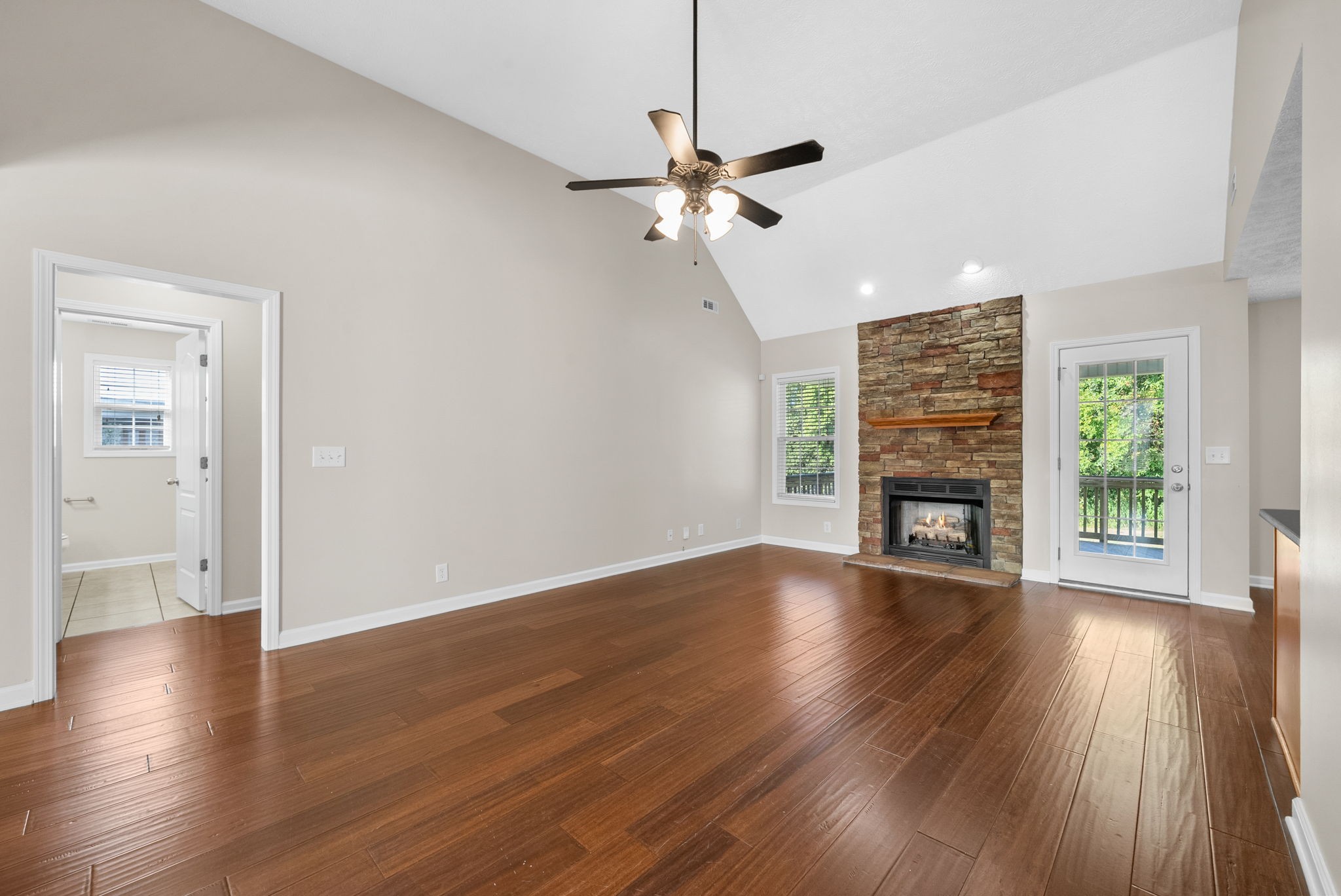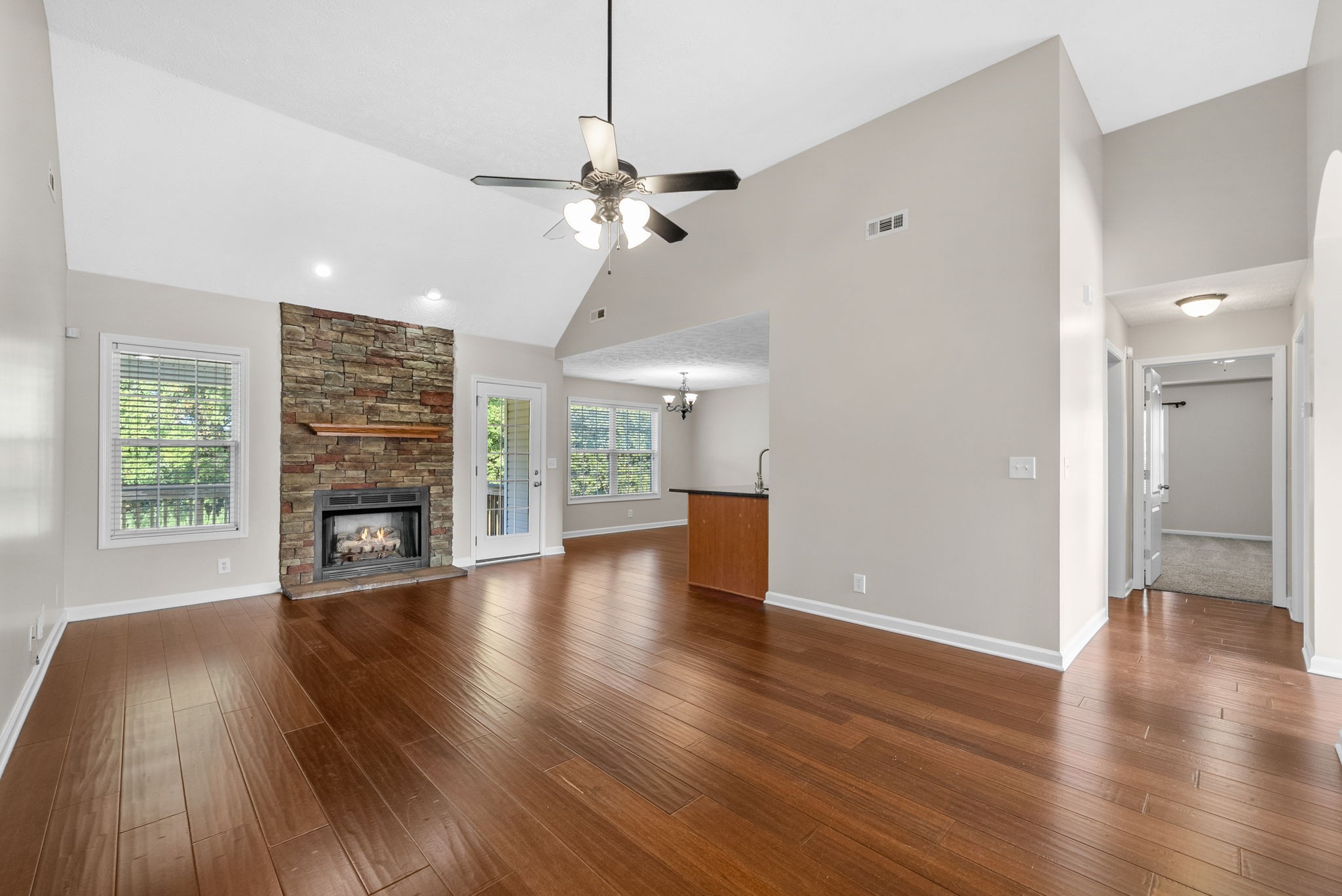 Beautiful home in Riverbend Landing ~ If you have been looking for a move in ready home with the feel of the country but close to everything in town - here it is! This home offers a split floor plan with all bedrooms on the main level plus a HUGE bonus room with a full bathroom that could be a 4th bedroom ~ Kitchen with granite counters, SS Appliances and breakfast nook ~ Formal dining with wainscoting ~ Living room with soaring ceilings and stone fireplace ~ Primary suite offers tray ceilings, great natural light, 2 walk in closets, double vanities with quartz countertops and jetted tub ~ The covered deck with no backyard neighbors offers a peaceful retreat ~ Home has new carpet and has been freshly painted ~ 2 Car Garage ~ Great location close to I-24, shopping and Rossview schools ~ Call to schedule a showing