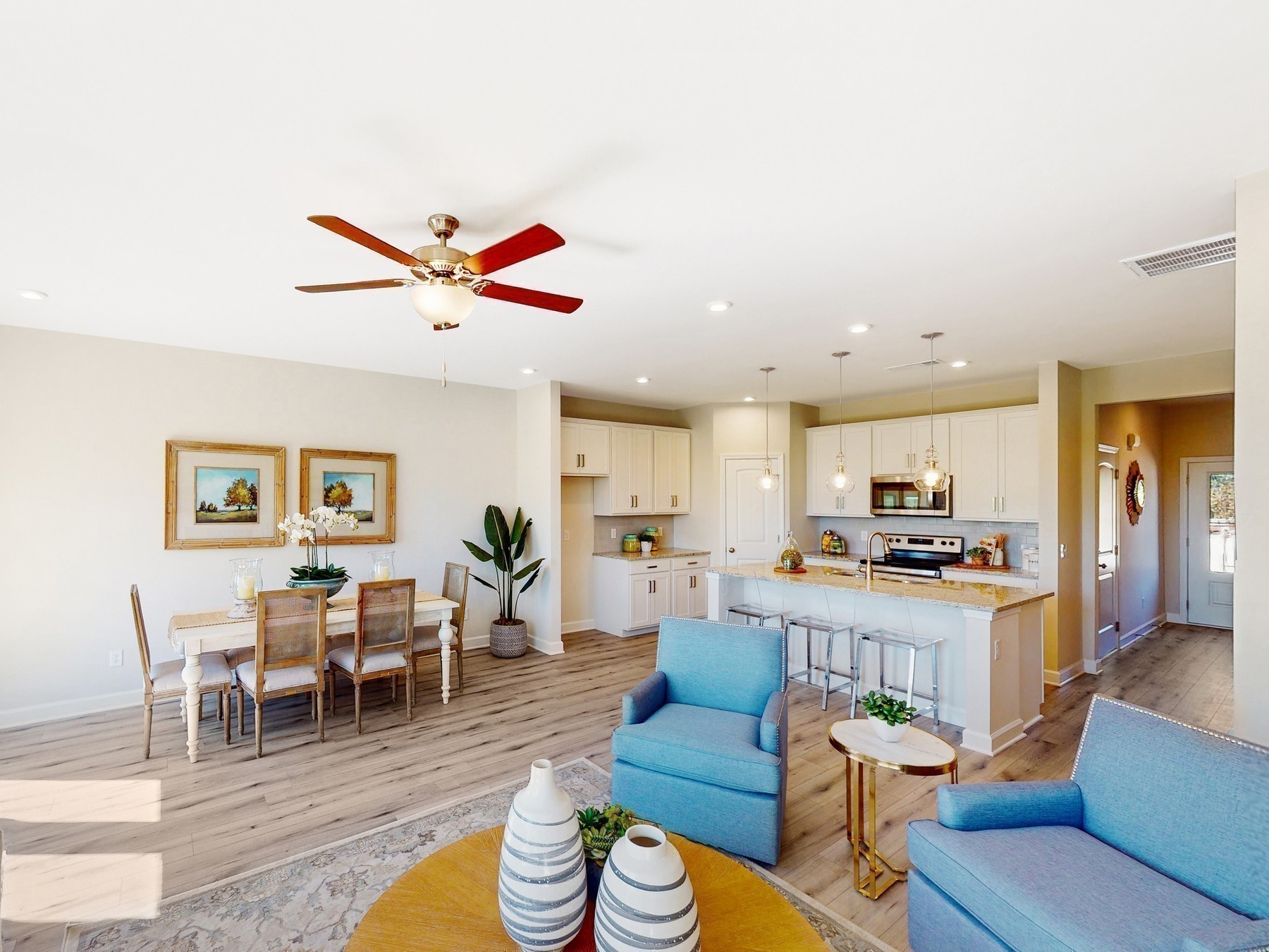 New Townhouse community built in 2023. This unit is immaculate, never having pets or any type of smoking. Open floorpan, lots of natural light, private tree-lined back yard with private patio, granite countertops, large kitchen island with room for barstools, stainless steel appliances, walk-in pantry, lots of cabinet storage, modern light fixtures and hardware, tile backsplash, 1/2 bath and extra storage downstairs, double vanities in both upstairs full-baths. All bedrooms and laundry room are upstairs, large closets in all bedrooms. One car garage with opener. Tenant is not responsible for Lawncare, landscaping or irrigation. NO PETS - NO SMOKING - NO VAPING. $50 application fee and background check required for every adult living in the townhome. Call or text Kenny Stephens 615-207-2228 for showing and/or applications.