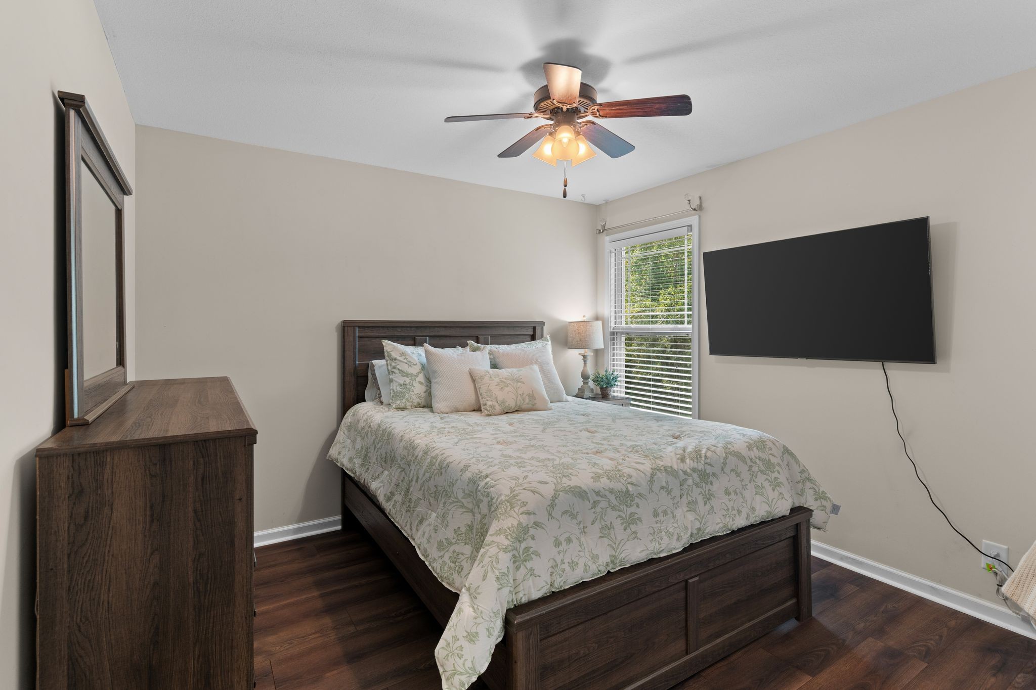 Welcome to this stunning 1,300+ sq ft home featuring 3 spacious bedrooms, nestled in a peaceful cul-de-sac that backs up to a densely wooded area. With a well designed open floor plan, ample storage, hardwood and tile throughout, this home is ideal for both everyday living as well as entertaining. Plus, you are just a few minutes from dining, shopping and groceries.