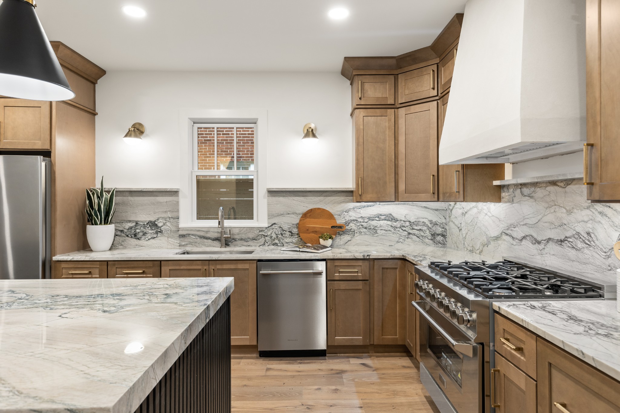- AppliancesDouble Oven, Gas Oven, Gas Range, Dishwasher, Refrigerator, Stainless Steel Appliance(s)