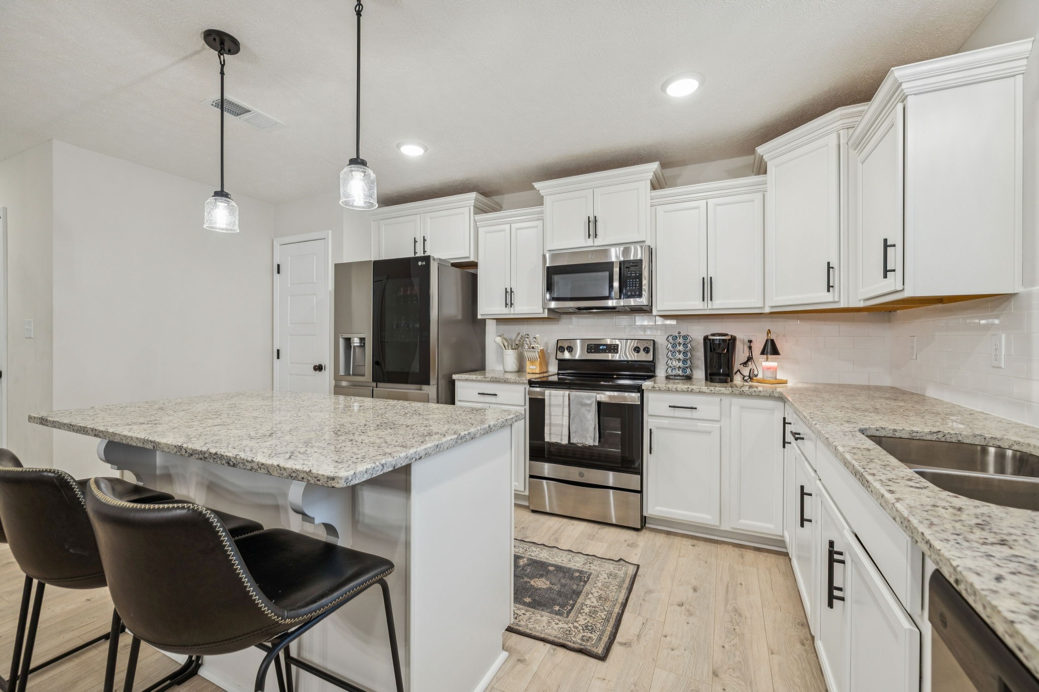 Inside, you’ll find a spacious two-story entry that opens to a huge living room, dining, and kitchen area with wonderful flow for entertaining. Natural light, high ceilings, and soothing paint colors create a spa-like feel that makes coming home the best part of your day. All four bedrooms, plus the laundry room, are thoughtfully situated upstairs. The oversized primary suite boasts a trey ceiling, double vanity, and a serene retreat atmosphere.