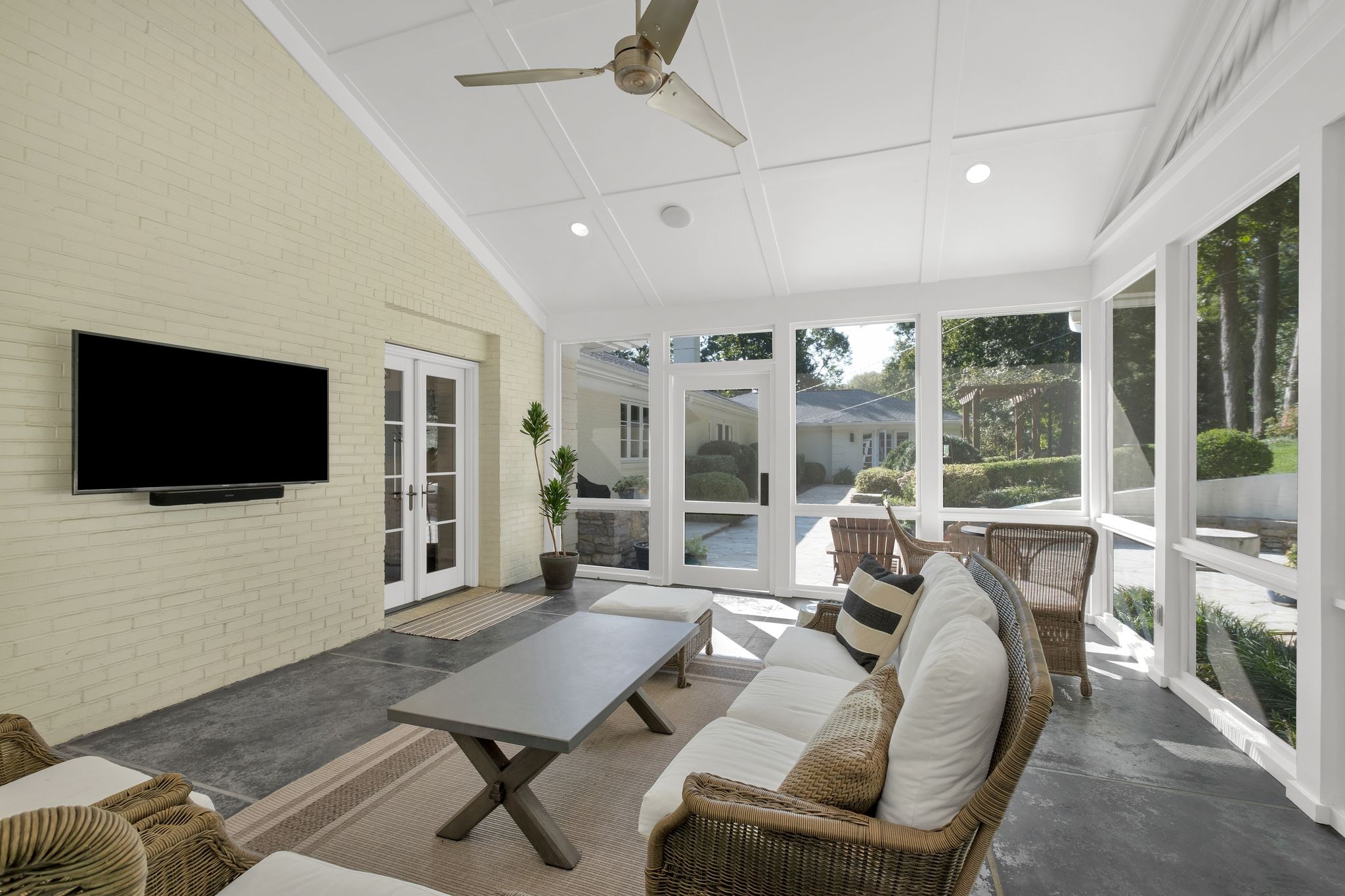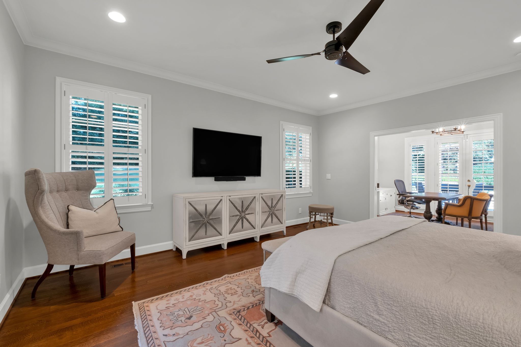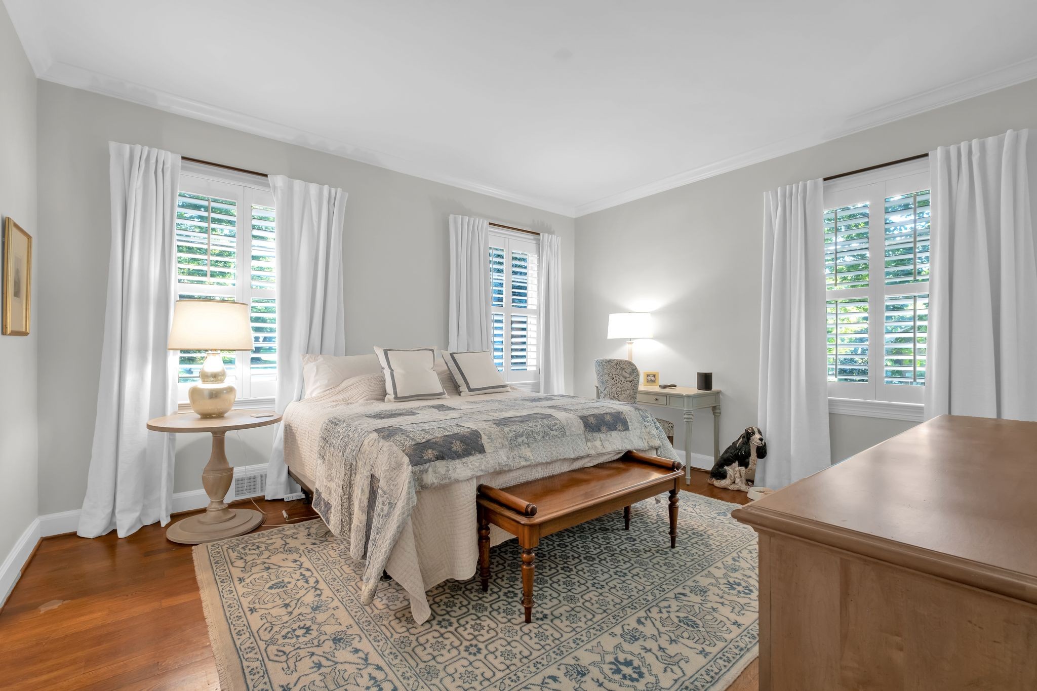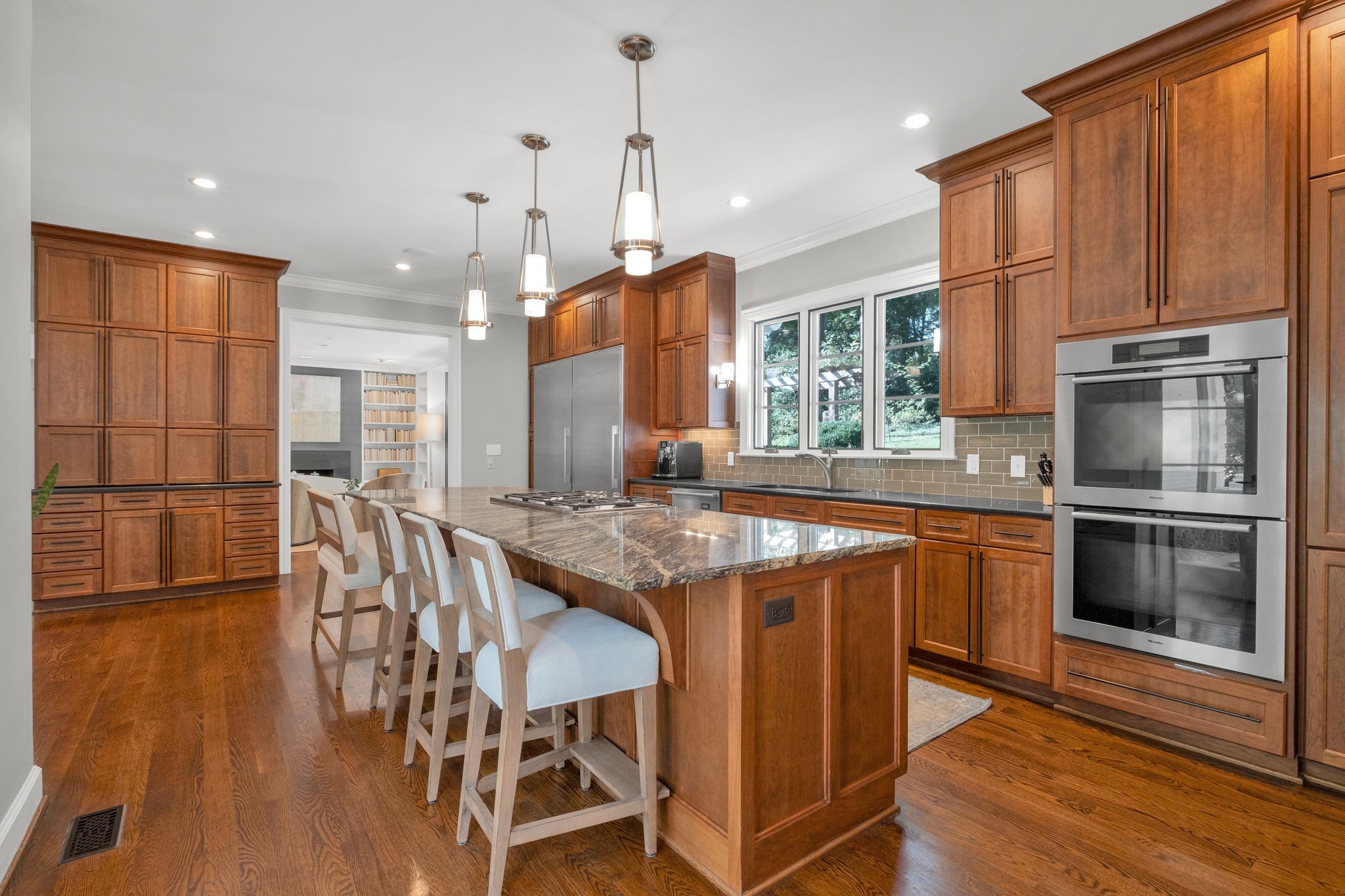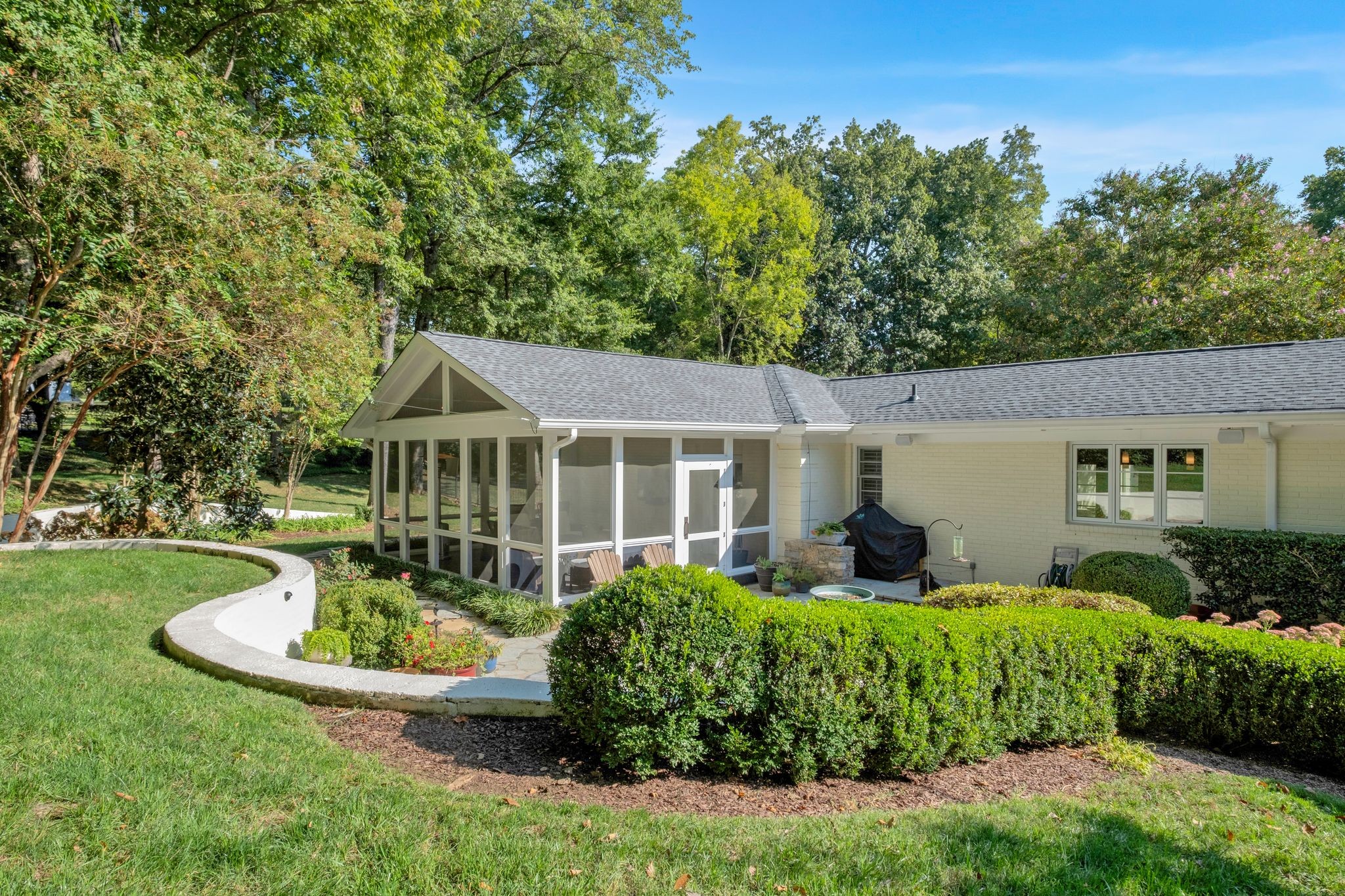 At the heart of the home, the renovated chef’s kitchen inspires both creativity and connection, outfitted with Miele appliances, including a gas cooktop, double ovens, and a Sub-Zero style refrigerator and freezer. Just beyond, a petite bonus room opens onto a screened-in porch (18x16)—an inviting space to enjoy morning coffee or evening breezes.