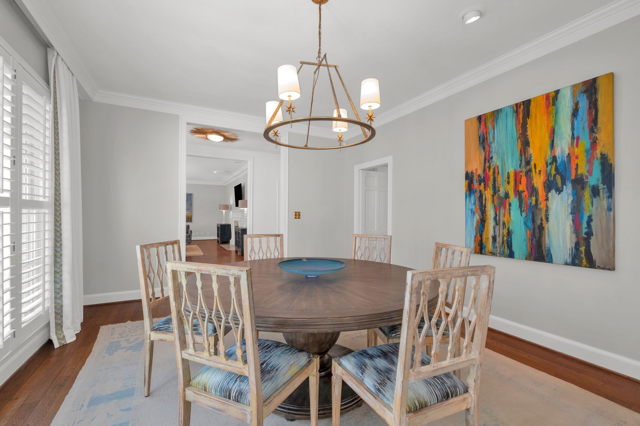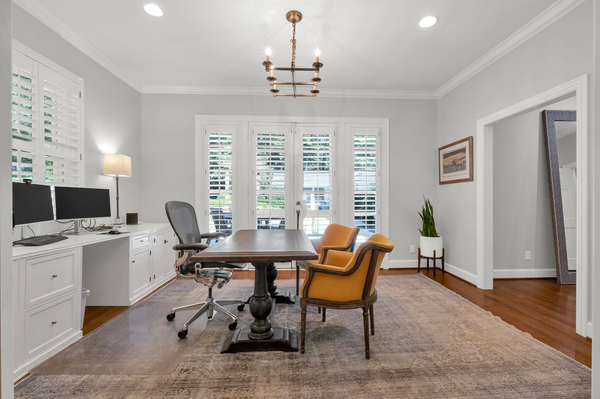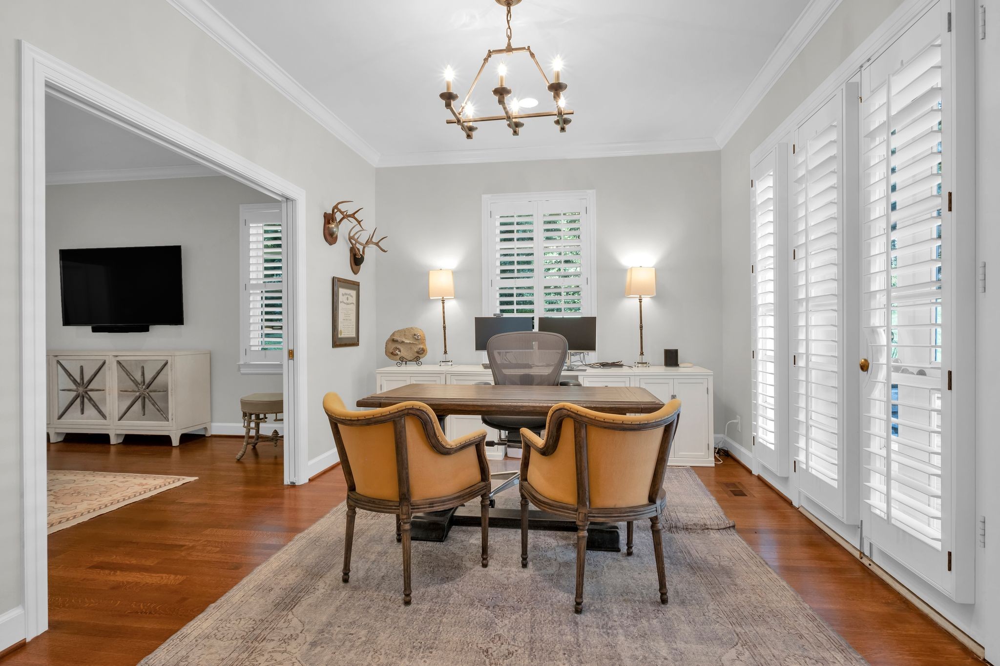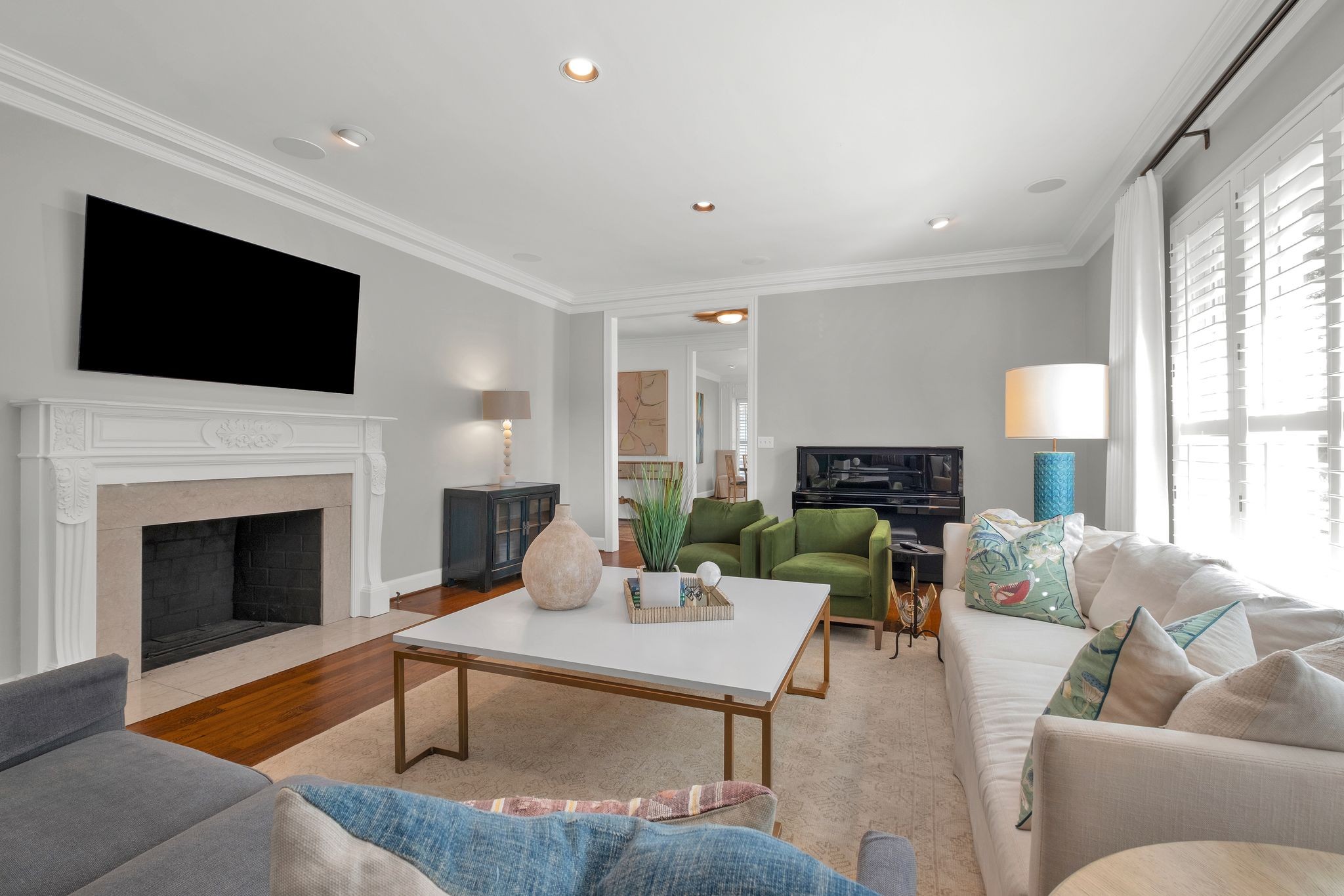 Inside, every room tells a story. The formal dining room invites unforgettable dinner parties, while the formal living room provides a refined space for gathering. A sun-filled family den, framed by built-in bookcases, is perfect for curling up with a novel or enjoying quiet conversation.