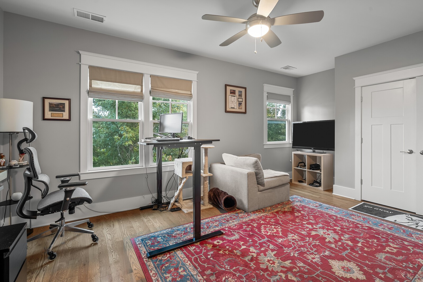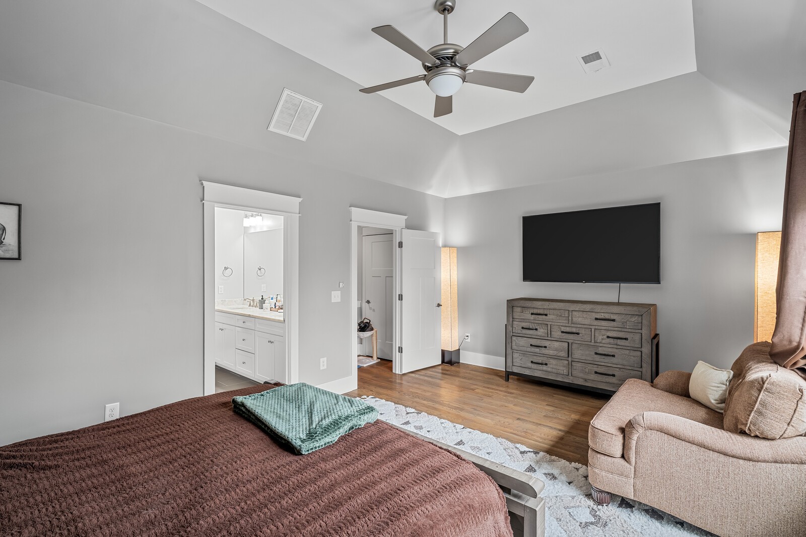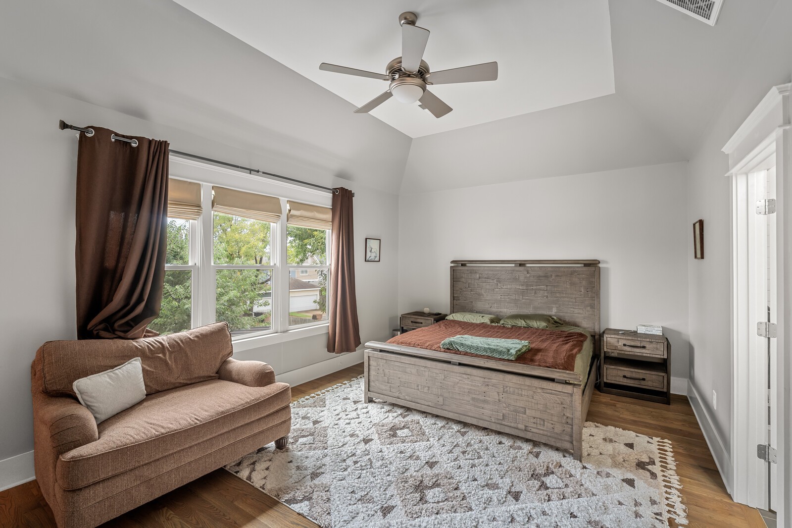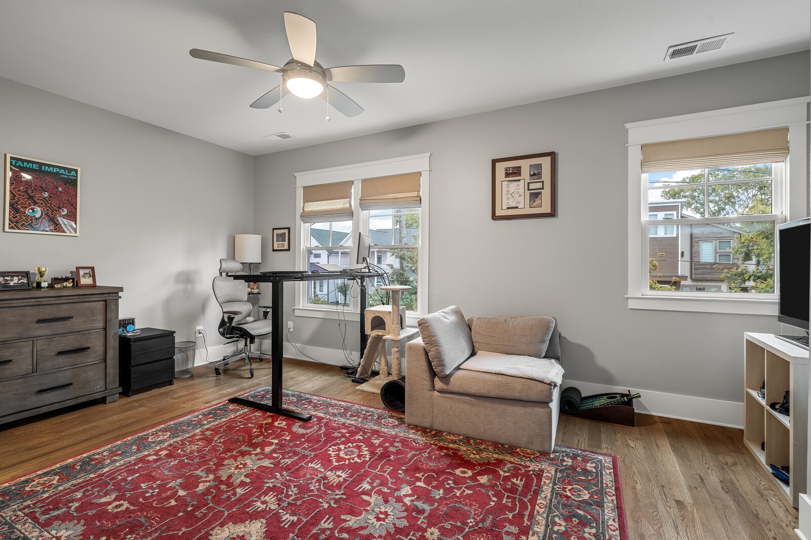 Spacious Home in The Nations – Walkable & Stylish! Live in the heart of The Nations, just steps from local favorites like Urban Dog Park, Carlsbad Pizza, Maru Sushi, La Juquilita, West Park, and Ramblin Joe’s Coffee.This bright and stylish home features hardwood floors throughout, a modern kitchen with new designer appliances, and a cozy gas fireplace. The main floor includes a full bedroom and bath, plus a covered screened-in porch overlooking a beautifully landscaped, fenced yard. Upstairs, two vaulted-ceiling suites include a primary with double vanities, a large walk-in shower, and a huge walk-in closet. Enjoy a two-car carport, washer and dryer, tinted windows with screens, a whole-home water purification system, and included 1 Gig high-speed internet. Furniture available upon request. Flexible move-in date!