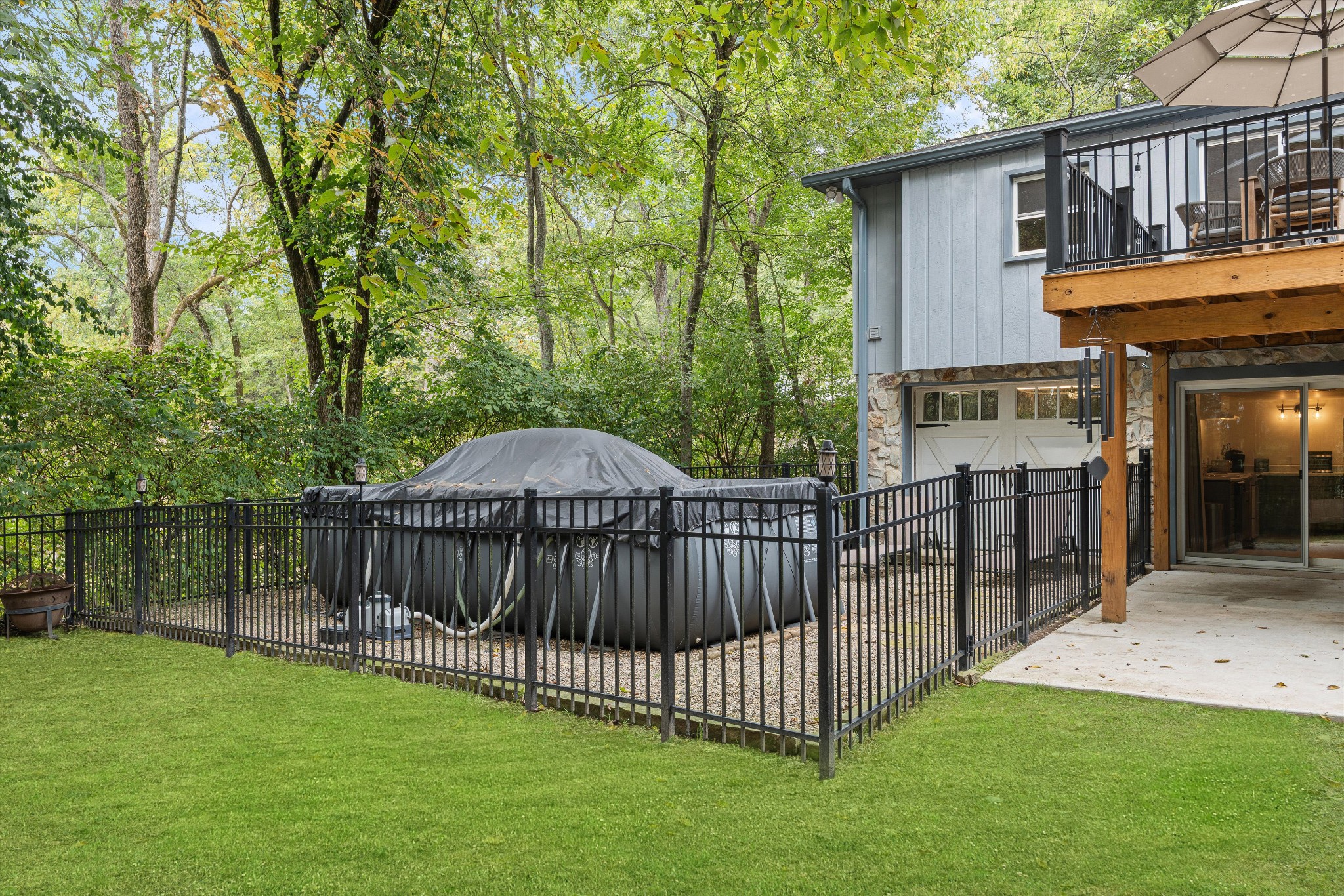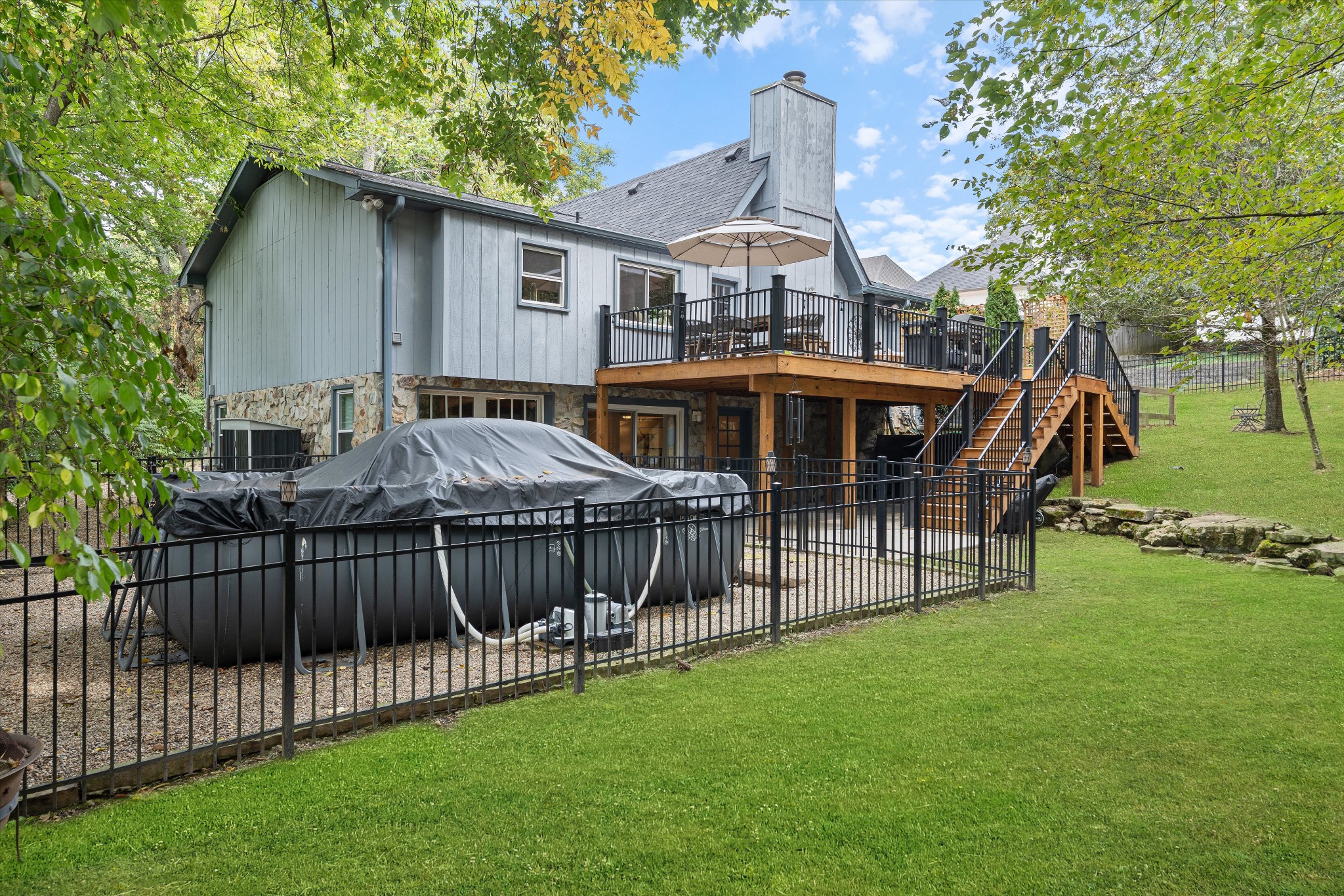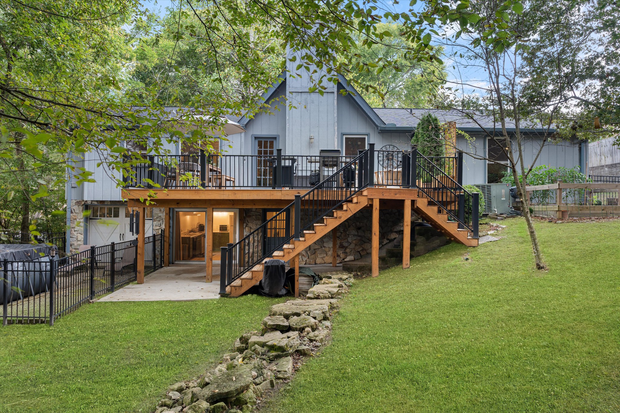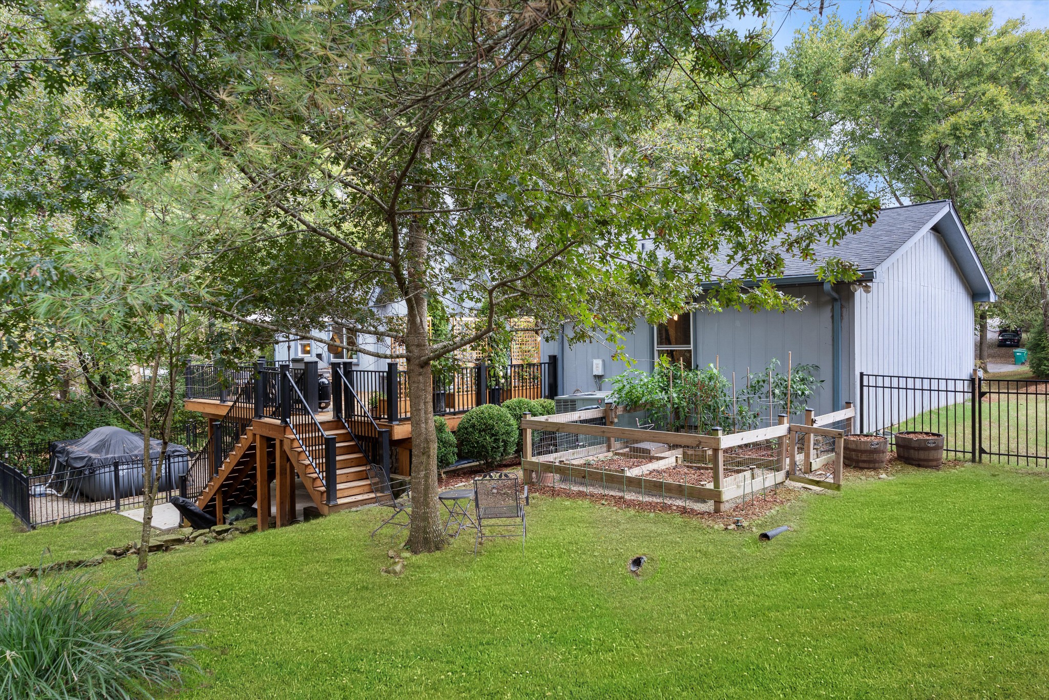 Offering a rare combination of privacy, seclusion, and convenience in the heart of Nashville, this beautifully decorated 3-bedroom, 3-bath home sits tucked away at the end of a cul-de-sac. Set on .38 acres with no HOA, it boasts nearly $100,000 in recent improvements, including a newer roof and brand-new carpet. A private gravel drive leads to the home, which also includes an attached independent living apartment on the lower level—perfect for multi-generational living. The backyard retreat is a true standout, featuring an organic vegetable garden, an above-ground pool, and a 500 sq ft upper-level luxury deck nestled beneath a canopy of trees. Directly below, a paved patio area creates a second inviting zone to relax or entertain outdoors. Adding to the appeal, a custom workout space with a floor-to-ceiling mirrored wall and rubber flooring, along with a workshop area, provide an additional 482 sq ft not included in the finished square footage. With thoughtful updates, space to grow, and an incredible price for its location and features, this home is a rare find in Nashville.