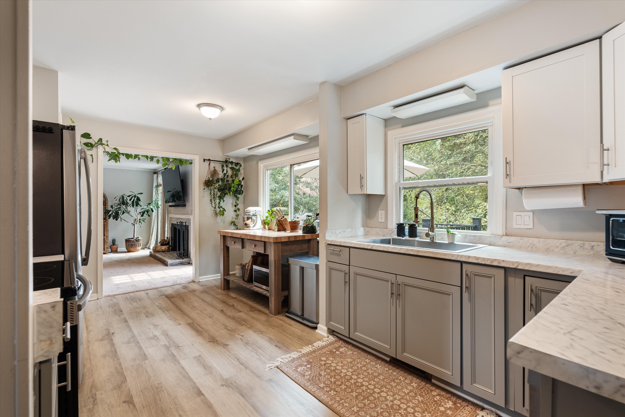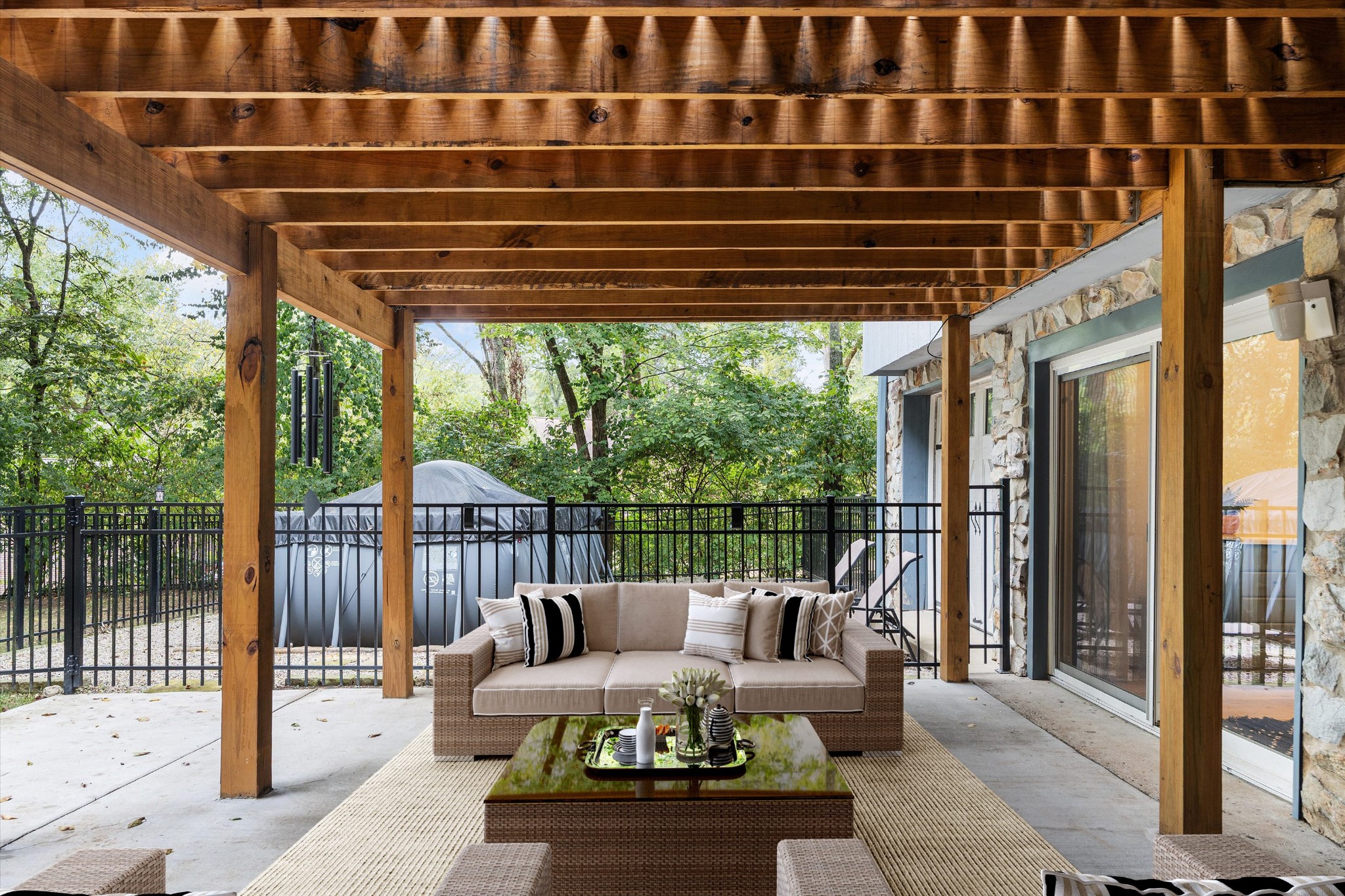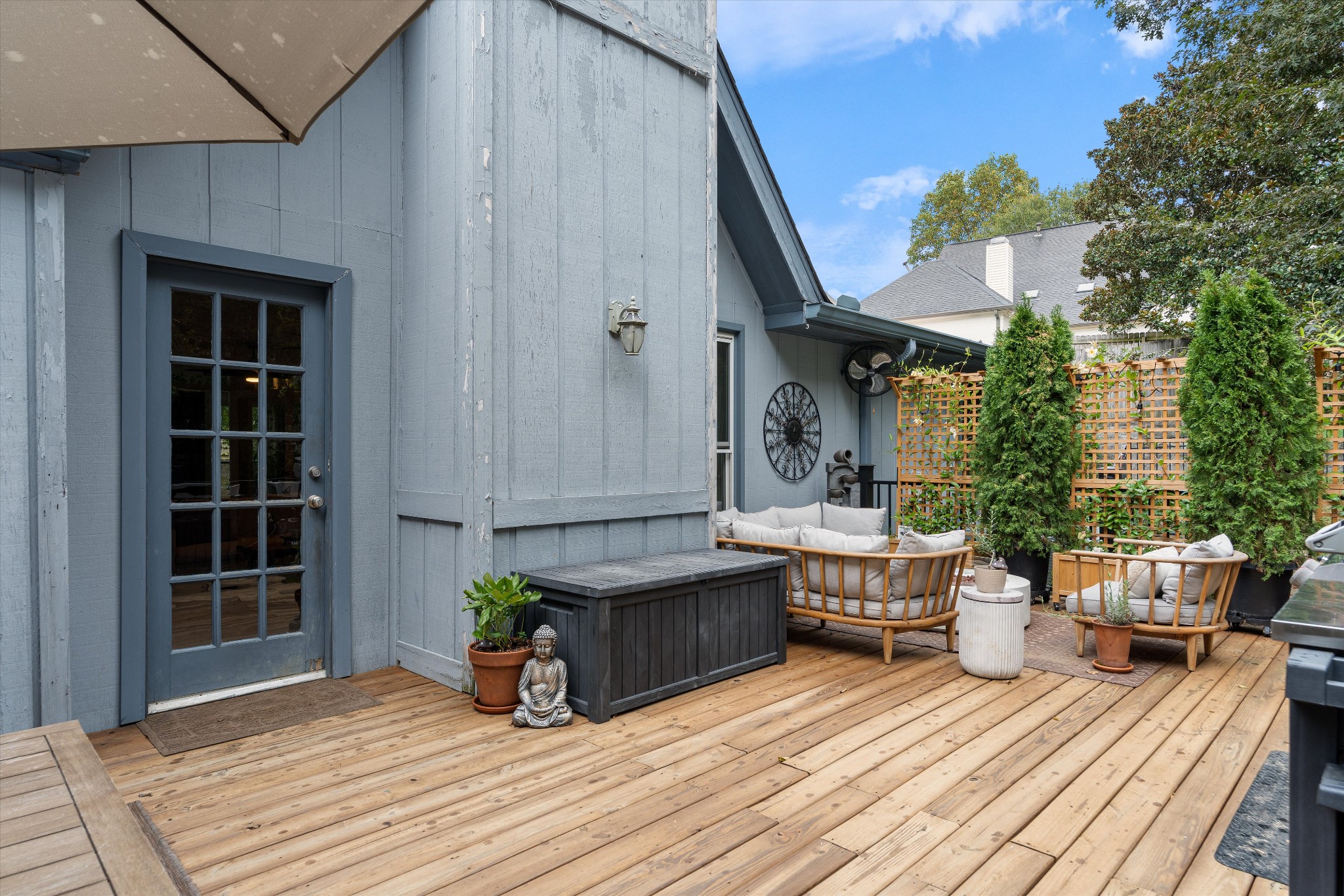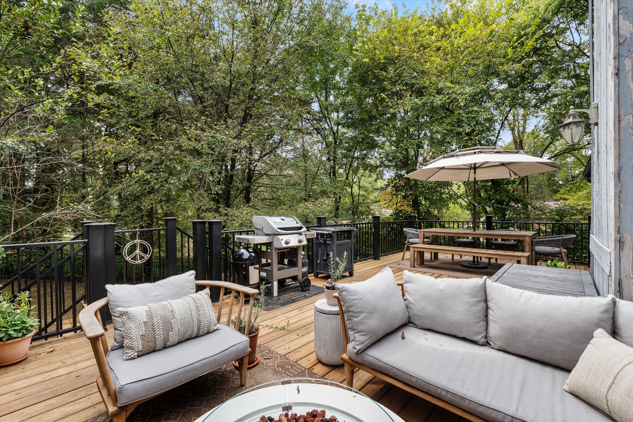 Offering a rare combination of privacy, seclusion, and convenience in the heart of Nashville, this beautifully decorated 3-bedroom, 3-bath home sits tucked away at the end of a cul-de-sac. Set on .38 acres with no HOA, it boasts nearly $100,000 in recent improvements, including a newer roof and brand-new carpet. A private gravel drive leads to the home, which also includes an attached independent living apartment on the lower level—perfect for multi-generational living. The backyard retreat is a true standout, featuring an organic vegetable garden, an above-ground pool, and a 500 sq ft upper-level luxury deck nestled beneath a canopy of trees. Directly below, a paved patio area creates a second inviting zone to relax or entertain outdoors. Adding to the appeal, a custom workout space with a floor-to-ceiling mirrored wall and rubber flooring, along with a workshop area, provide an additional 482 sq ft not included in the finished square footage. With thoughtful updates, space to grow, and an incredible price for its location and features, this home is a rare find in Nashville.