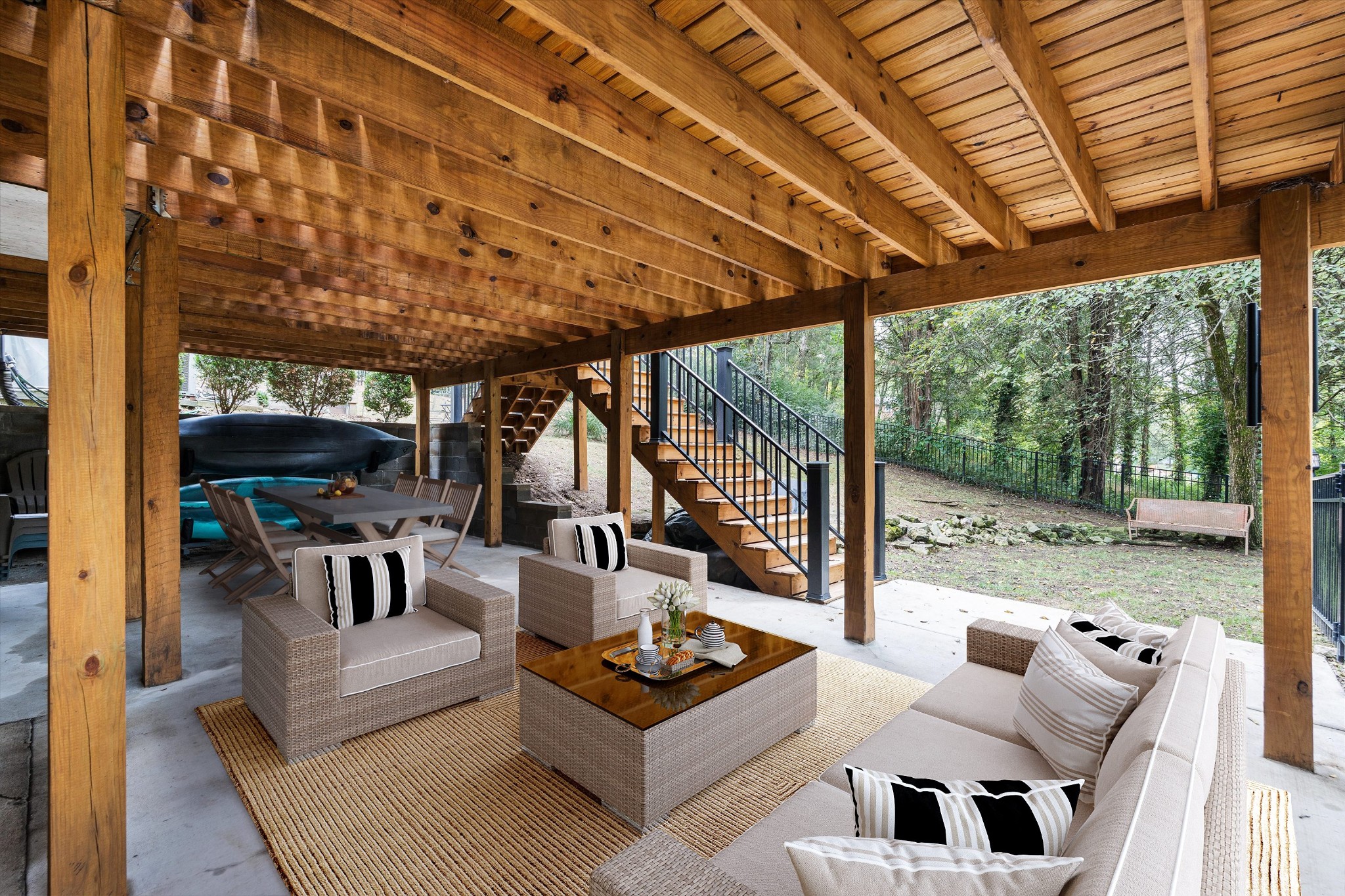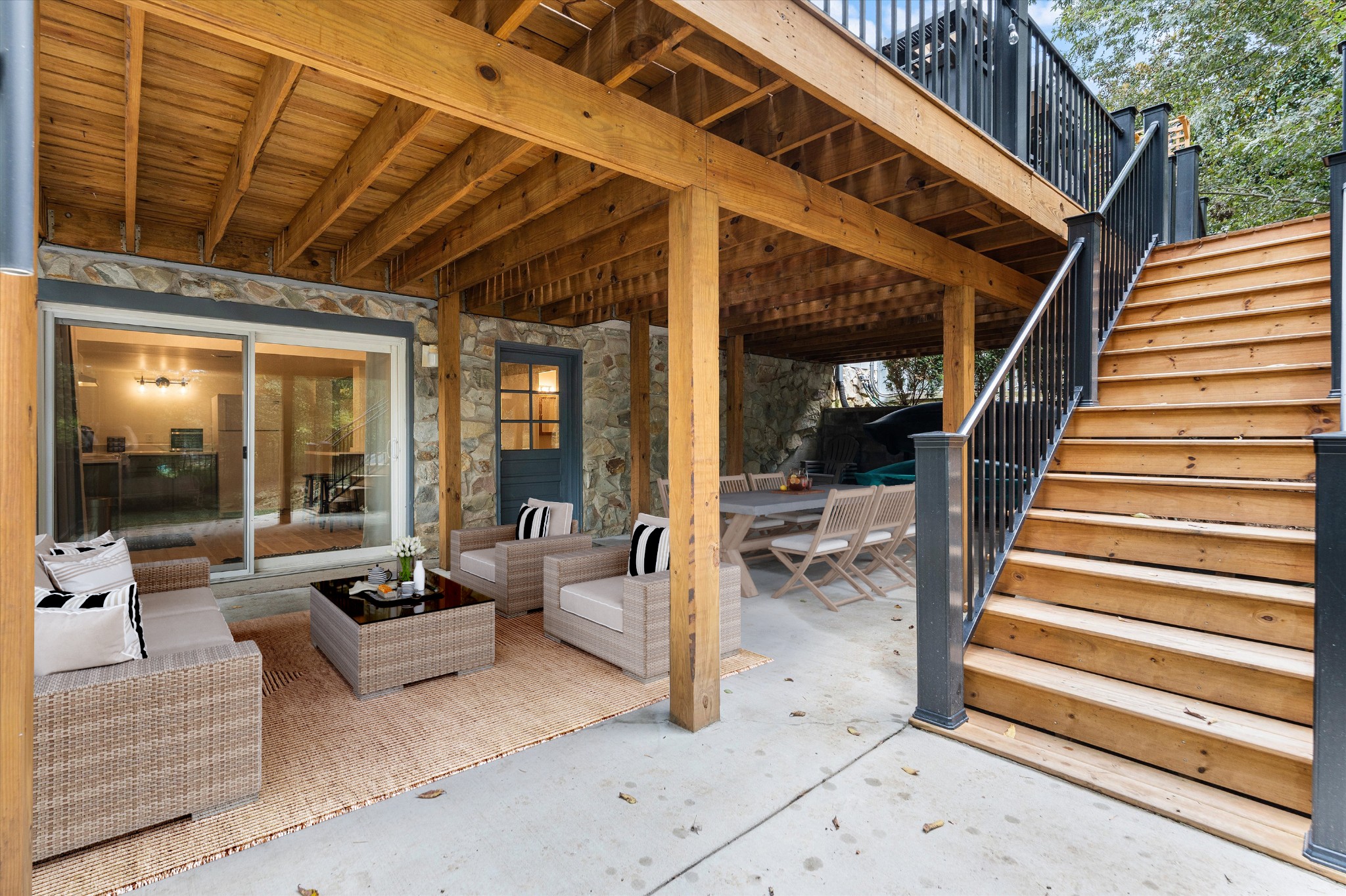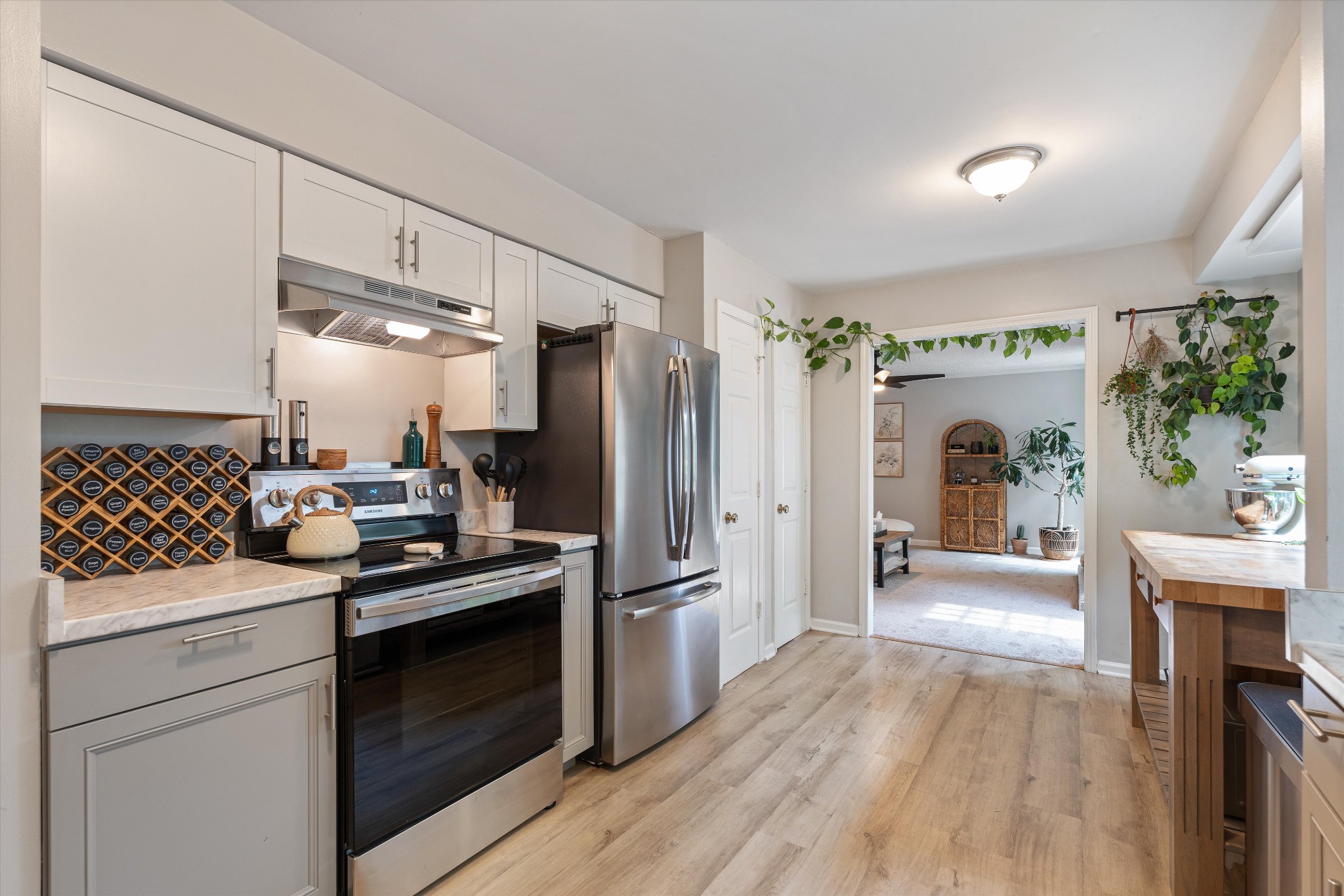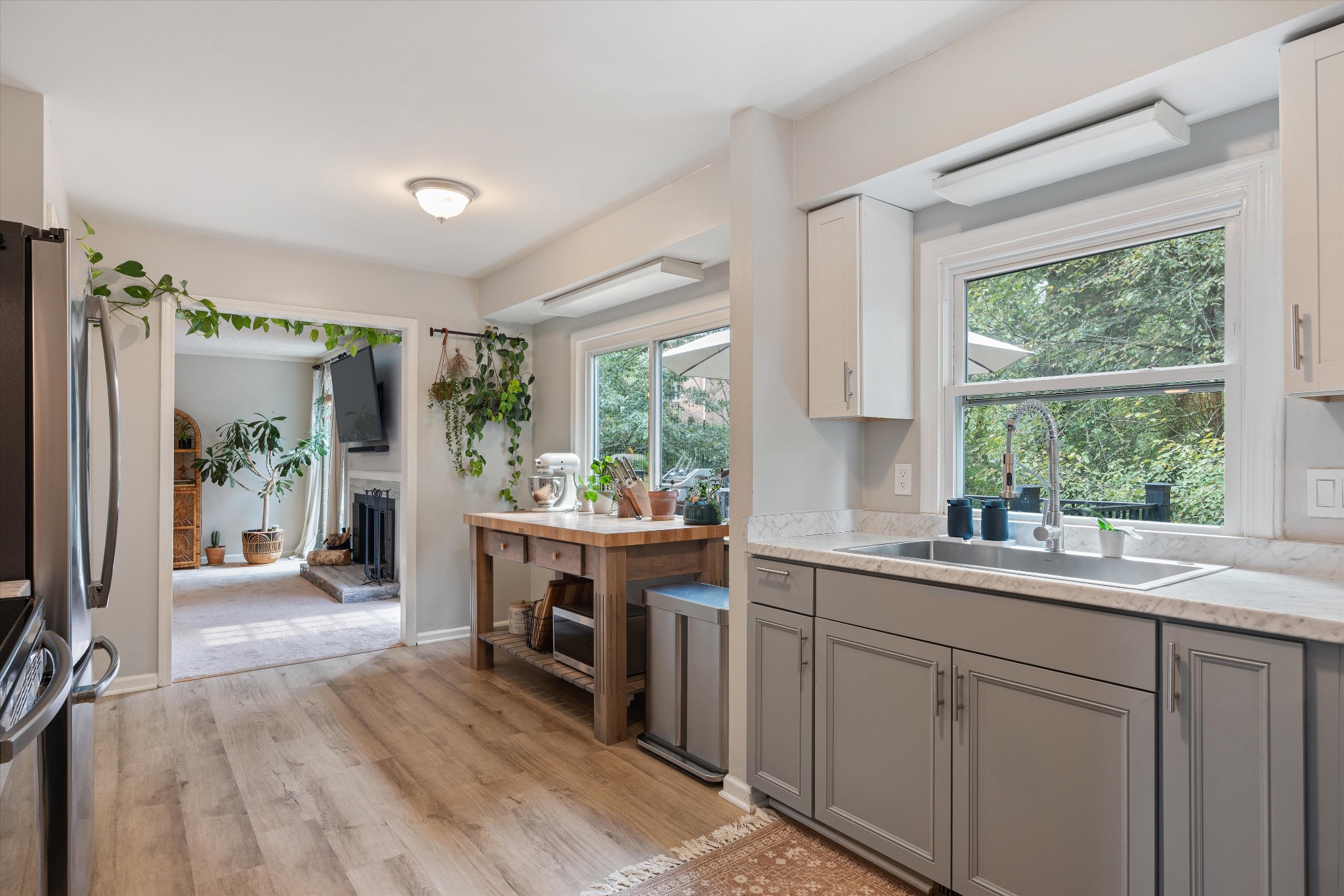 Offering a rare combination of privacy, seclusion, and convenience in the heart of Nashville, this beautifully decorated 3-bedroom, 3-bath home sits tucked away at the end of a cul-de-sac. Set on .38 acres with no HOA, it boasts nearly $100,000 in recent improvements, including a newer roof and brand-new carpet. A private gravel drive leads to the home, which also includes an attached independent living apartment on the lower level—perfect for multi-generational living. The backyard retreat is a true standout, featuring an organic vegetable garden, an above-ground pool, and a 500 sq ft upper-level luxury deck nestled beneath a canopy of trees. Directly below, a paved patio area creates a second inviting zone to relax or entertain outdoors. Adding to the appeal, a custom workout space with a floor-to-ceiling mirrored wall and rubber flooring, along with a workshop area, provide an additional 482 sq ft not included in the finished square footage. With thoughtful updates, space to grow, and an incredible price for its location and features, this home is a rare find in Nashville.