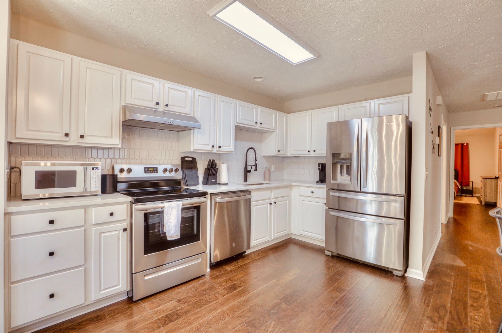 - AppliancesElectric Oven, Cooktop, Dishwasher, Disposal, Dryer, Microwave, Refrigerator, Stainless Steel Appliance(s), Washer