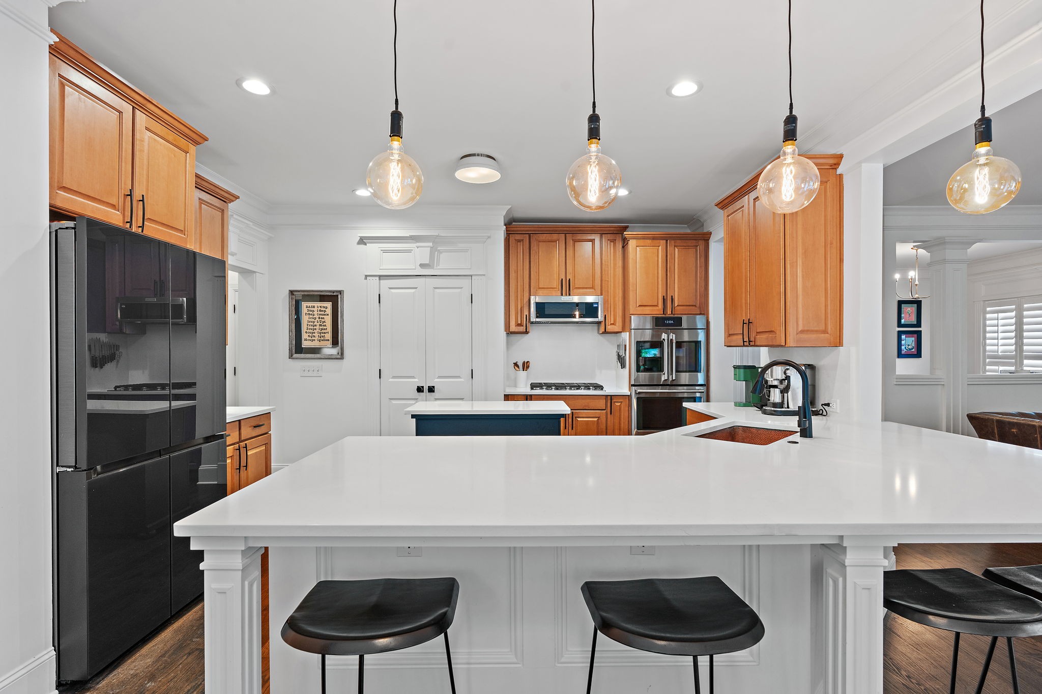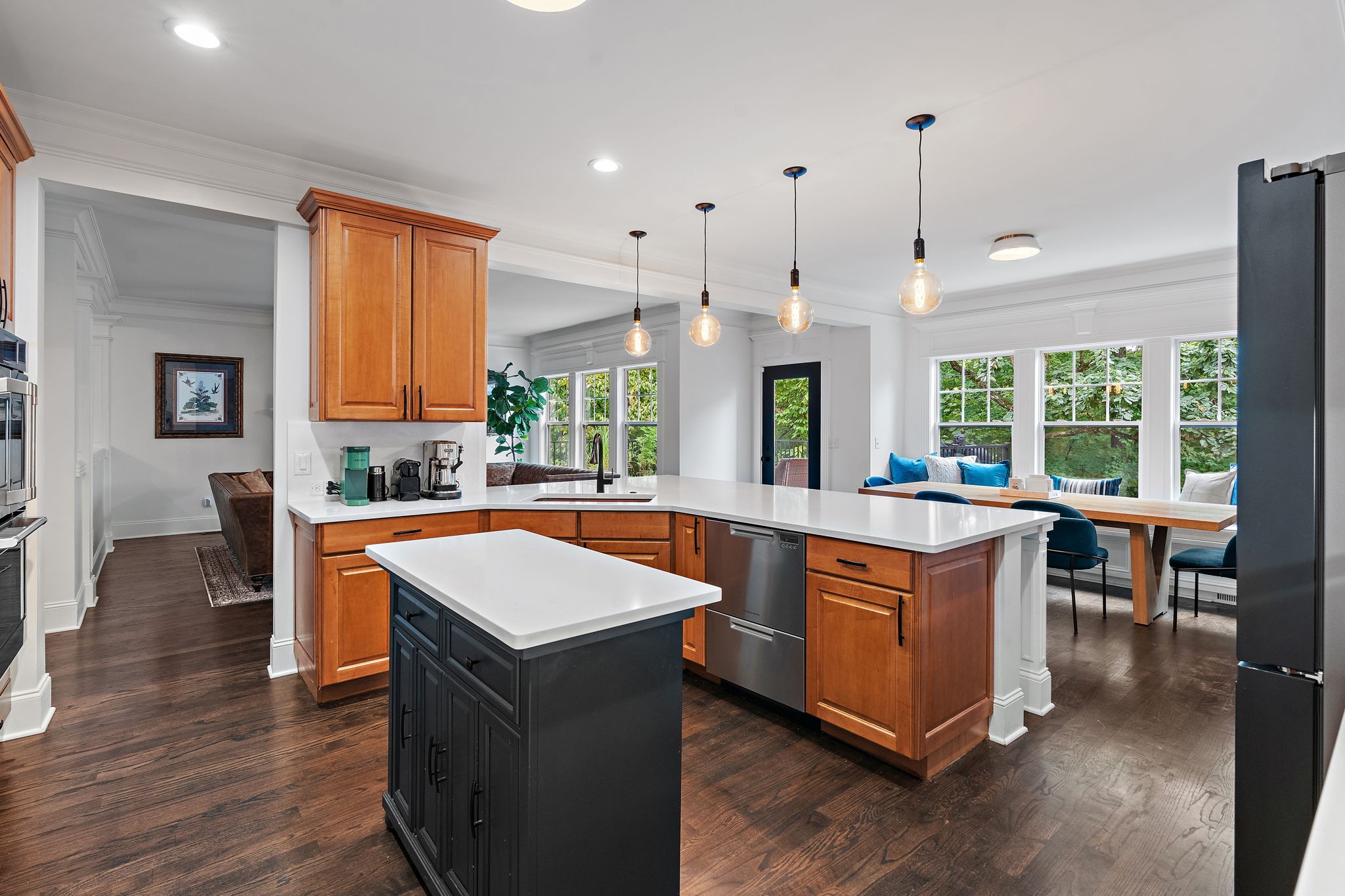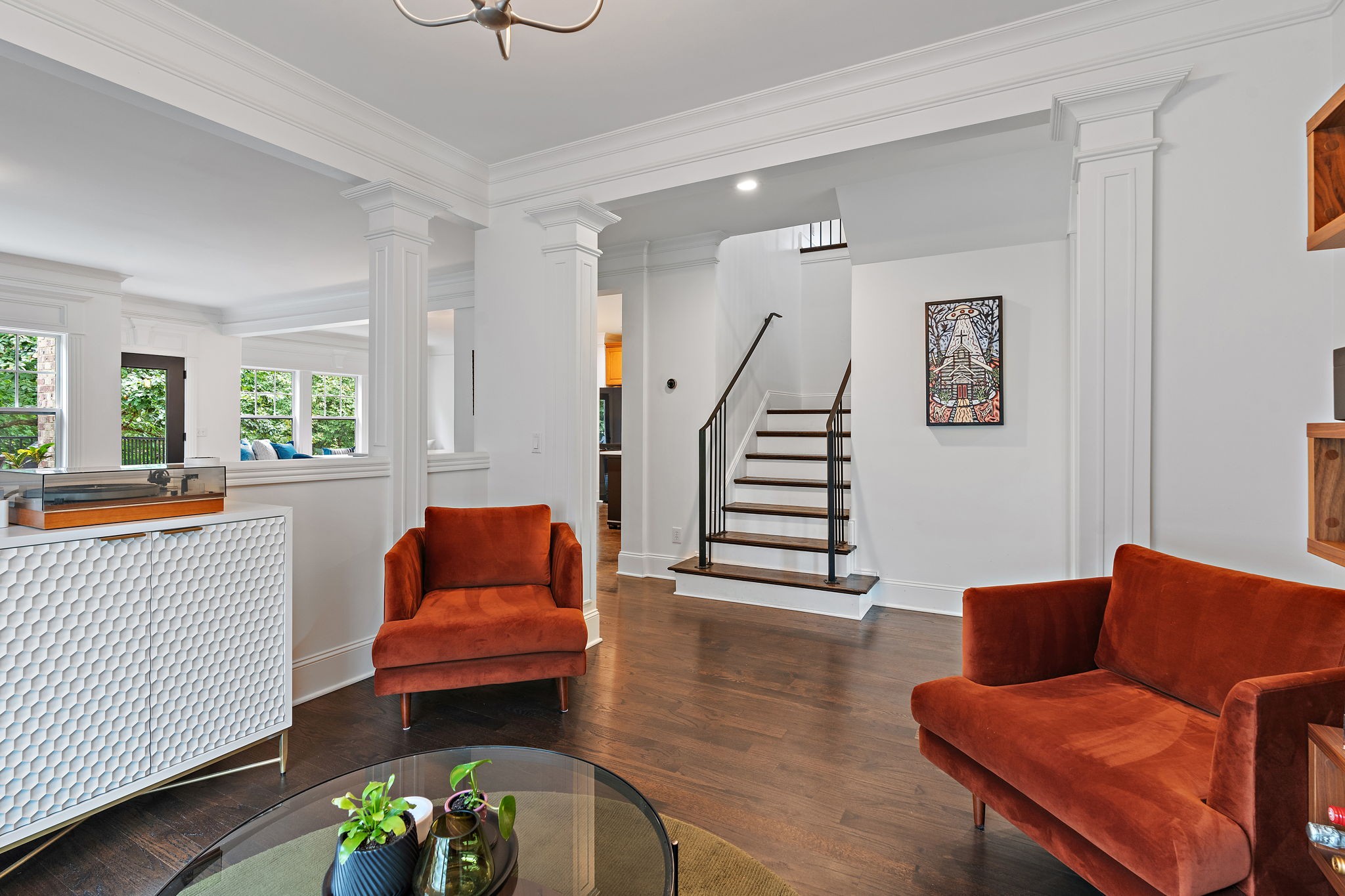 Inside, you’ll find hardwood floors throughout, extensive custom millwork, and a fully updated kitchen and all bathrooms (2022).