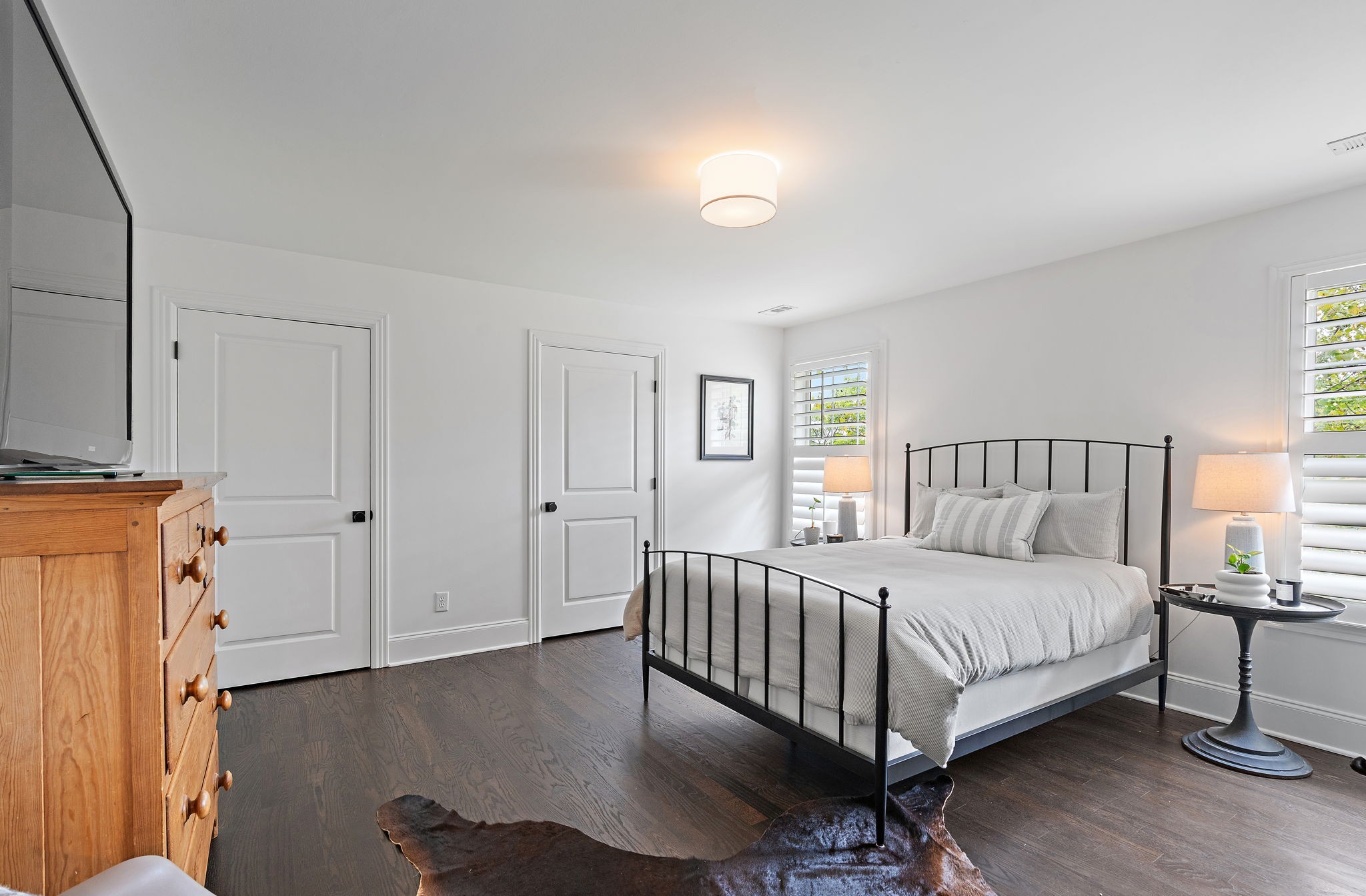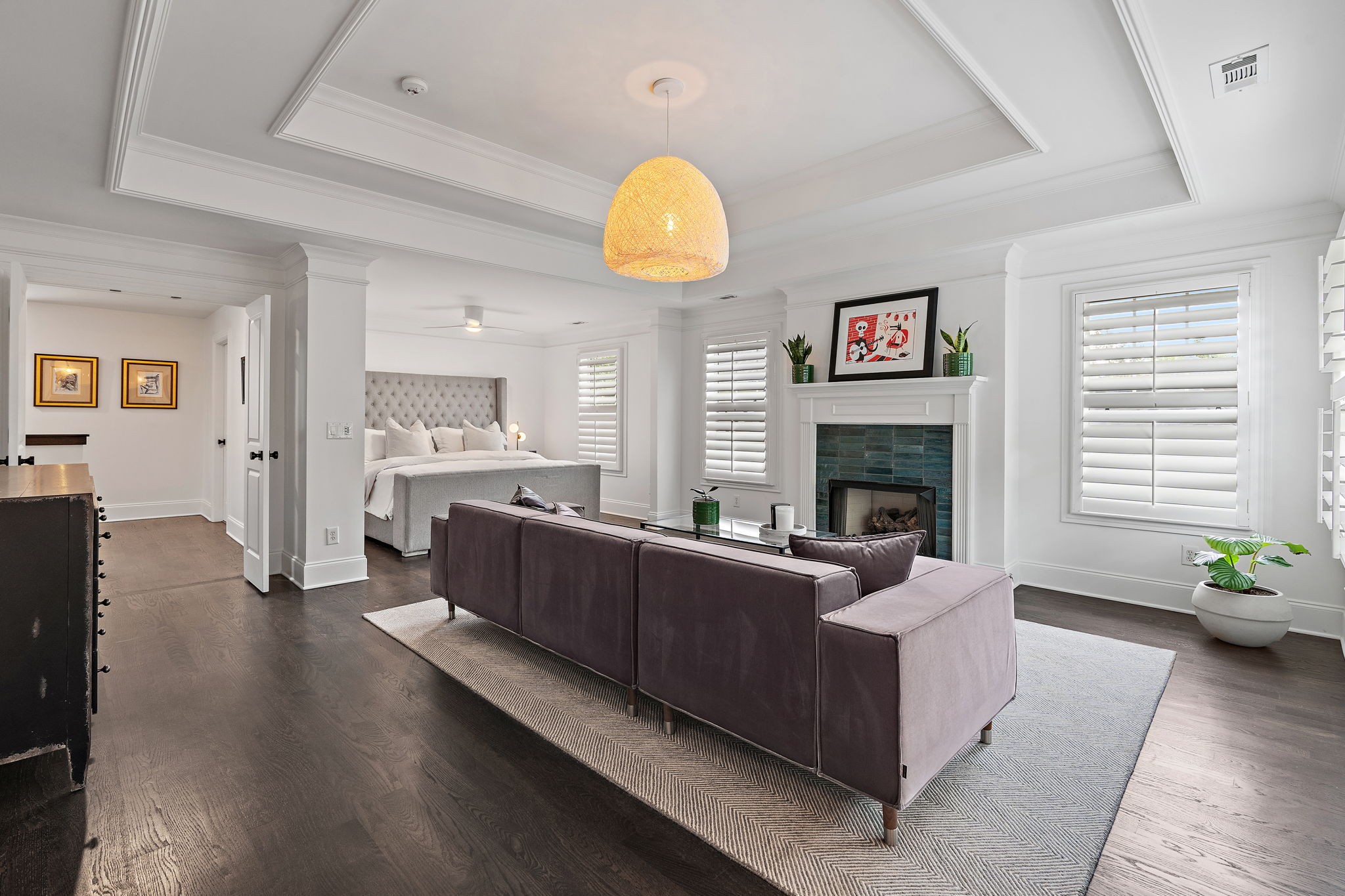 Upstairs, the generously sized primary suite is a true retreat featuring a fireplace and a spa-like en suite bath with a soaking tub, a huge walk-in shower, and dual vanities. A second large ensuite bedroom on the main level offers ideal accommodations for guests or multigenerational living. The home also offers two separate laundry areas (one up, one down), generous storage, and an oversized garage.