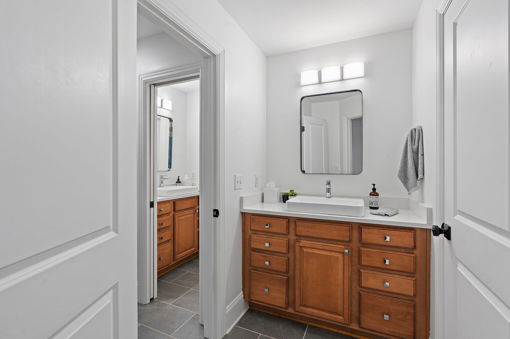 Step outside to a large backyard deck off the main level, perched high above the sloping yard and backing to woods—offering a peaceful, treehouse-like experience that’s perfect for entertaining or relaxing.