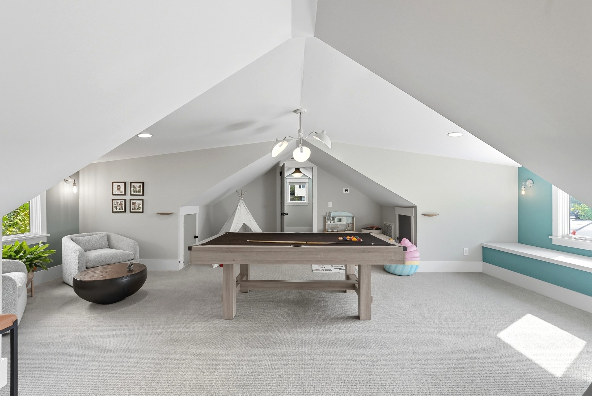 Upstairs, a large rec room provides flexible space for a home office, playroom, or media lounge. Outside, a detached two-car garage includes a fully finished apartment above, perfect for guests, an in-law suite, or income potential.