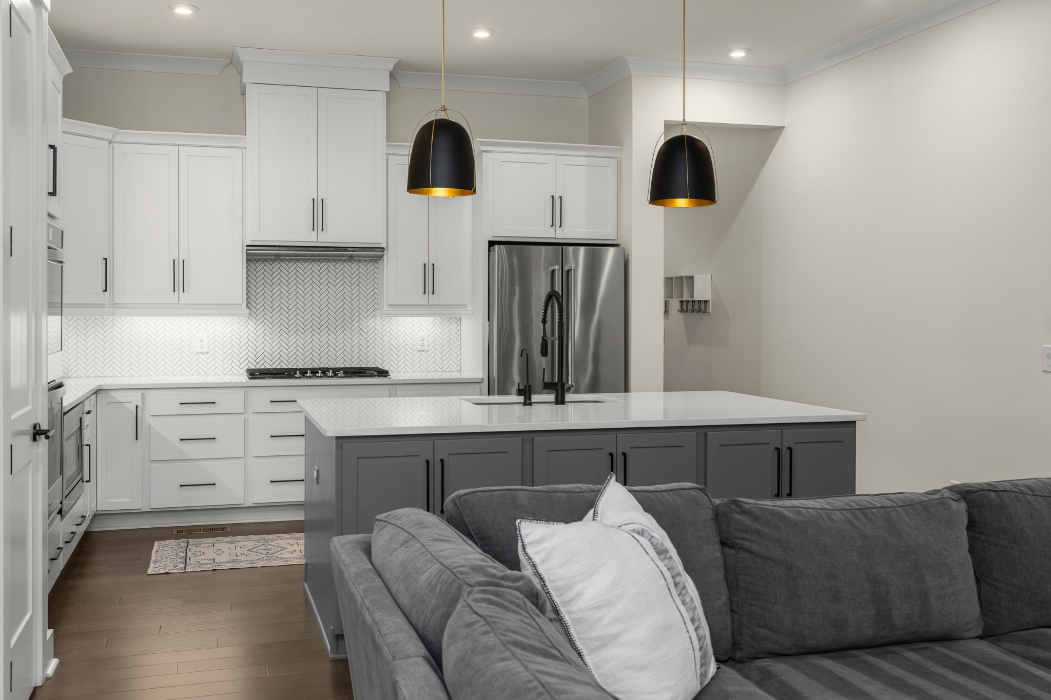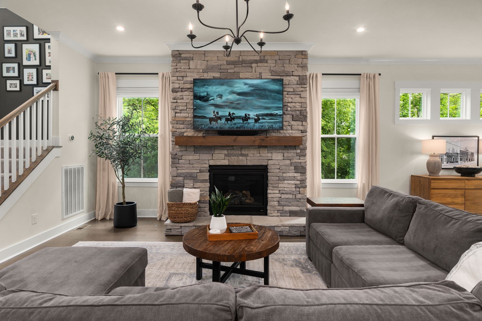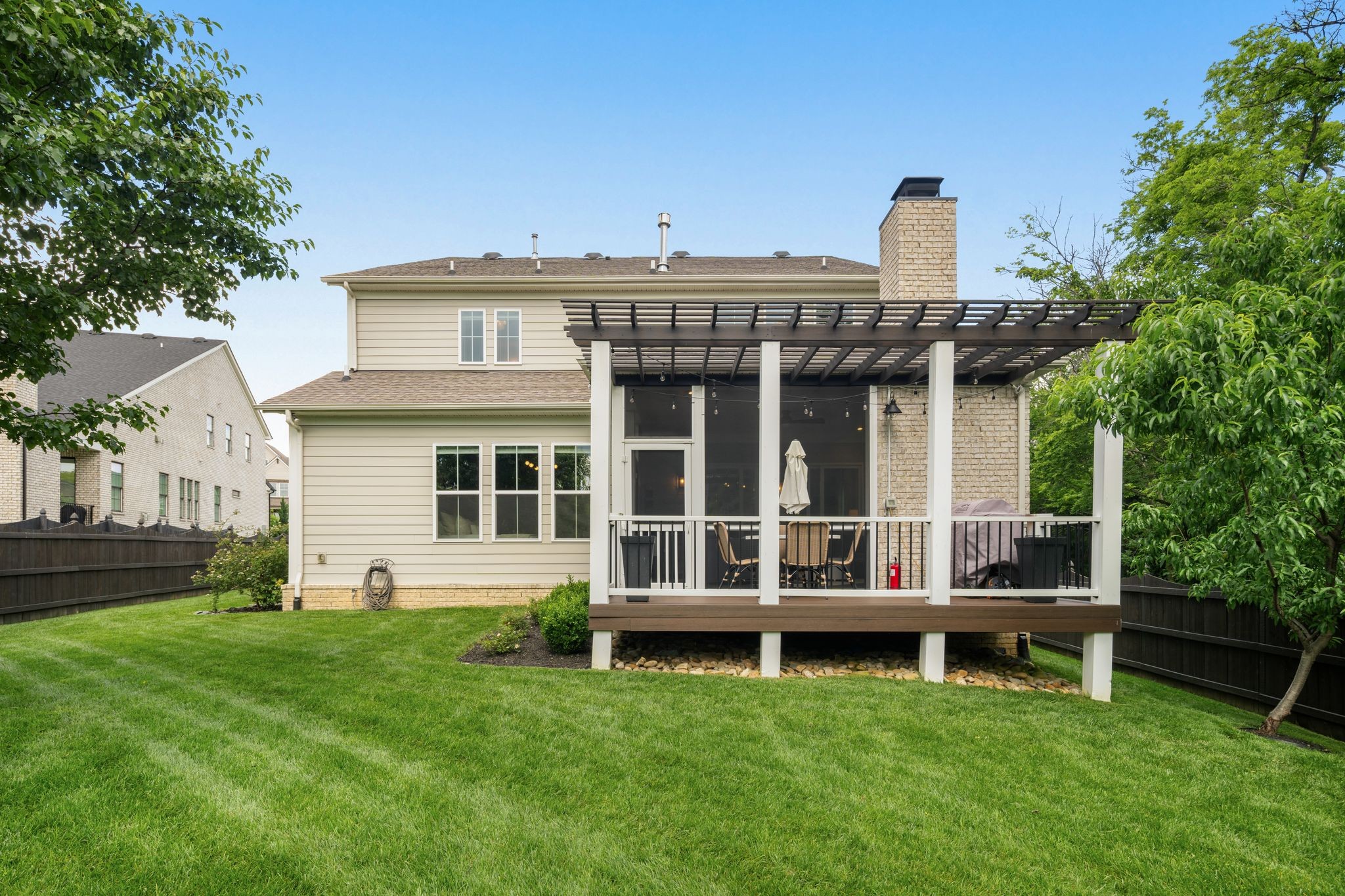 Step into 454 Cardel Ln, a stunningly designed 6 BD, 5 BA home in the heart of Franklin’s coveted Cardel Village. Built in 2020, this meticulously maintained residence offers 3720 sqft of sophisticated comfort and thoughtful functionality tucked back at the end of an idyllic cul-de-sac. From dual owner’s suites to the soaring 10-foot ceilings and custom craftsman trim, every inch has been curated with intention. The gourmet kitchen features upgraded cabinetry, double ovens, gas cooktop, dry bar with wine fridge and designer finishes ideal for hosting. A stunning primary bedroom flanked by fireplace-adorned sitting area and a spa-like ensuite, main floor private study, and open-concept family room round out the well-appointed interior. Upstairs, every bedroom boasts custom closets designed for both elegance and efficiency. Outside, unwind on the inviting covered front porch or sip morning coffee on the screened-in back patio surrounded by lush landscaping and a fully fenced-in backyard. Smart home integration, 2-car garage and proximity to charming downtown Franklin, top-rated schools, and local amenities complete this exceptional offering. This is not just a home - it’s a lifestyle waiting for you.
